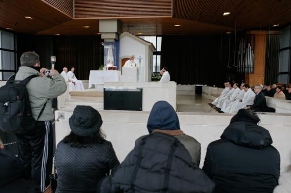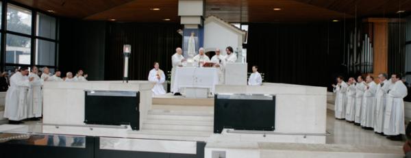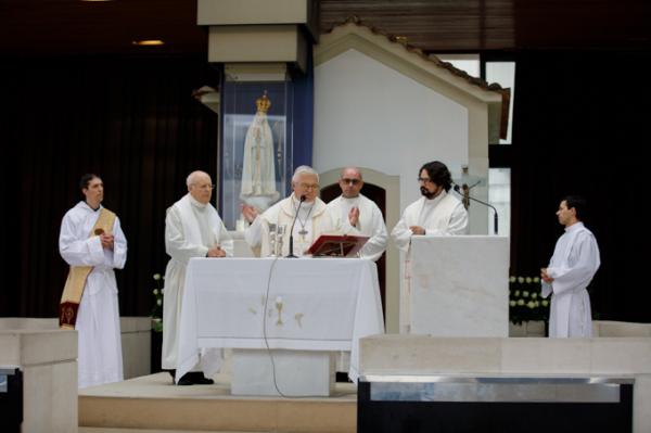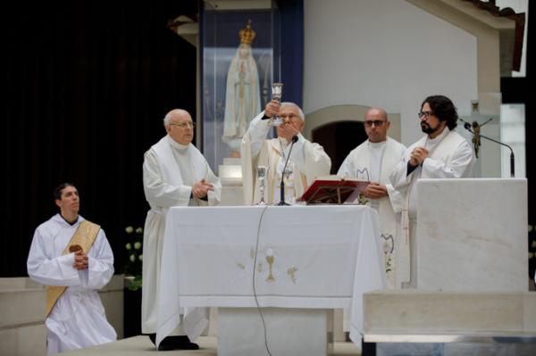 Misa, en portugués, en la Basílica de Nuestra Señora del Rosario de Fátima