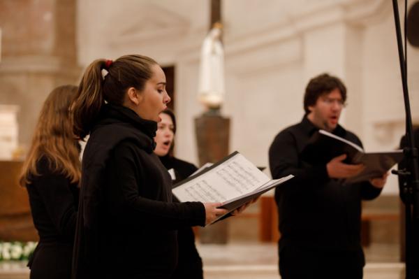 Misa, en portugués, en la Basílica de Nuestra Señora del Rosario de Fátima