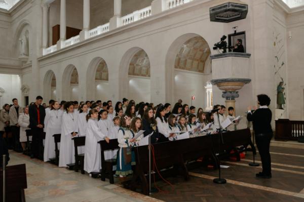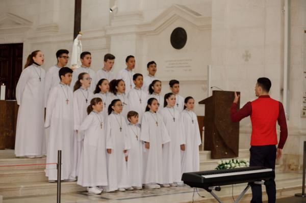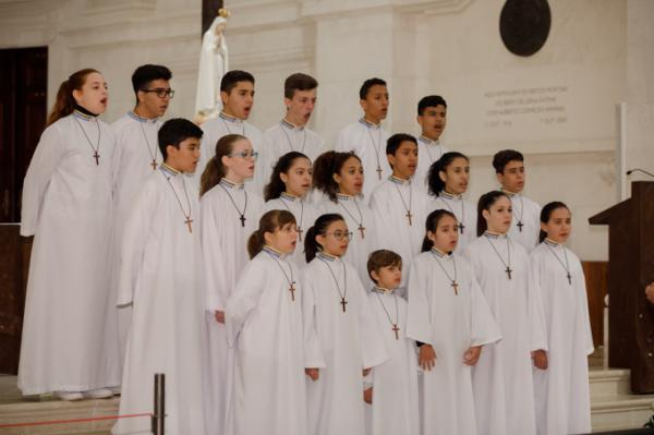 Misa, en portugués, en la Basílica de Nuestra Señora del Rosario de Fátima