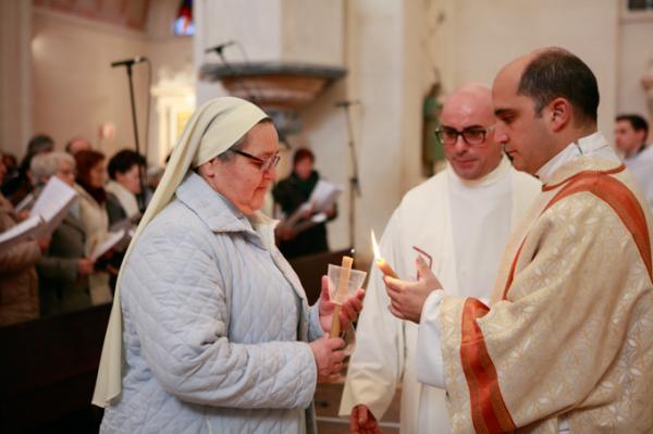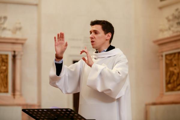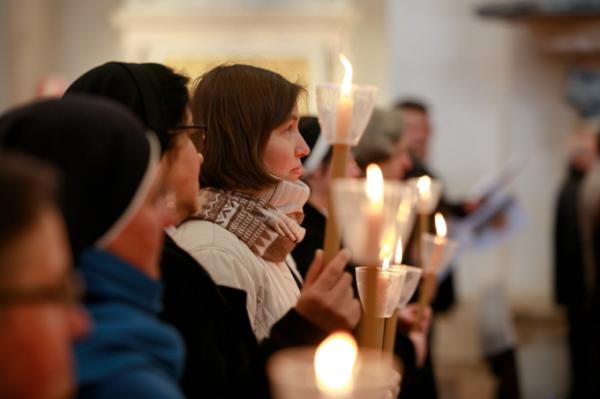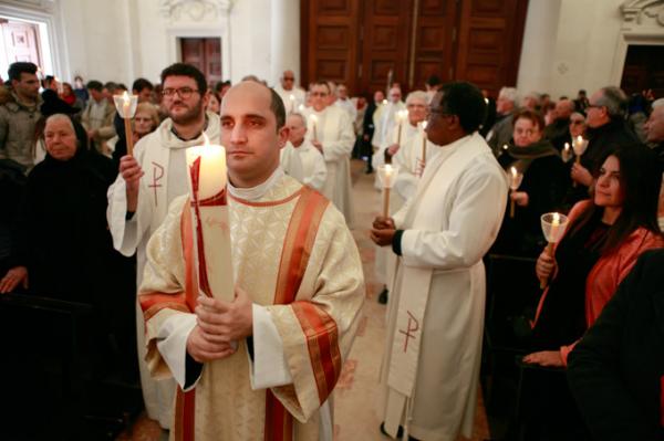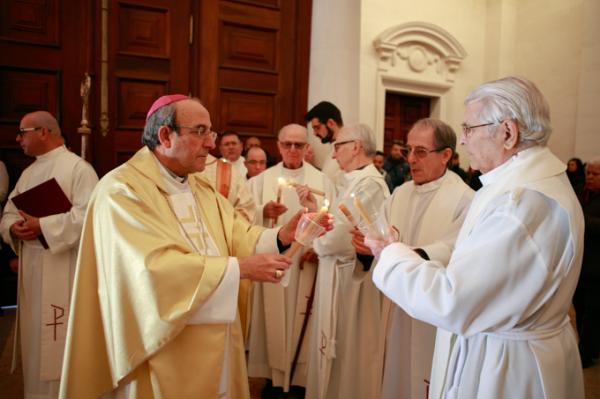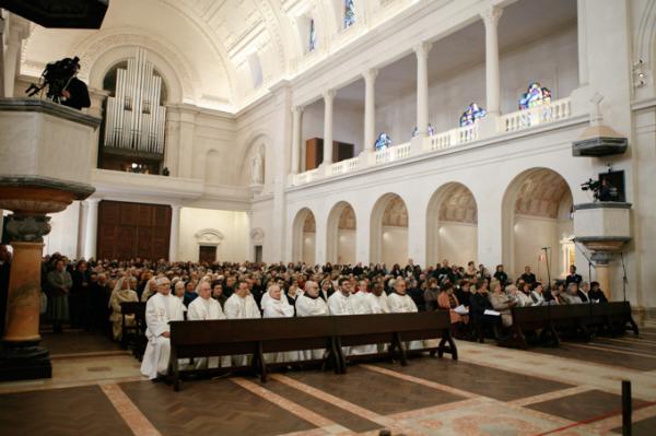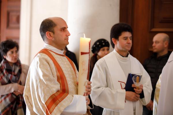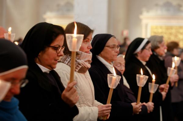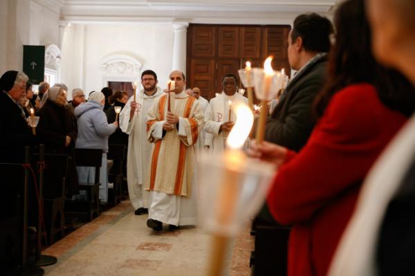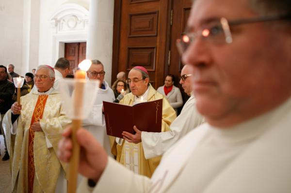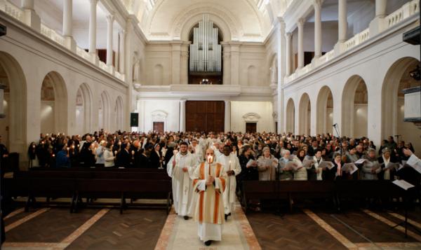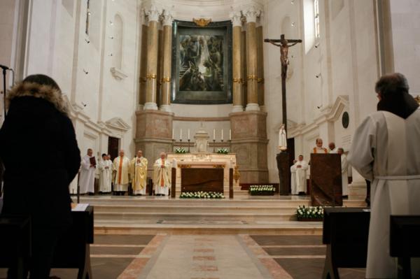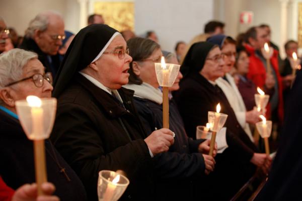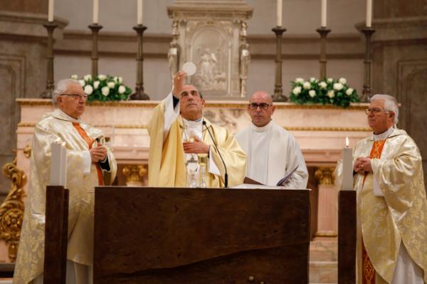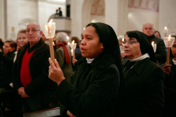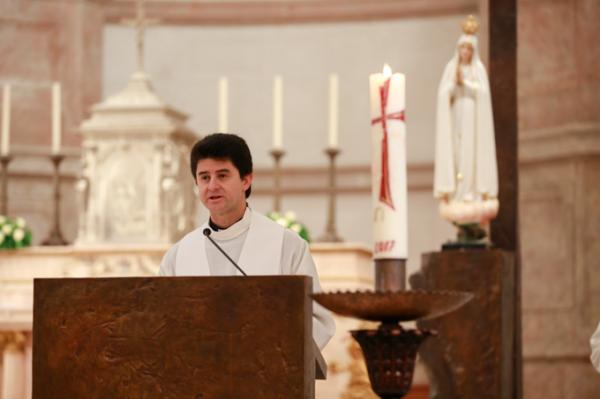 Misa, en portugués, en la Basílica de Nuestra Señora del Rosario de Fátima