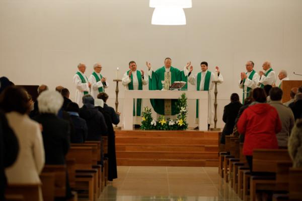 Misa, en portugués, en la Basílica de Nuestra Señora del Rosario de Fátima