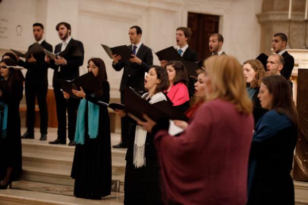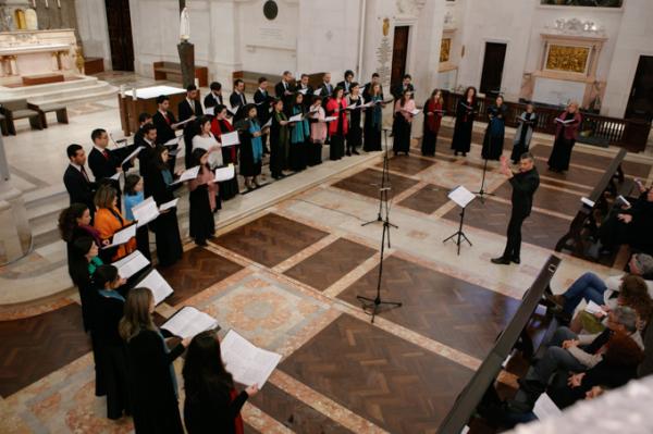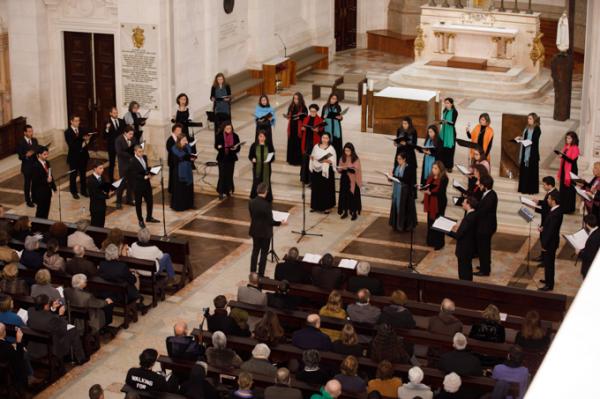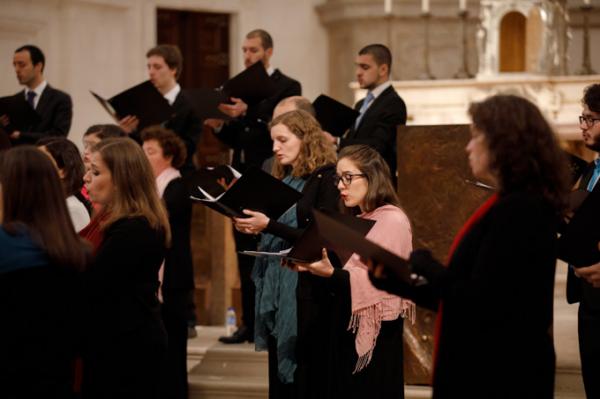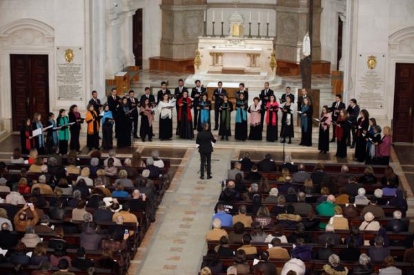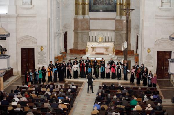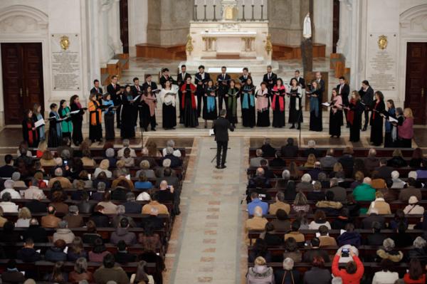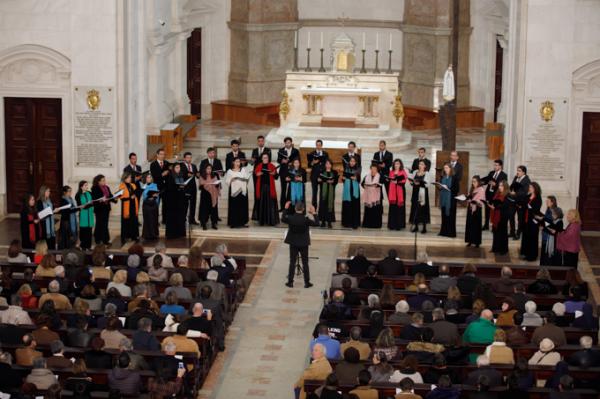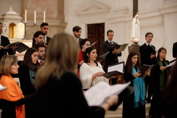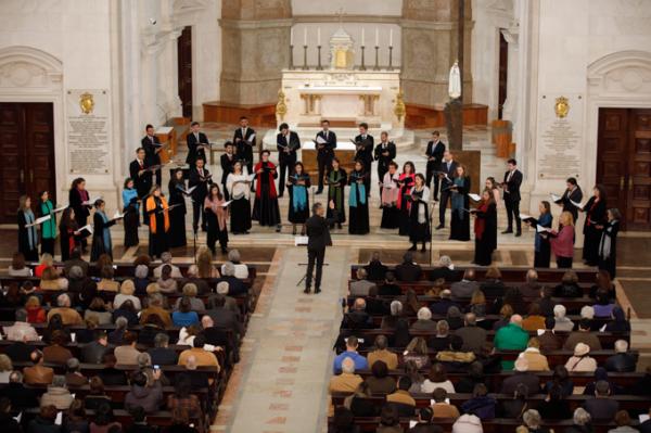 Misa, en portugués, en la Basílica de Nuestra Señora del Rosario de Fátima