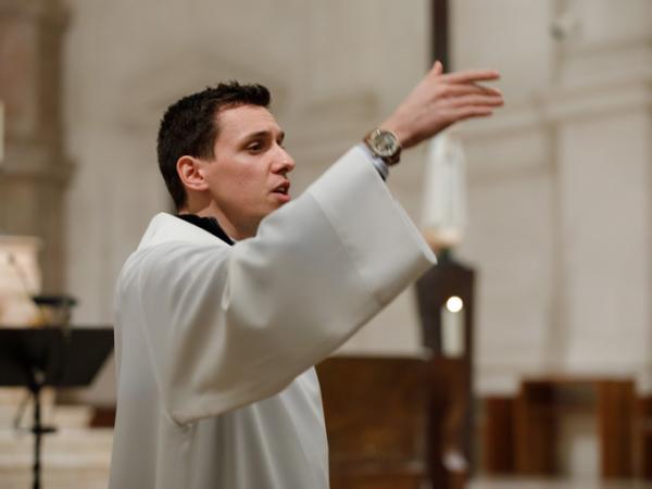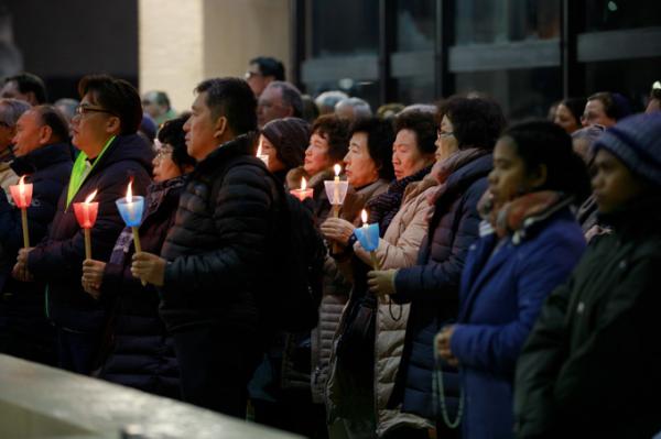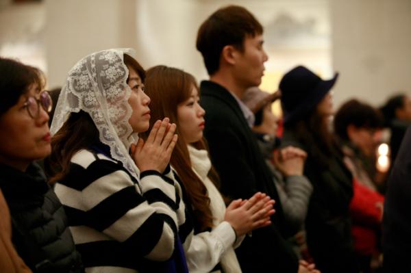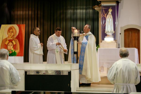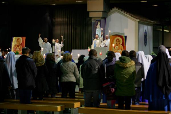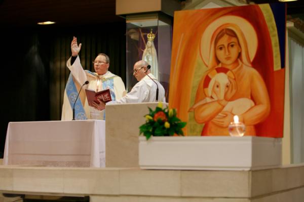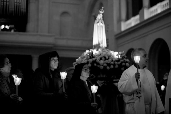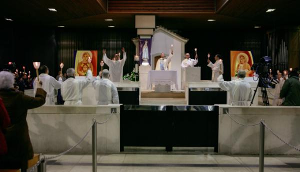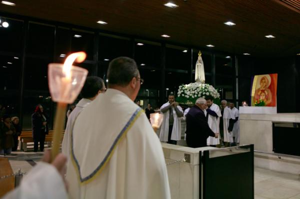 Misa, en portugués, en la Basílica de Nuestra Señora del Rosario de Fátima