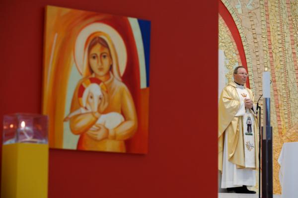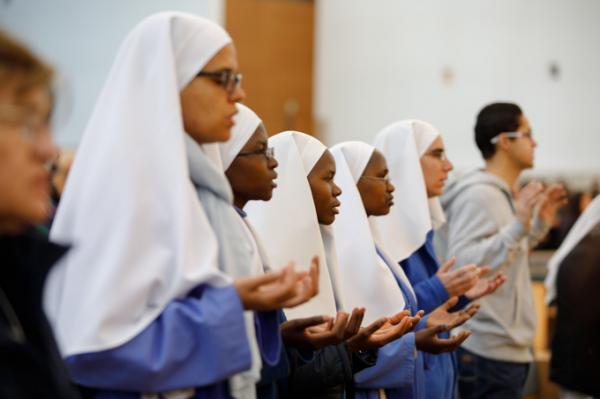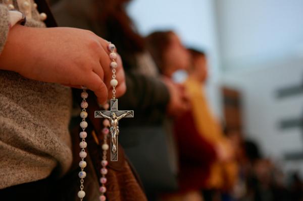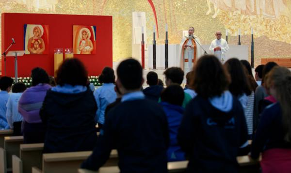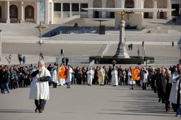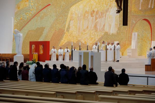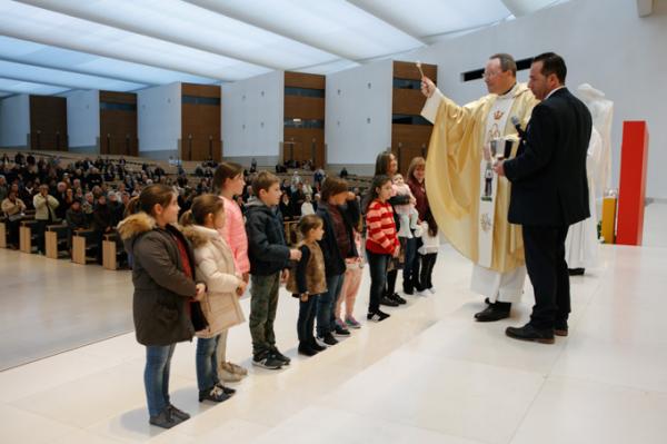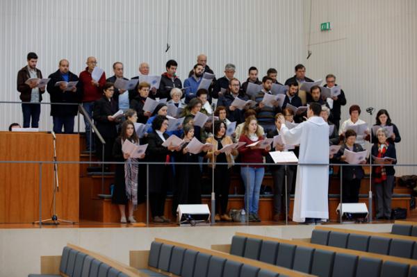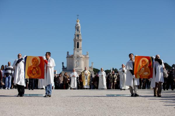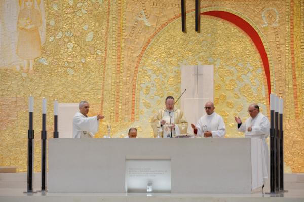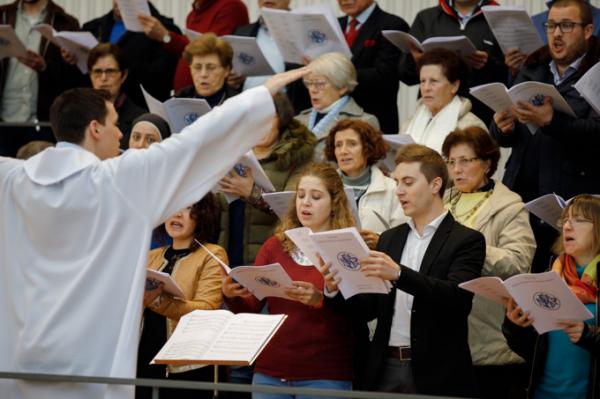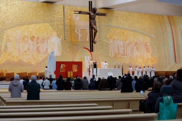 Misa, en portugués, en la Basílica de Nuestra Señora del Rosario de Fátima