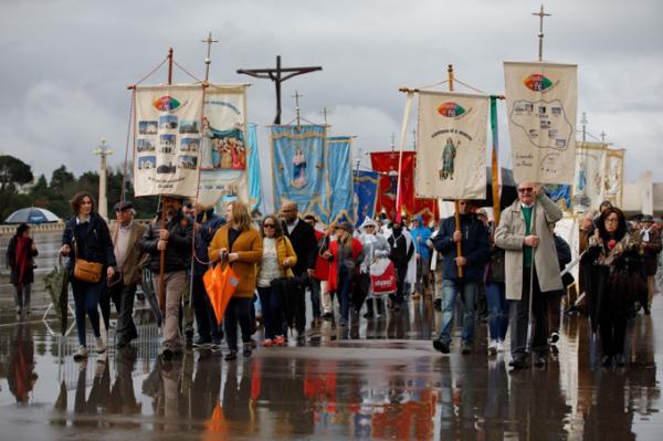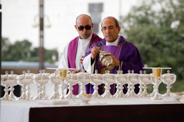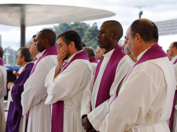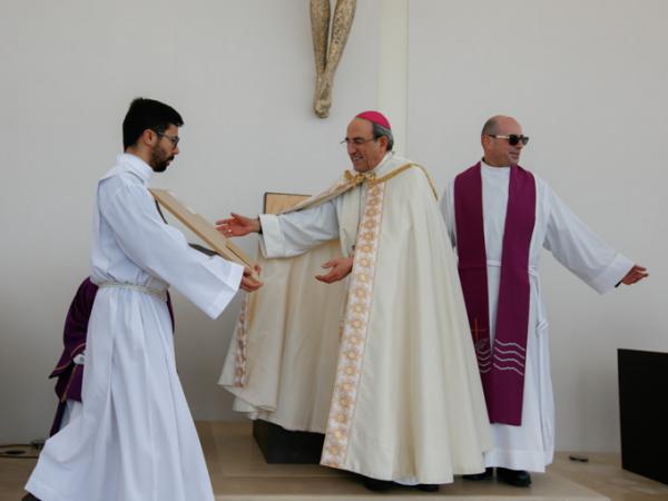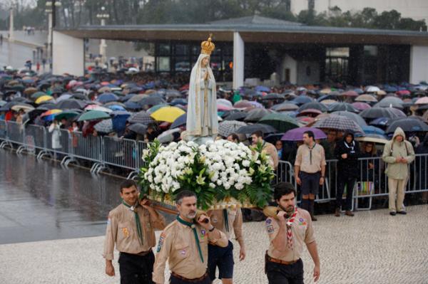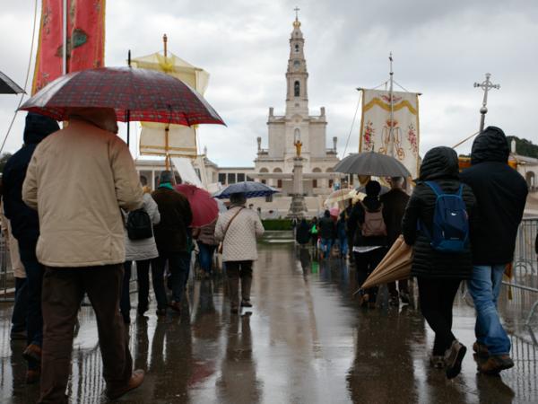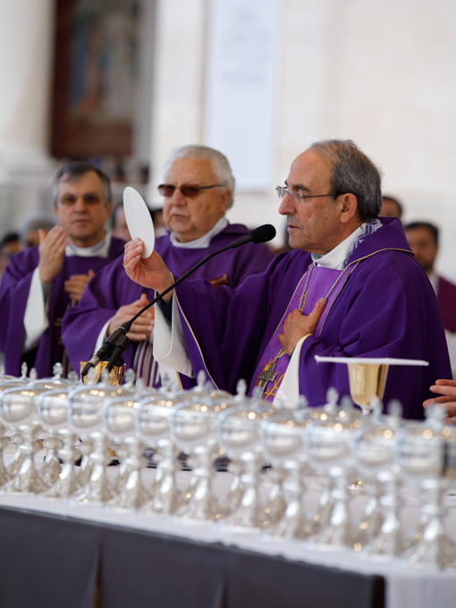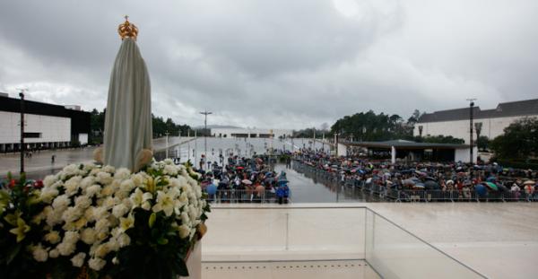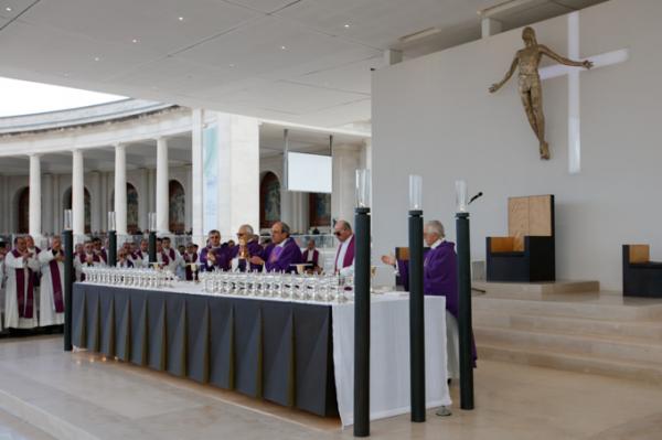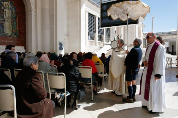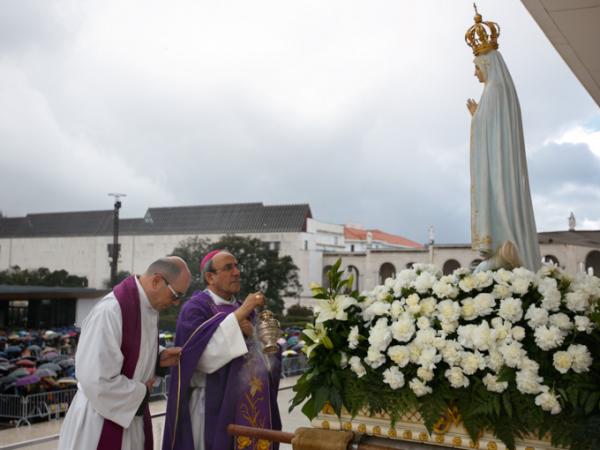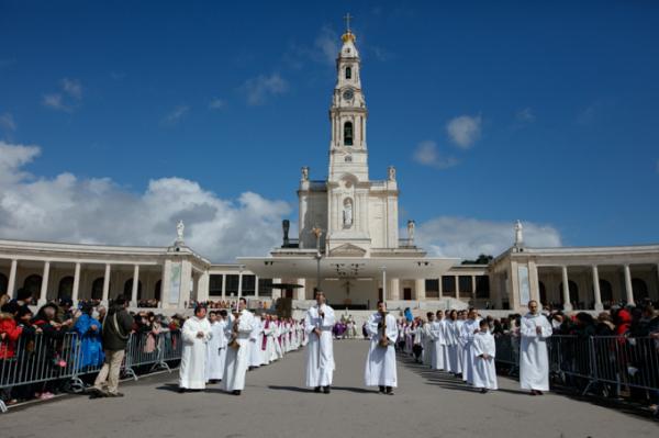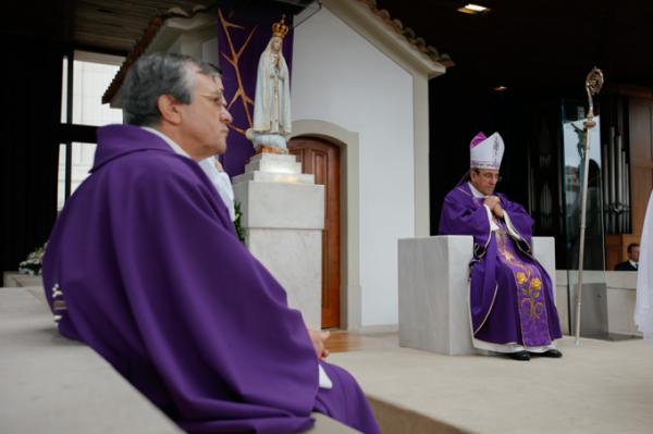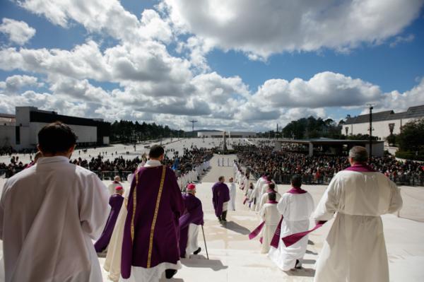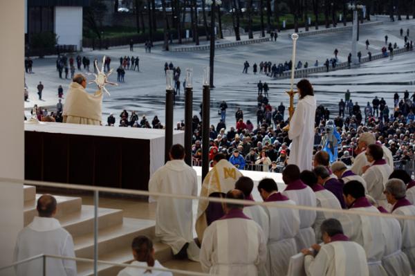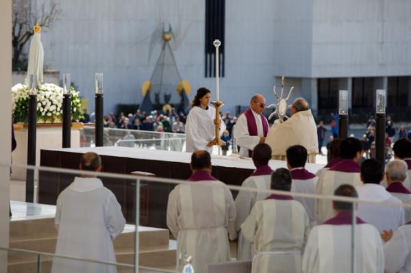 Misa, en portugués, en la Basílica de Nuestra Señora del Rosario de Fátima
