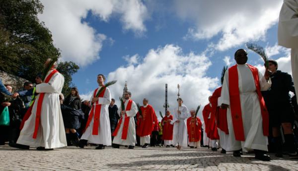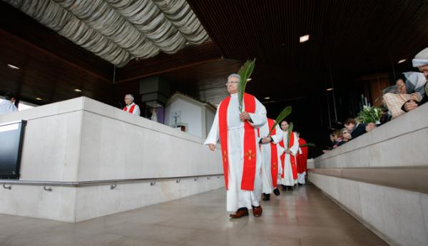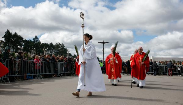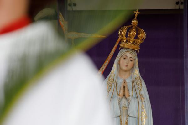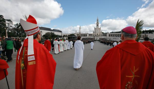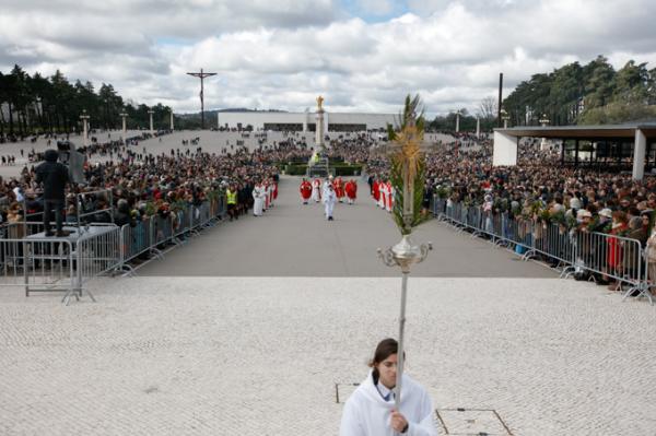 Misa, en portugués, en la Basílica de Nuestra Señora del Rosario de Fátima