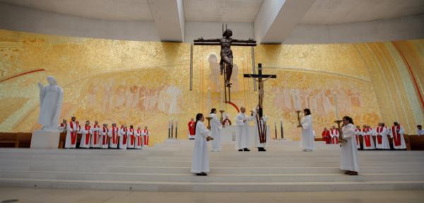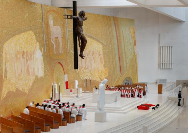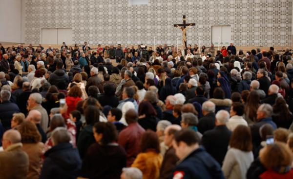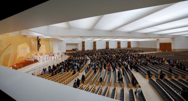 Misa, en portugués, en la Basílica de Nuestra Señora del Rosario de Fátima