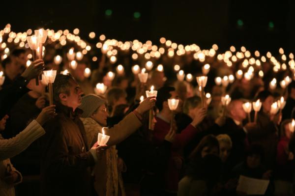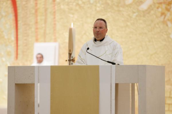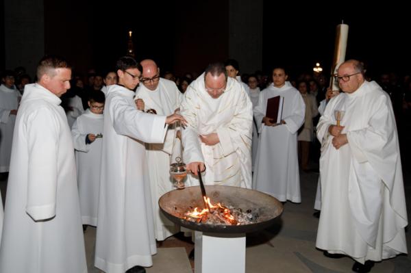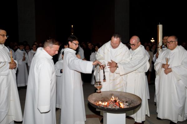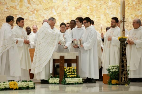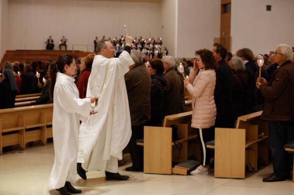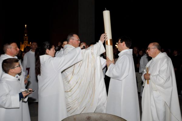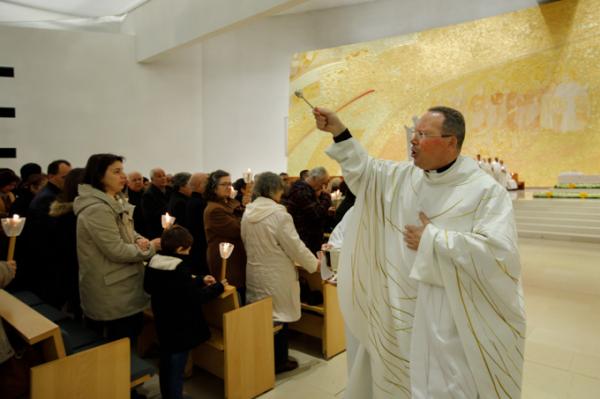 Misa, en portugués, en la Basílica de Nuestra Señora del Rosario de Fátima