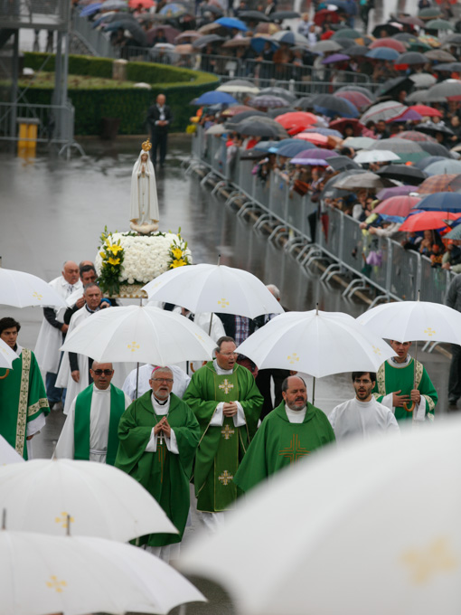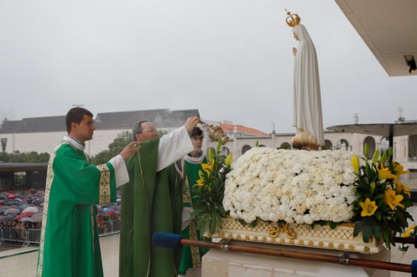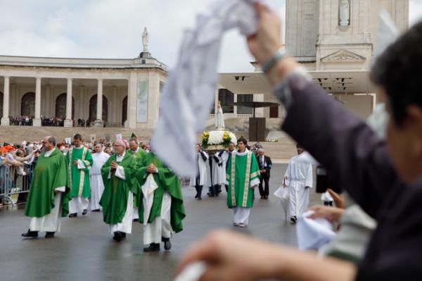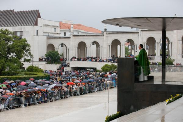Misa, en portugués, en la Basílica de Nuestra Señora del Rosario de Fátima