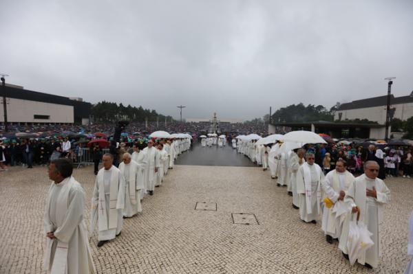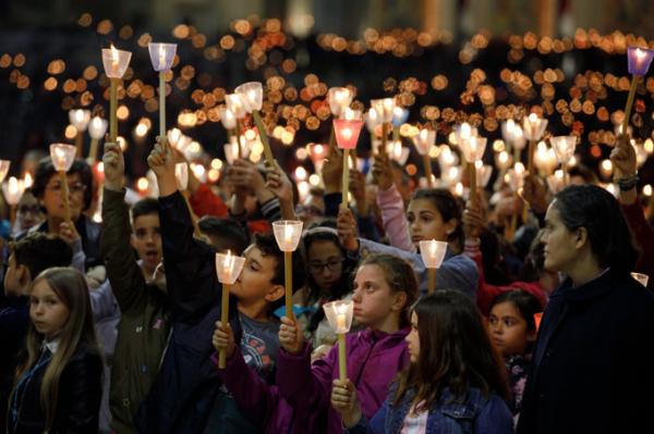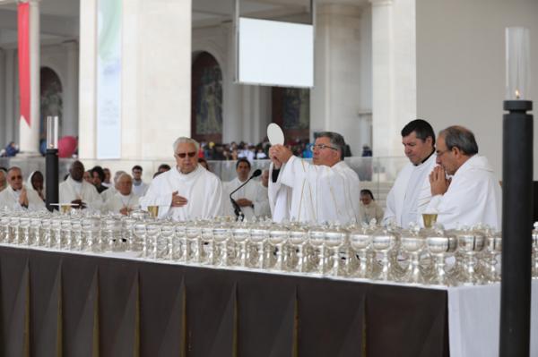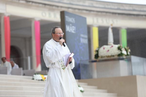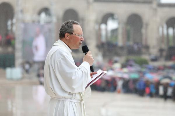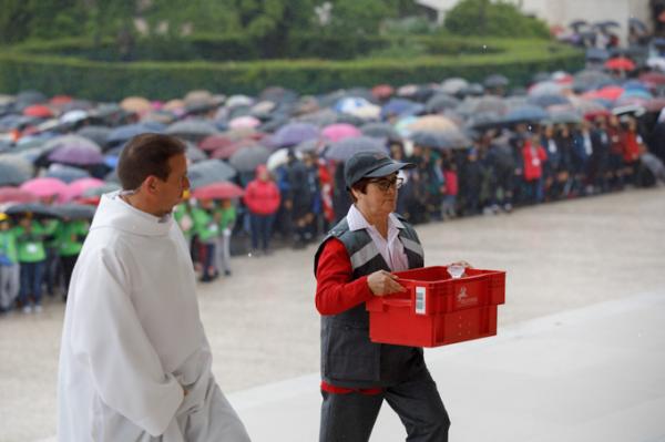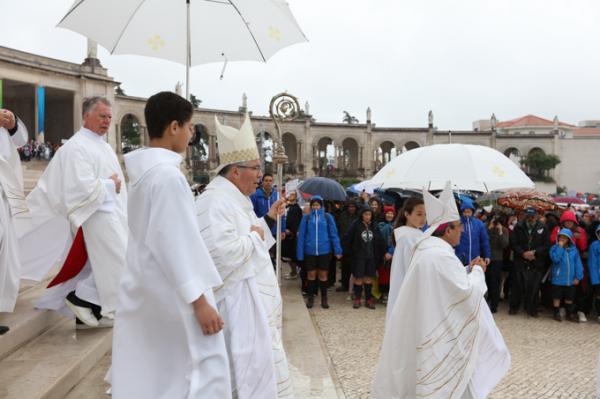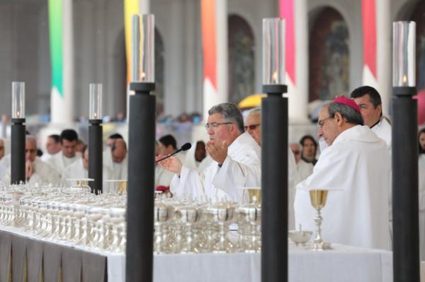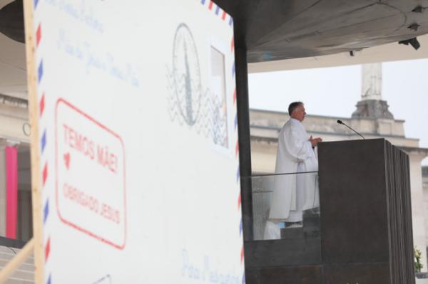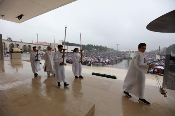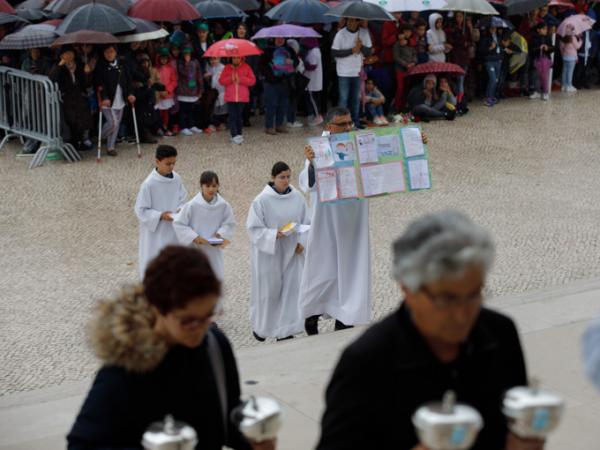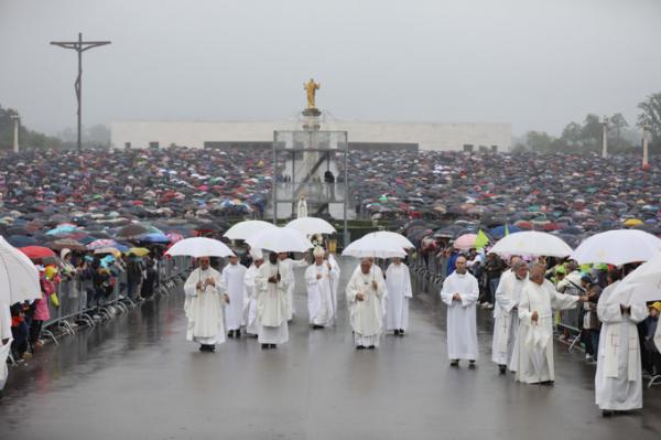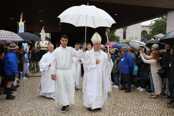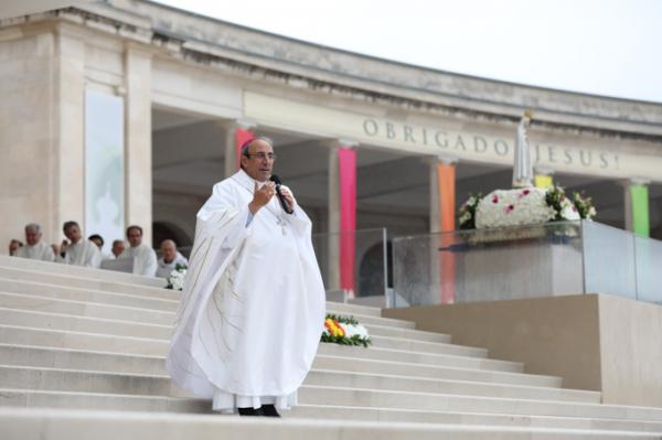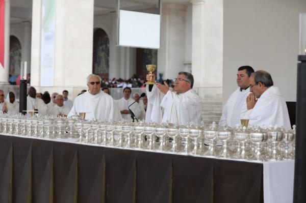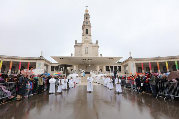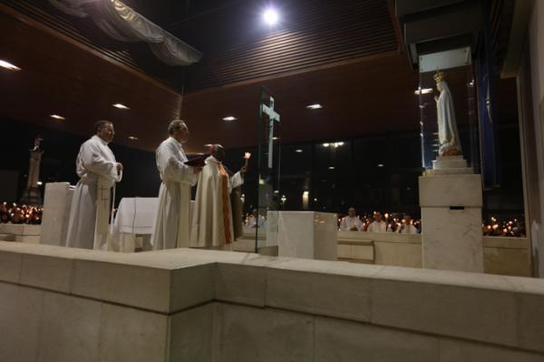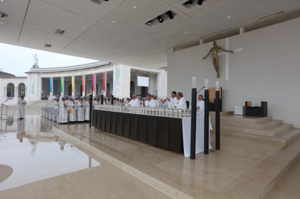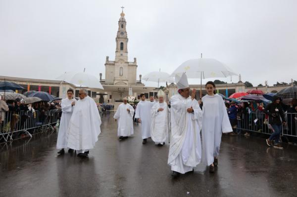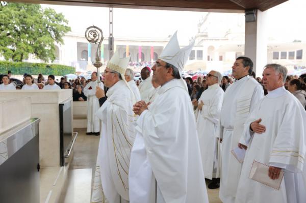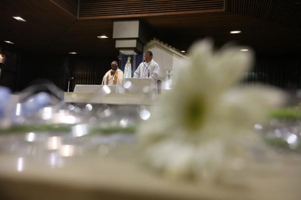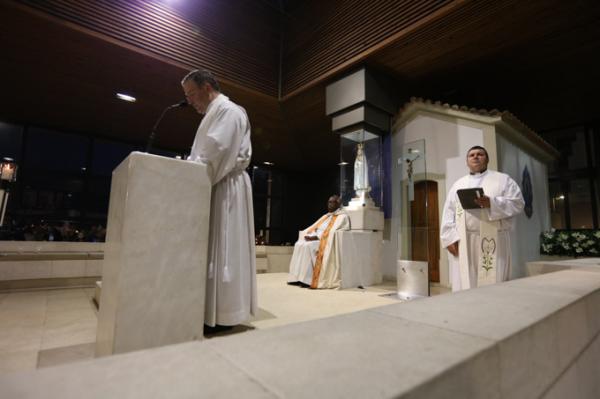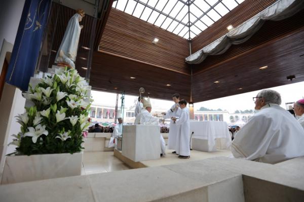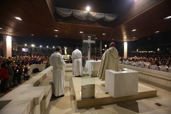 Misa, en portugués, en la Basílica de Nuestra Señora del Rosario de Fátima