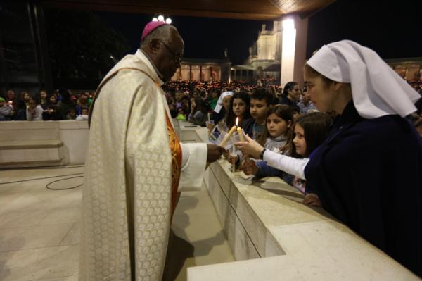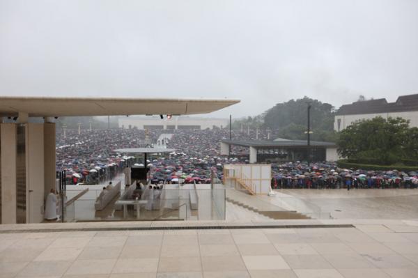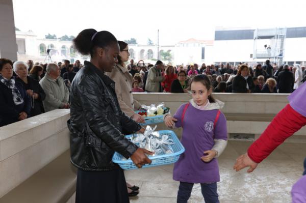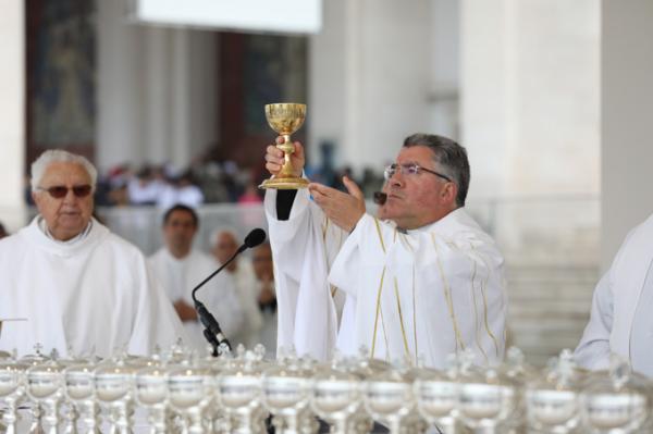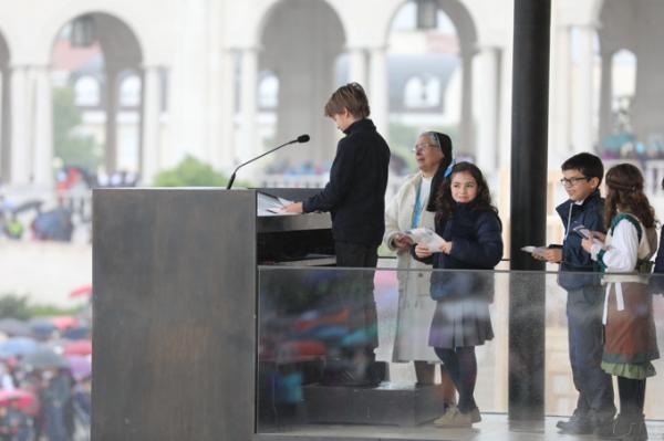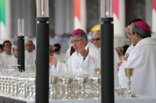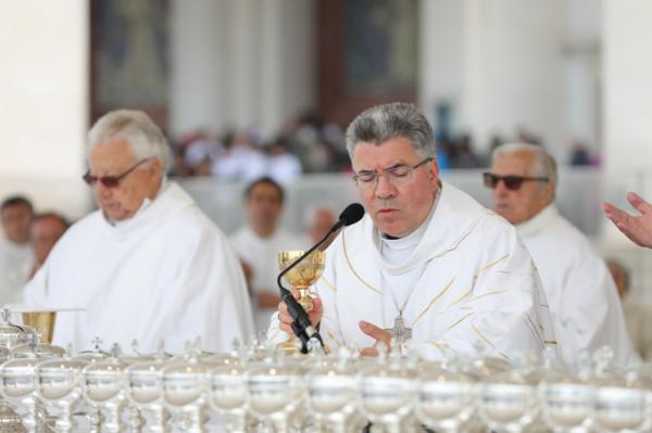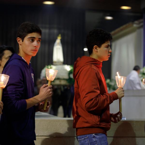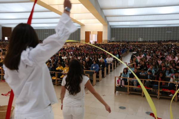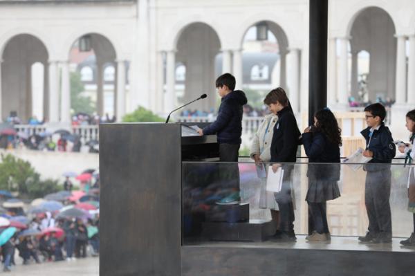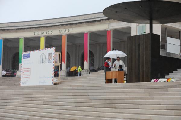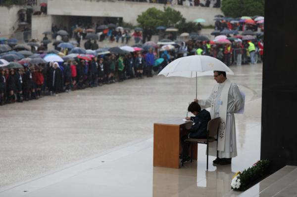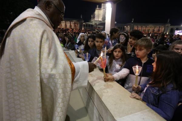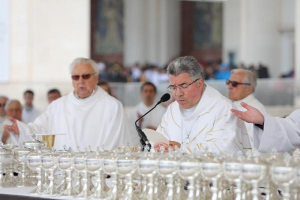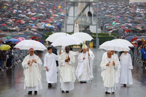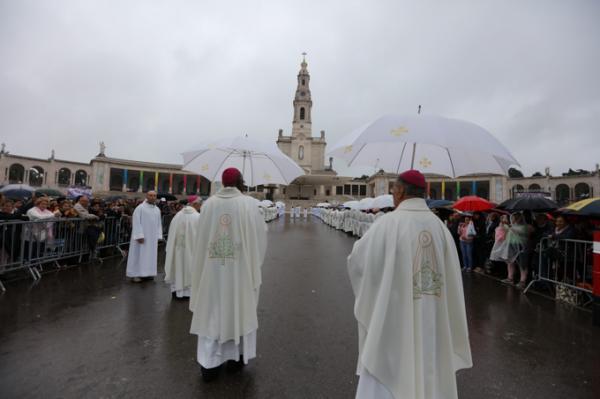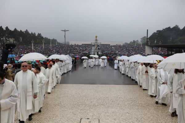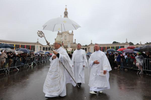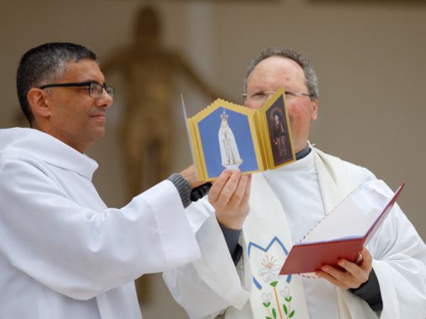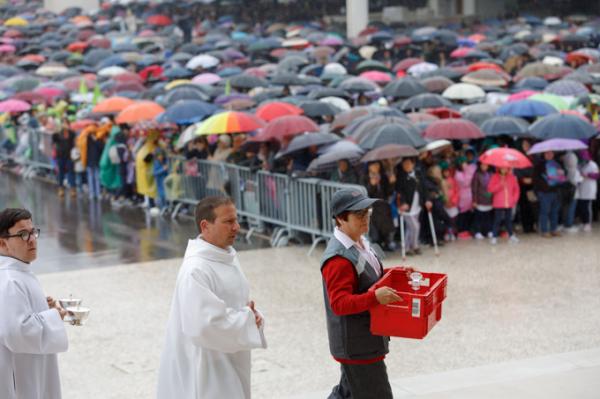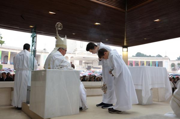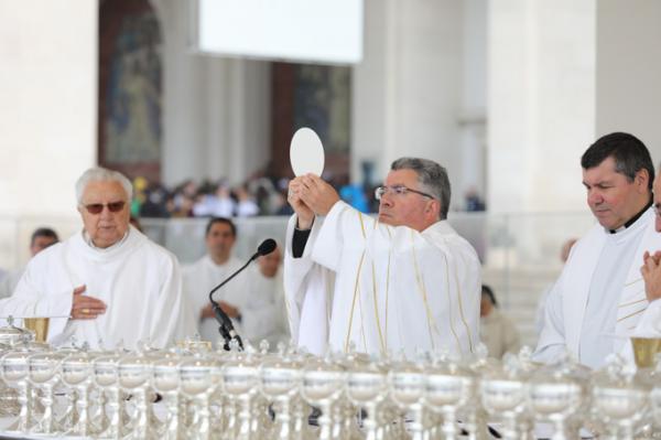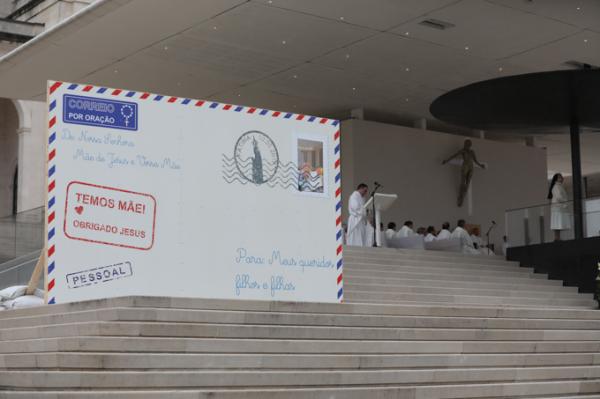 Misa, en portugués, en la Basílica de Nuestra Señora del Rosario de Fátima