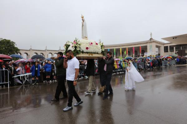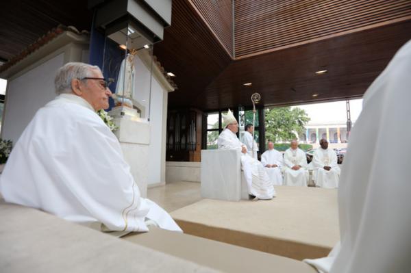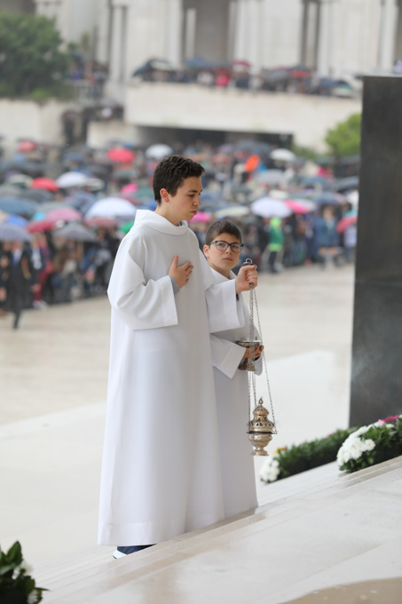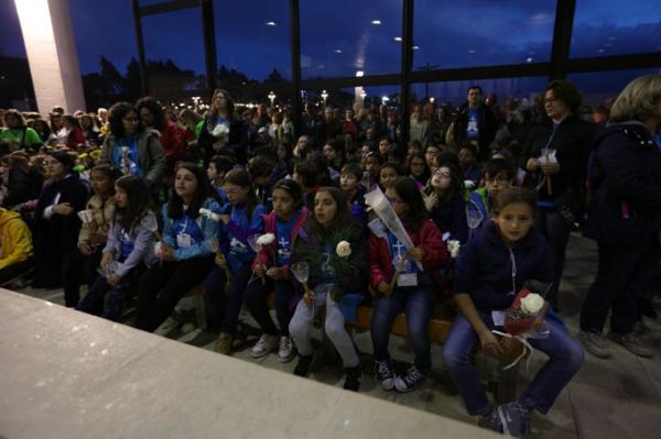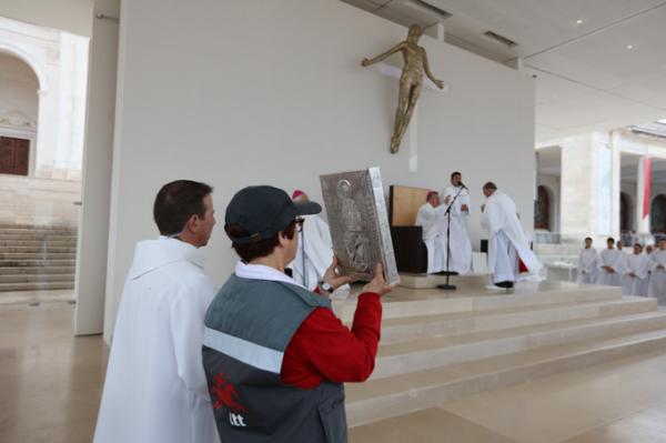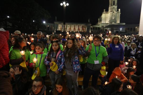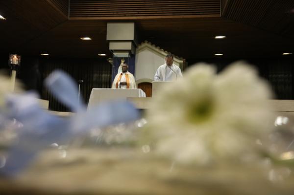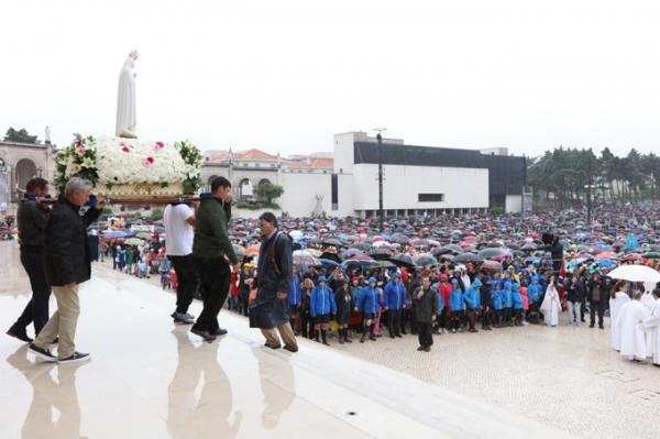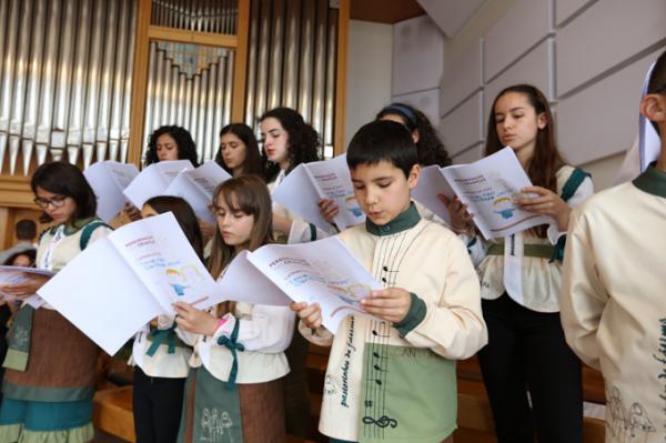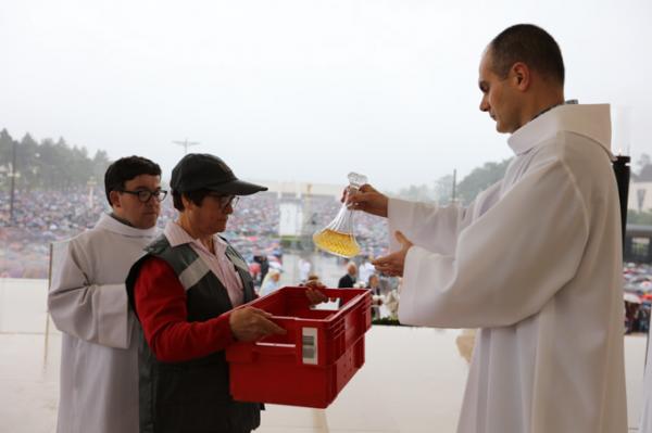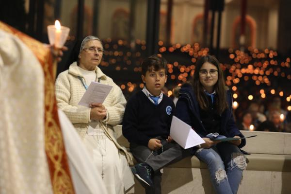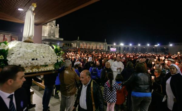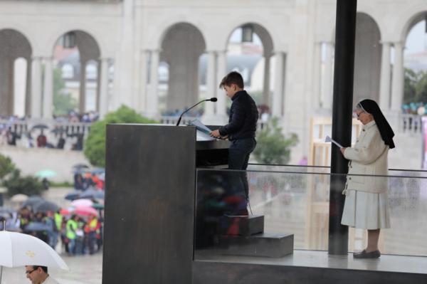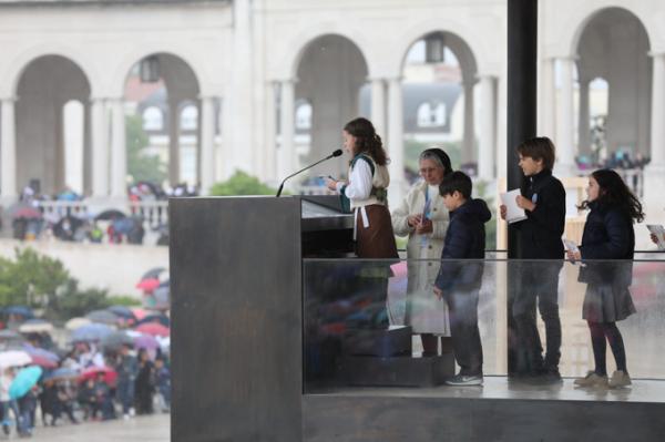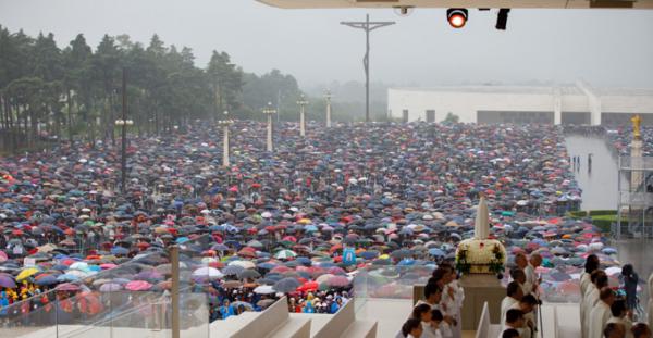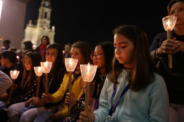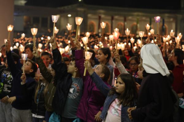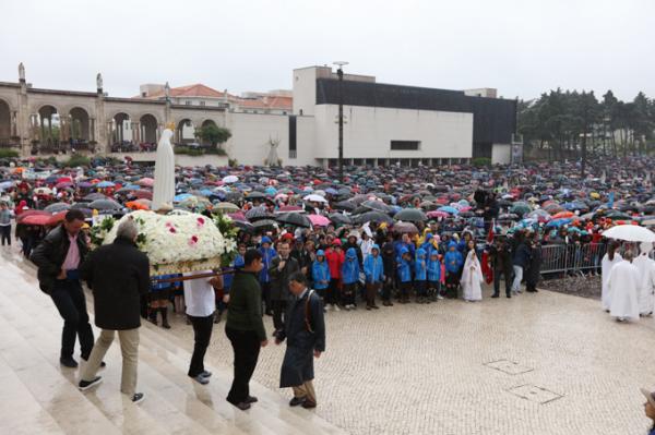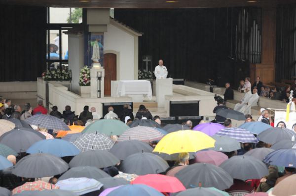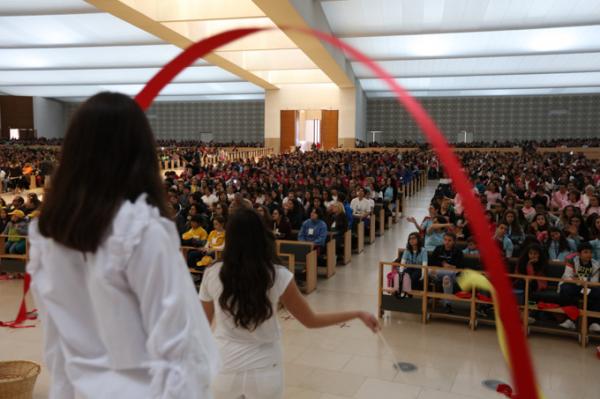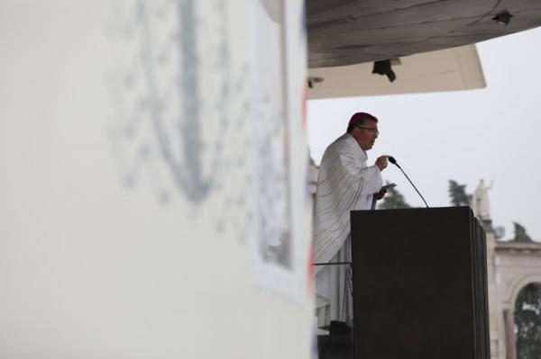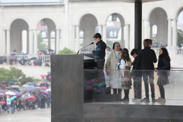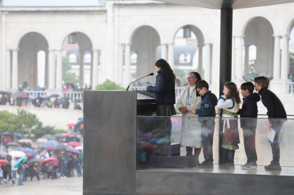 Misa, en portugués, en la Basílica de Nuestra Señora del Rosario de Fátima