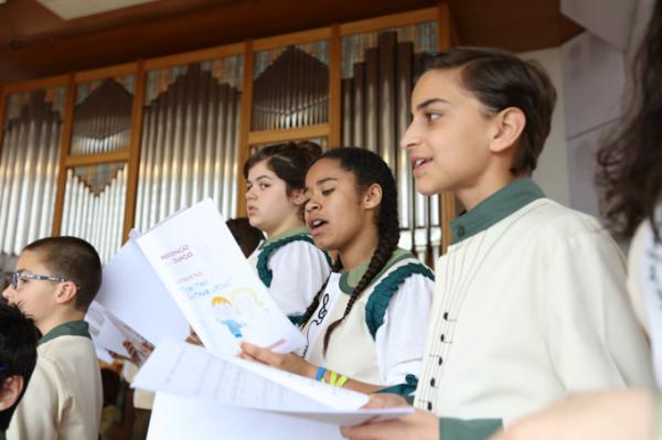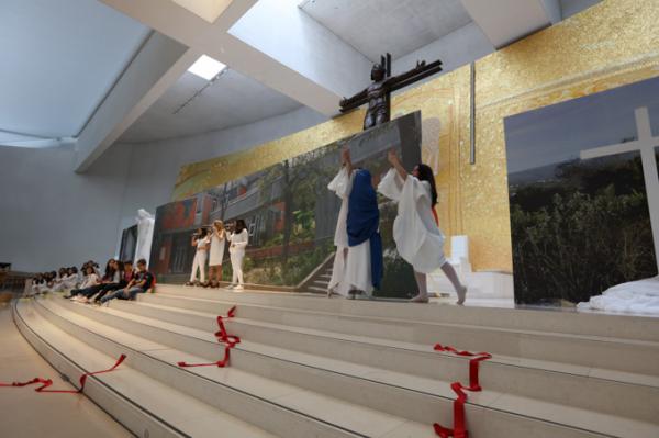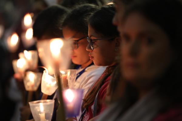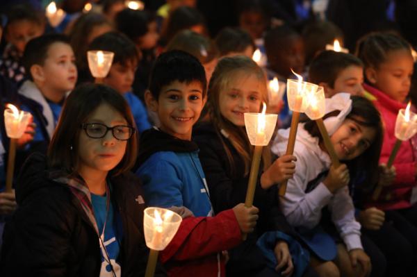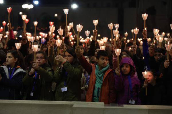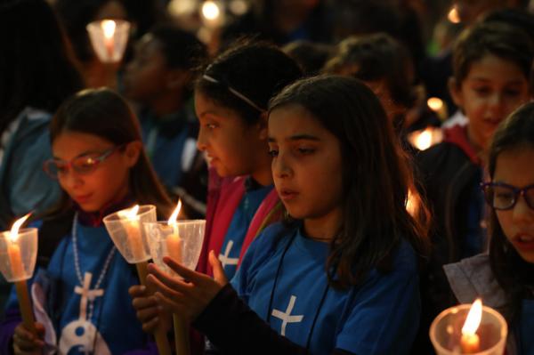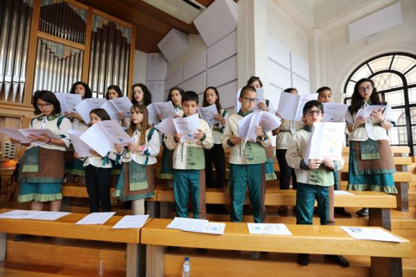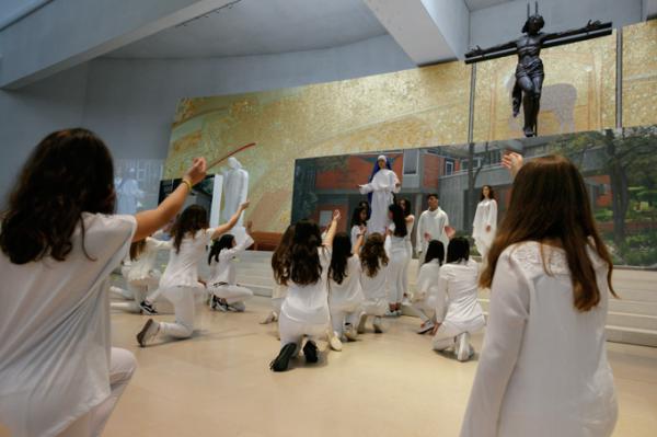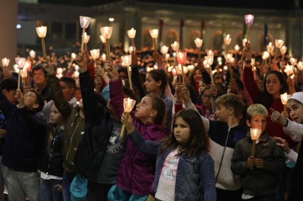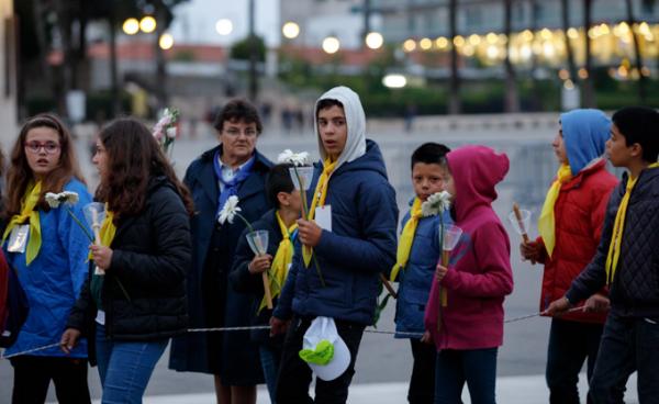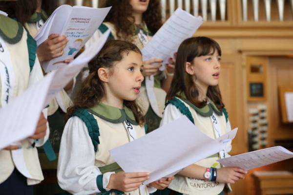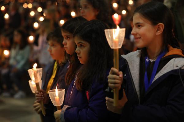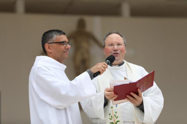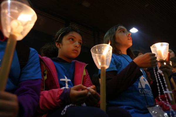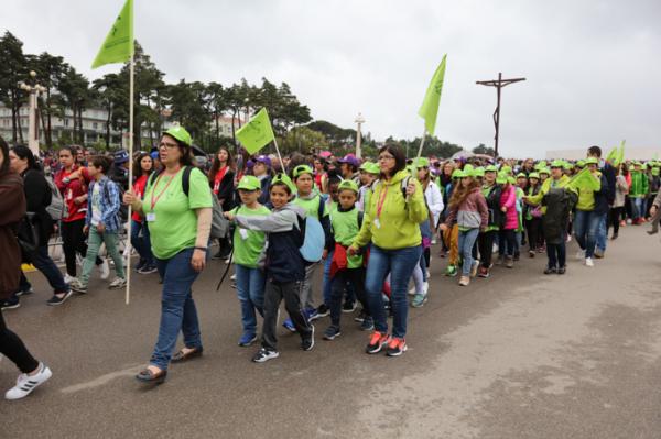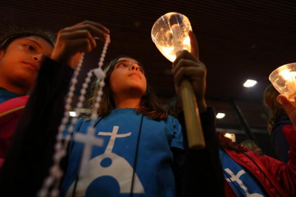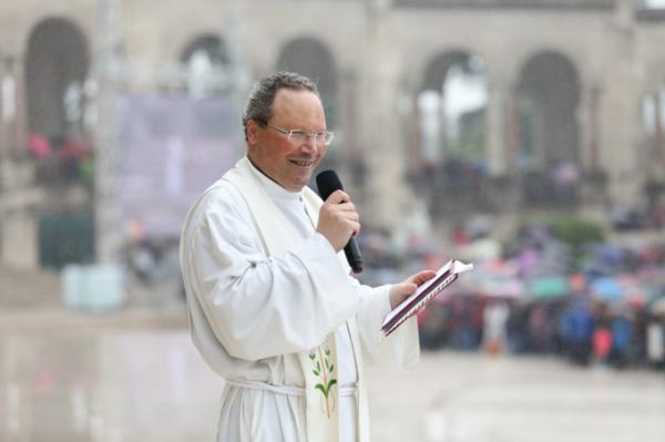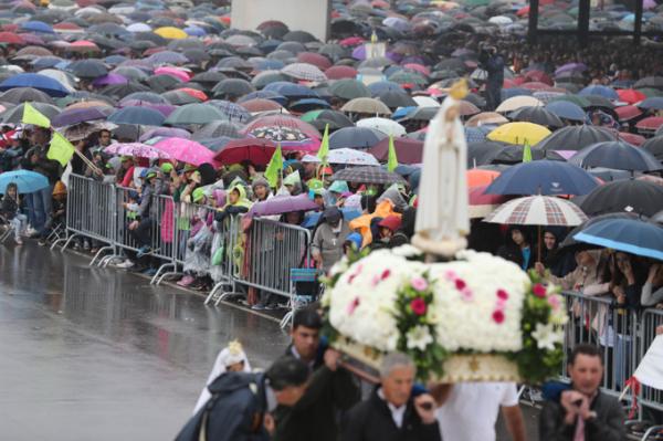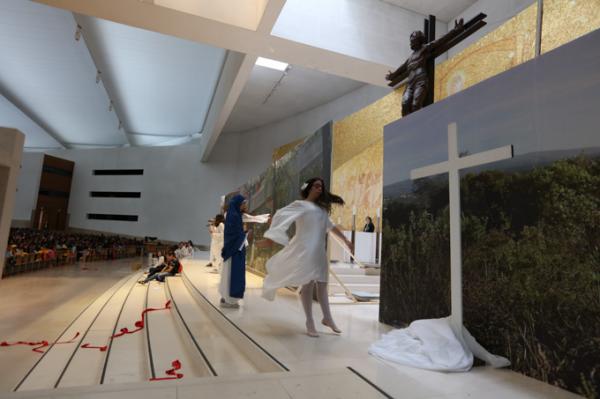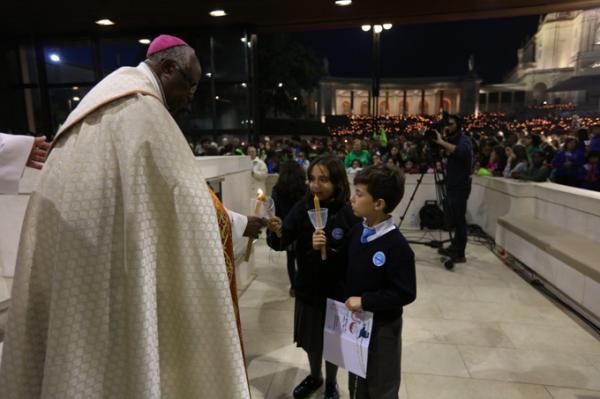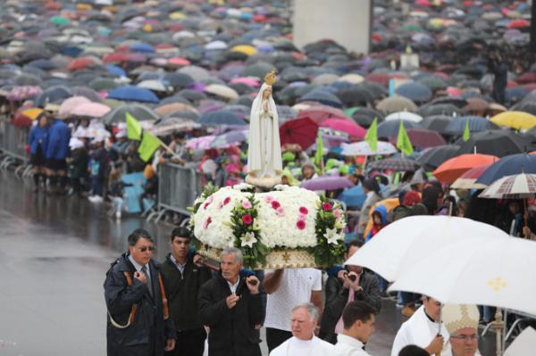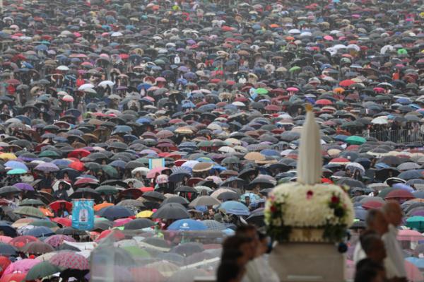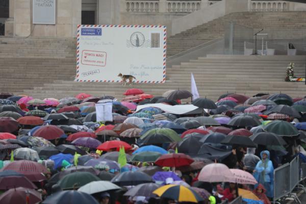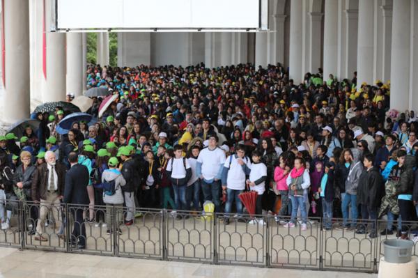 Misa, en portugués, en la Basílica de Nuestra Señora del Rosario de Fátima
