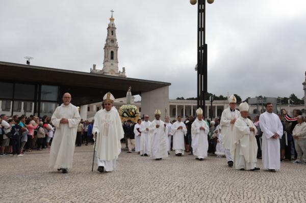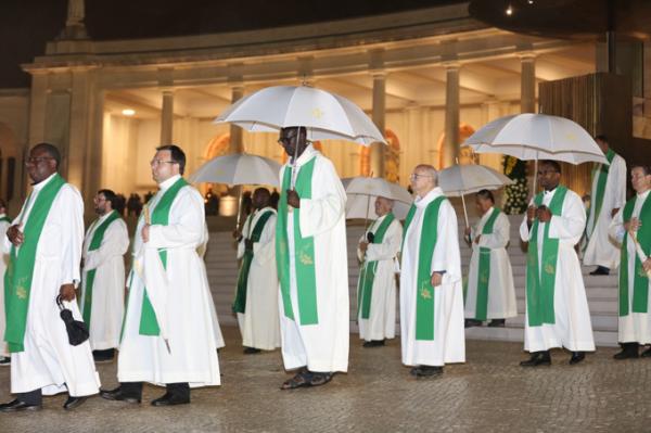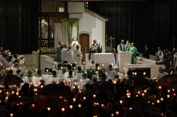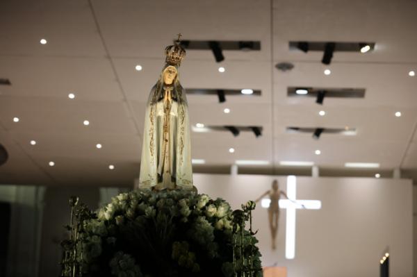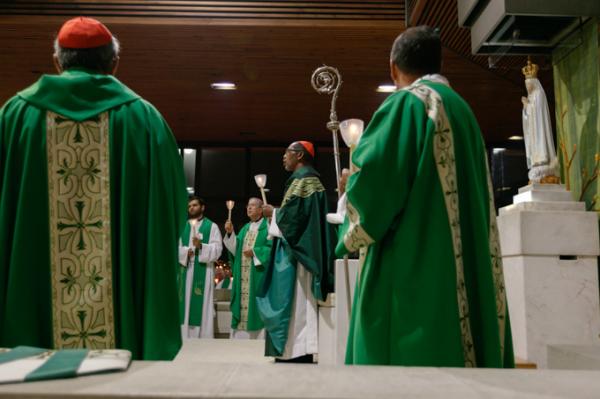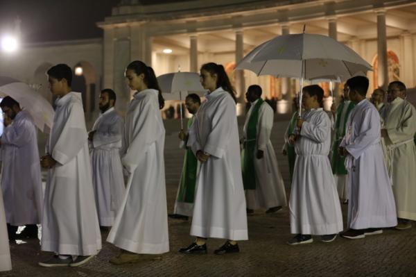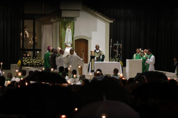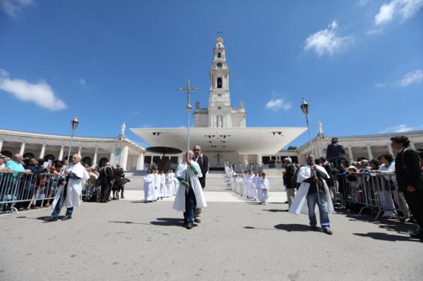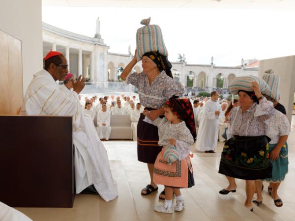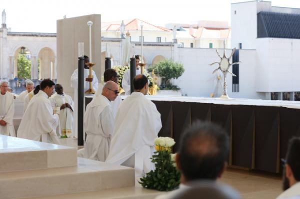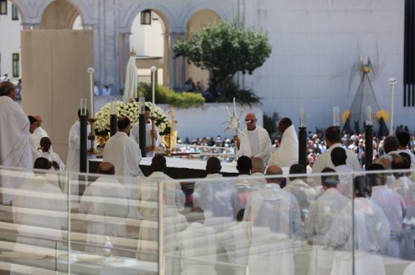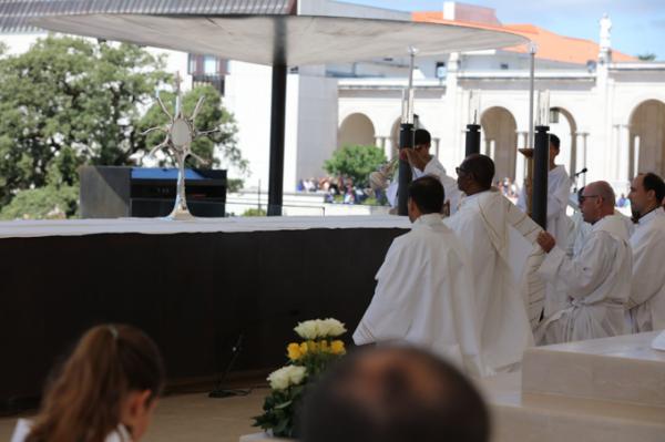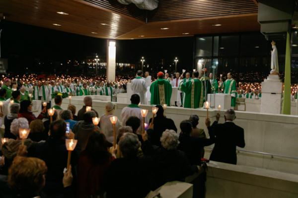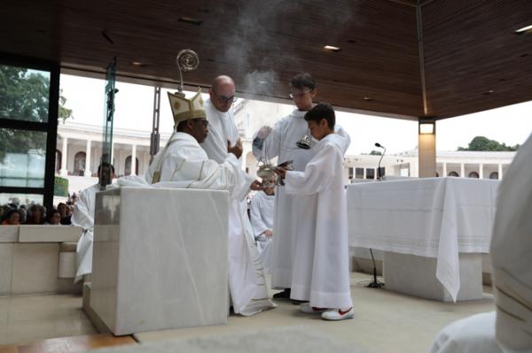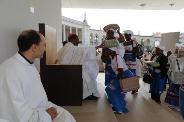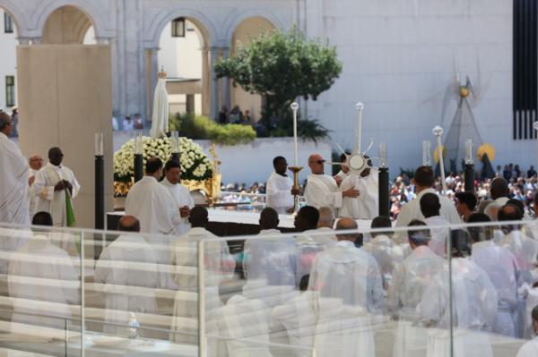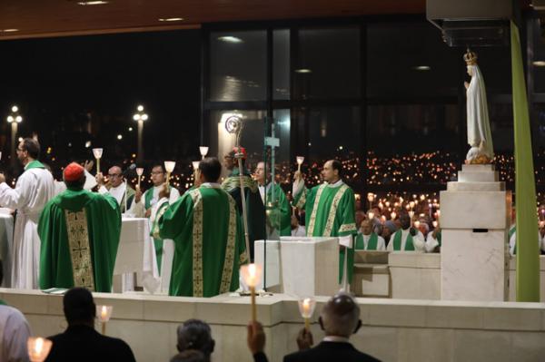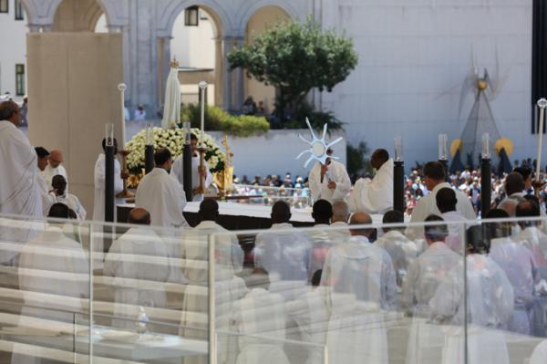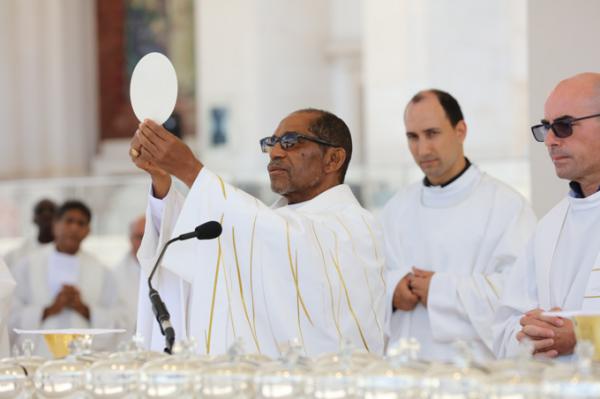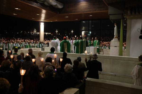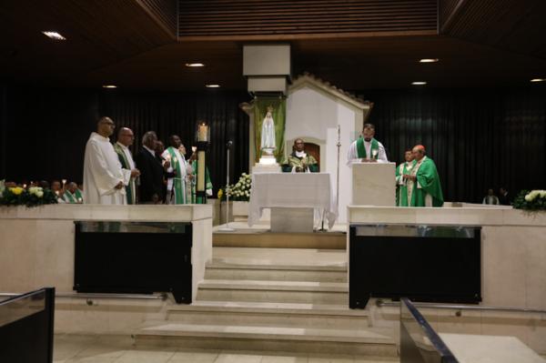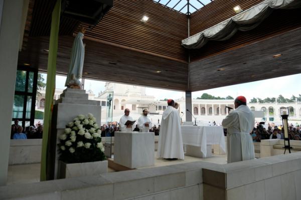 Misa, en portugués, en la Basílica de Nuestra Señora del Rosario de Fátima