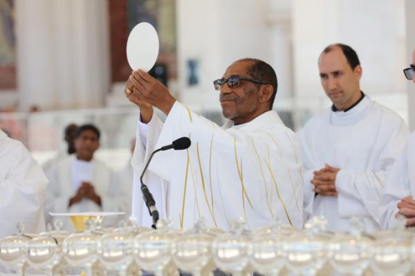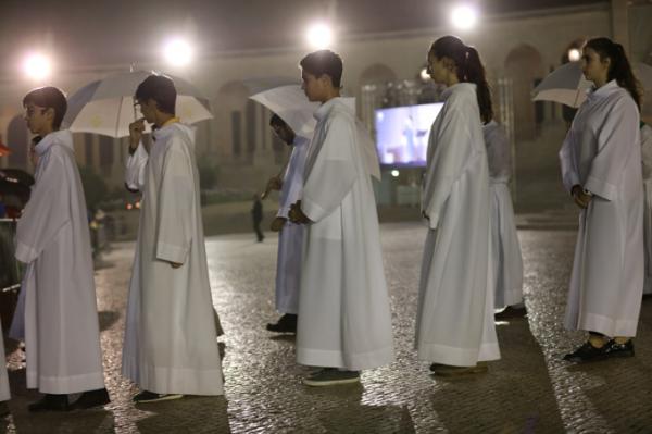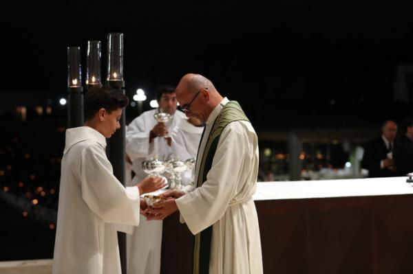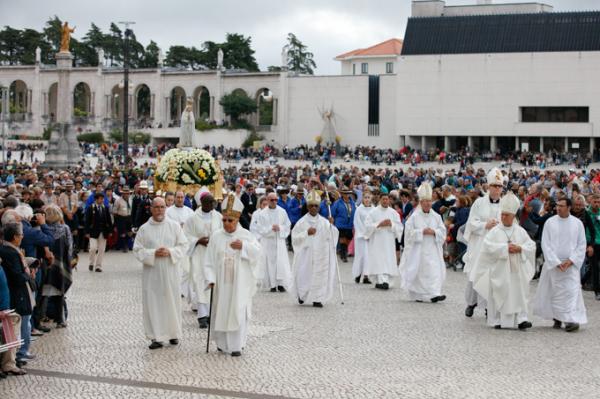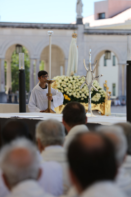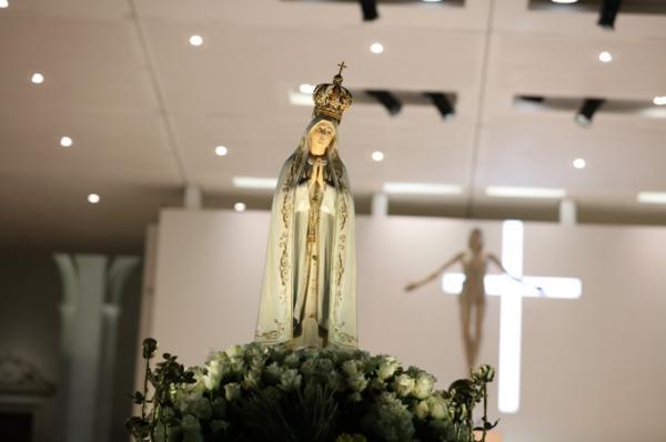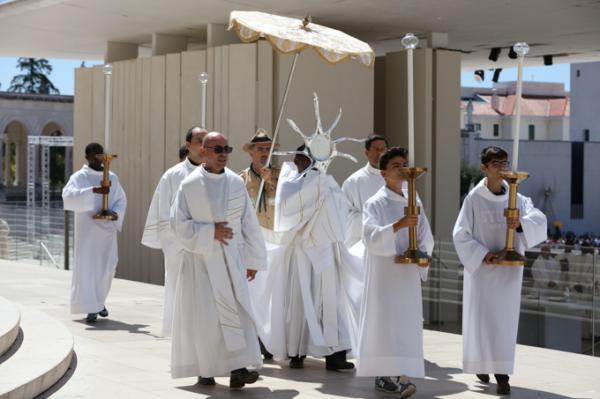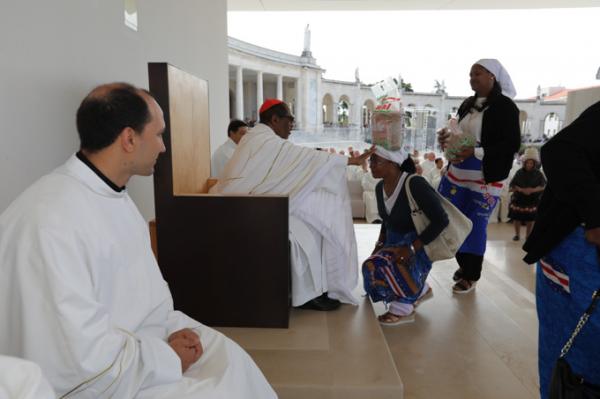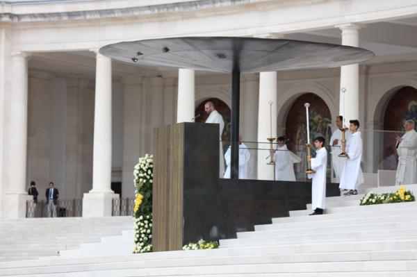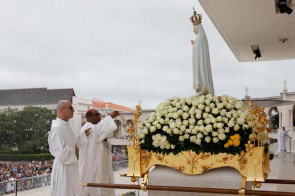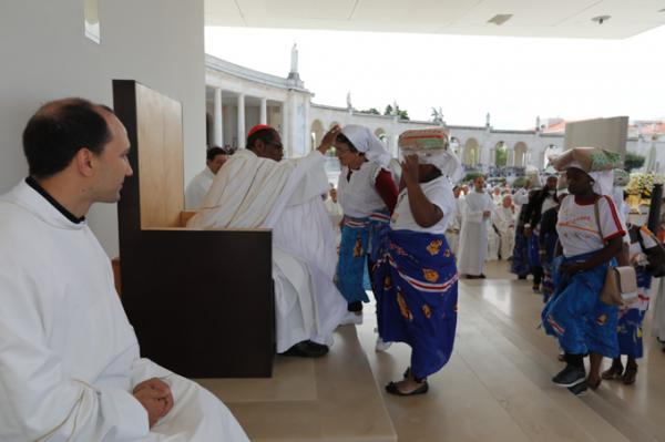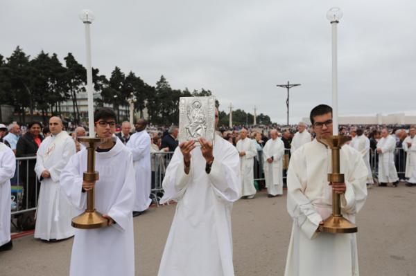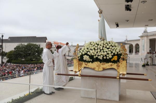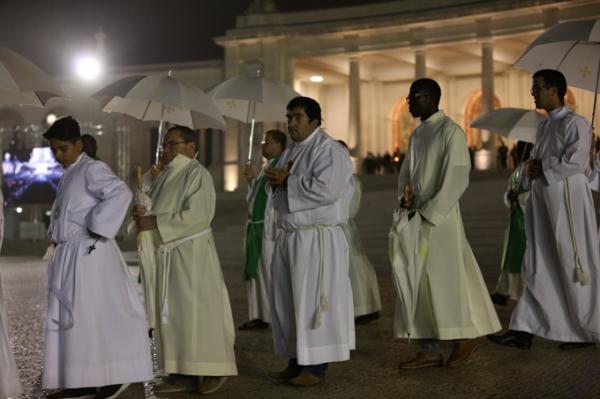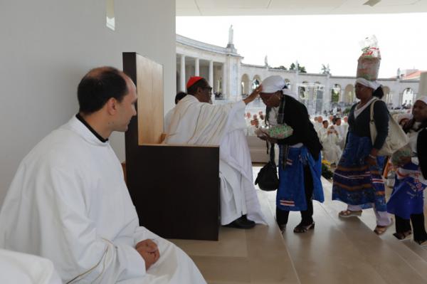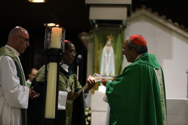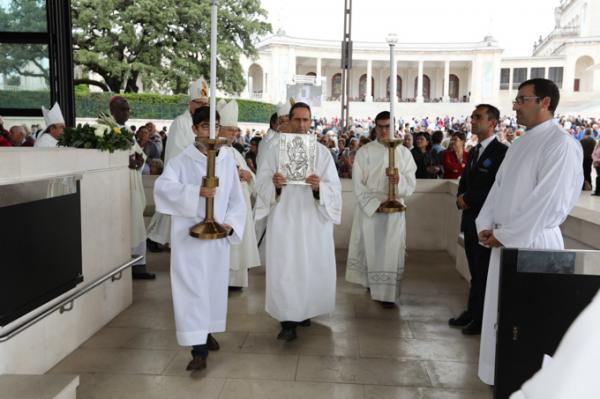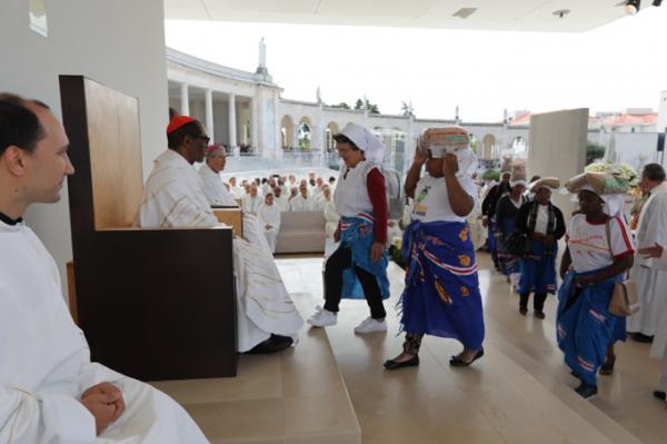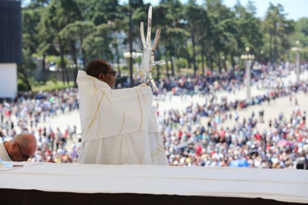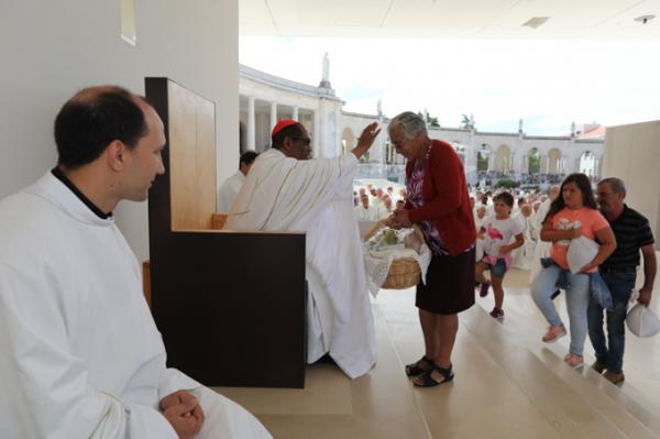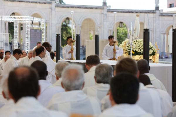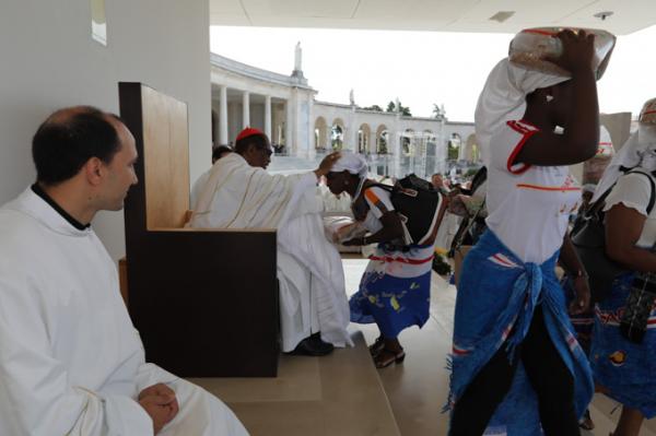 Misa, en portugués, en la Basílica de Nuestra Señora del Rosario de Fátima