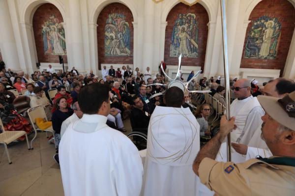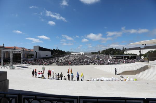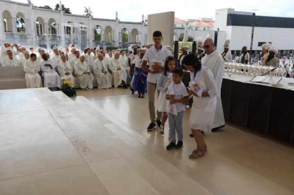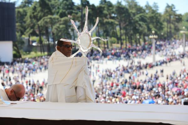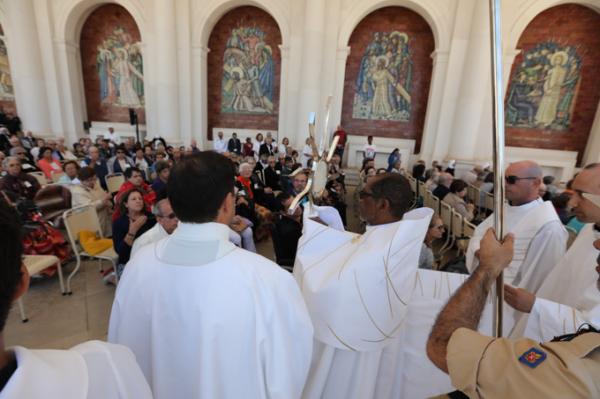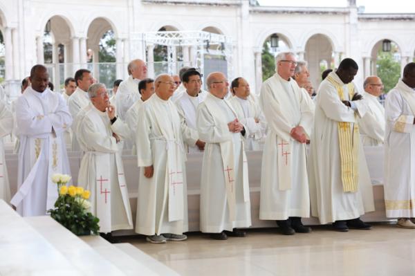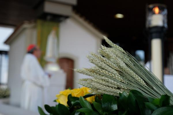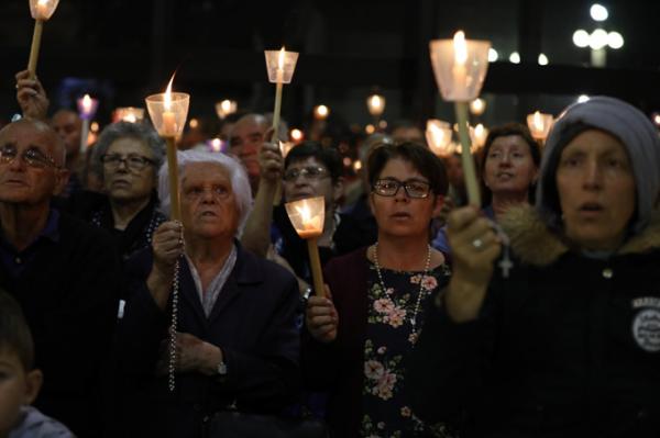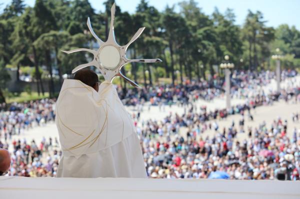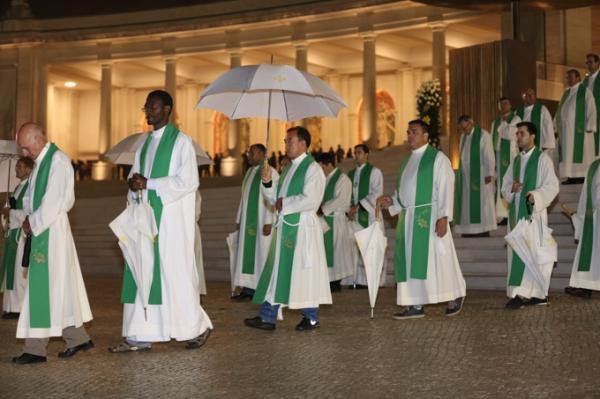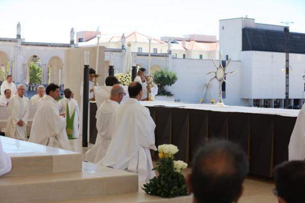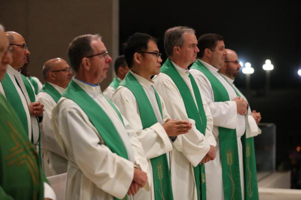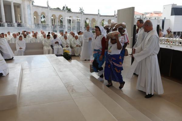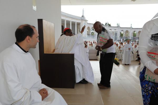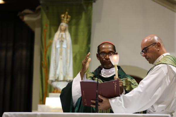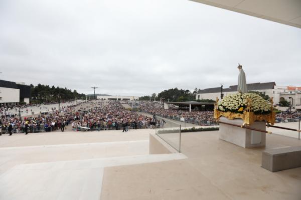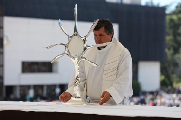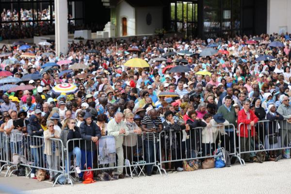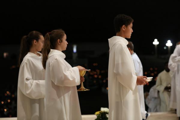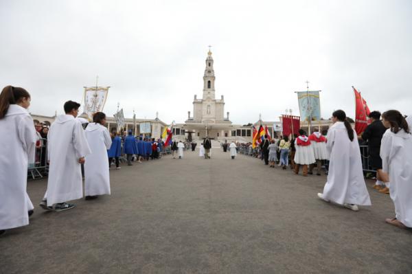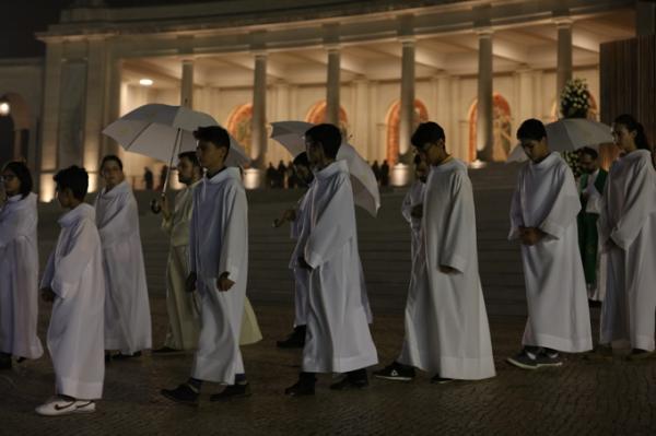 Misa, en portugués, en la Basílica de Nuestra Señora del Rosario de Fátima