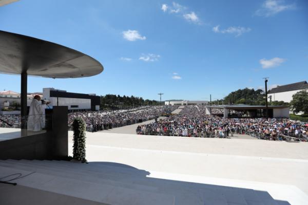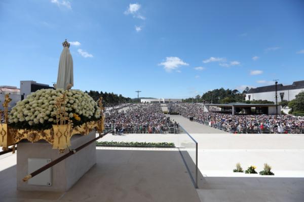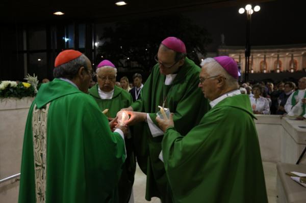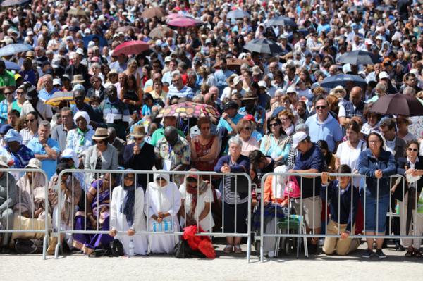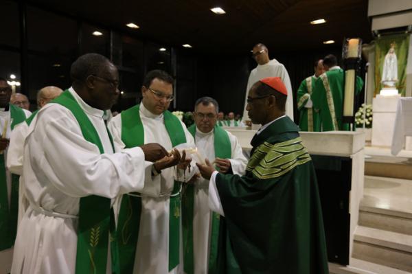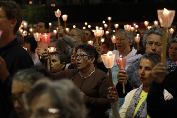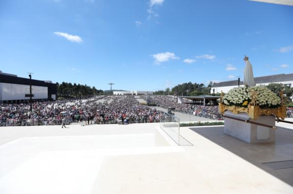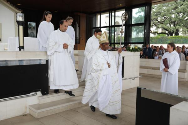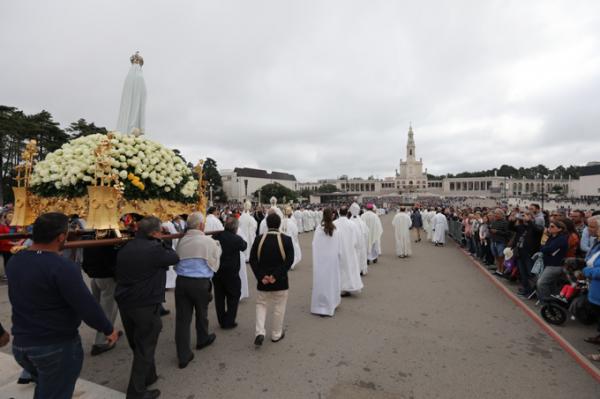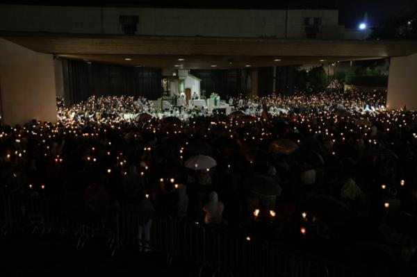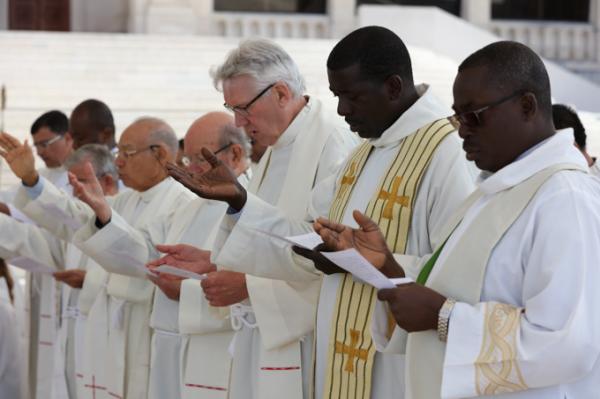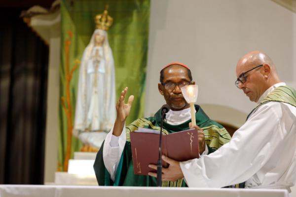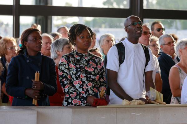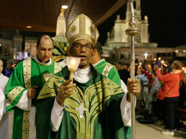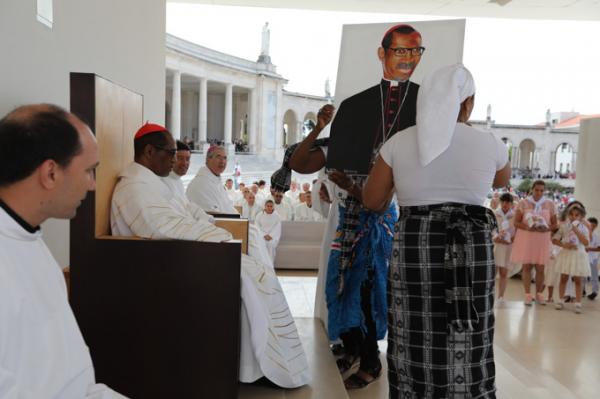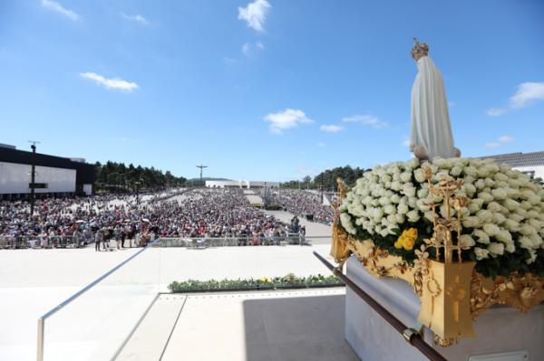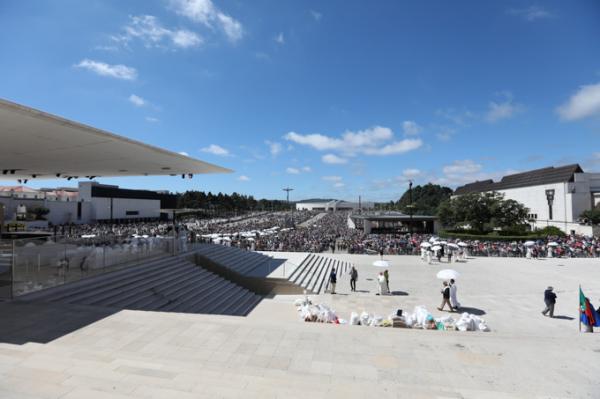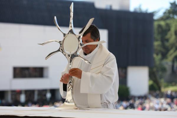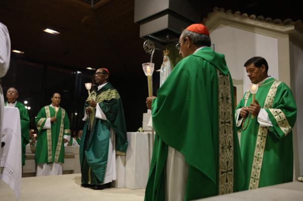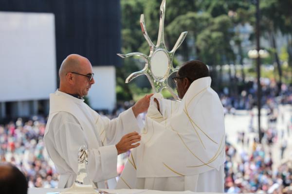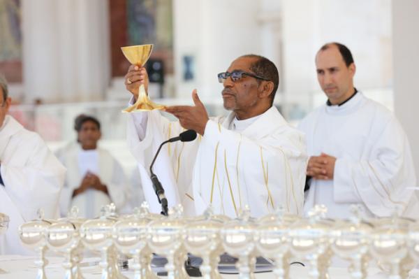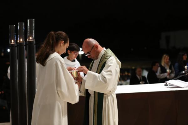 Misa, en portugués, en la Basílica de Nuestra Señora del Rosario de Fátima