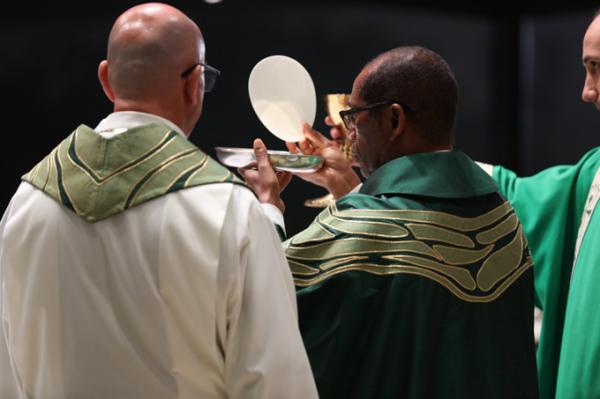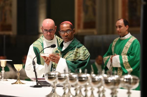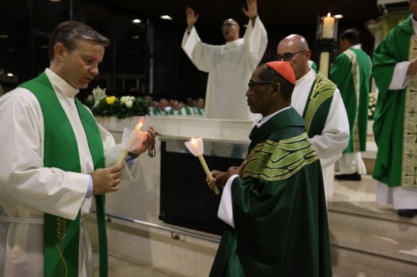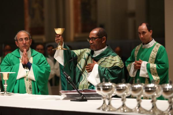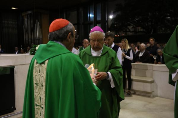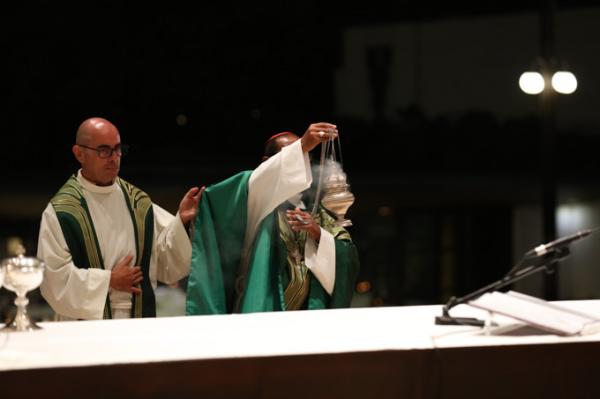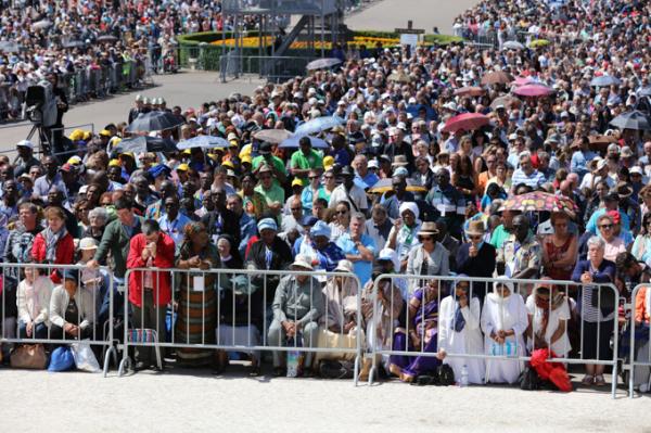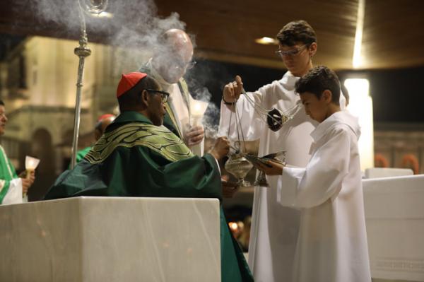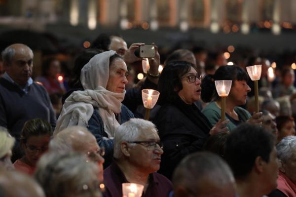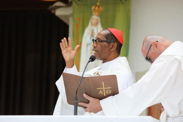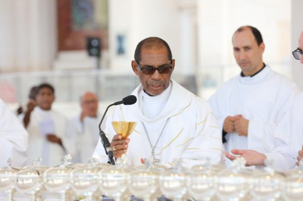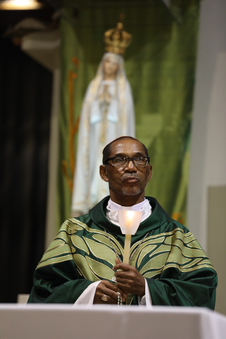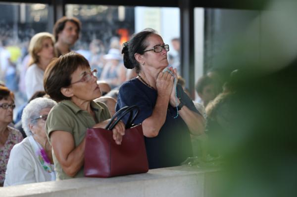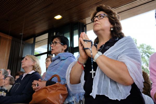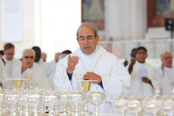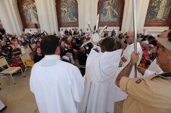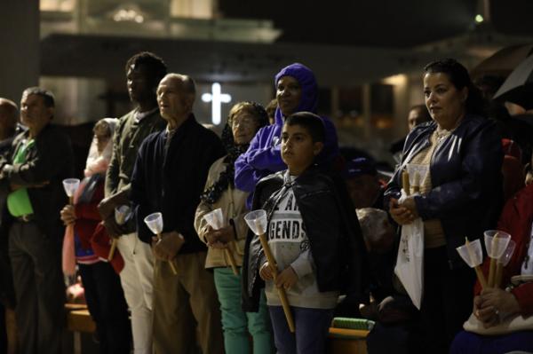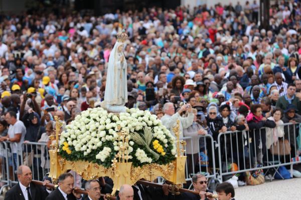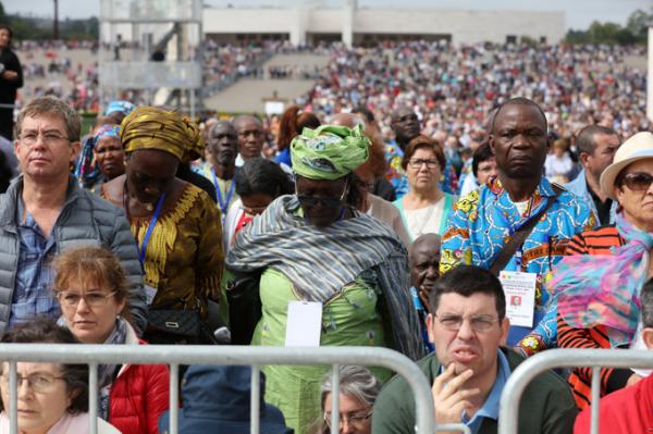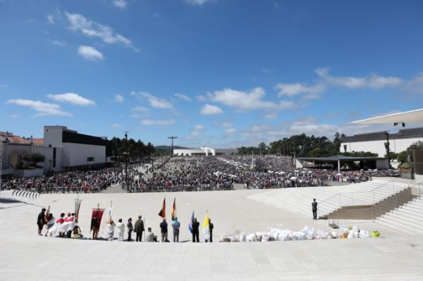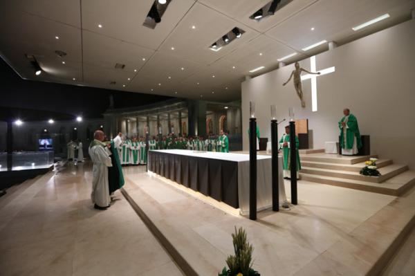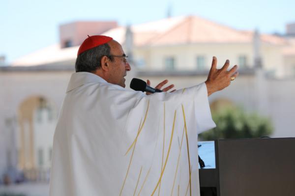 Misa, en portugués, en la Basílica de Nuestra Señora del Rosario de Fátima