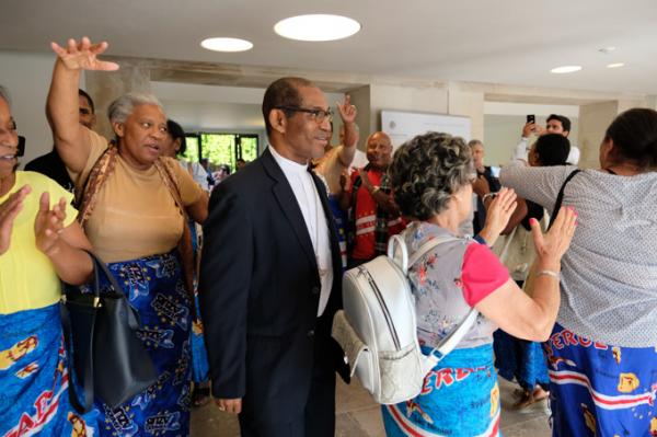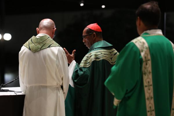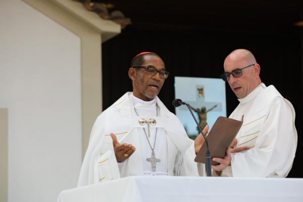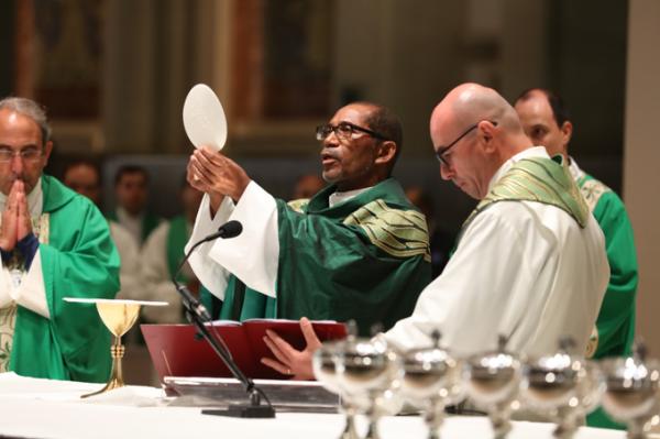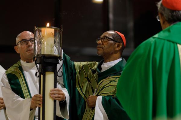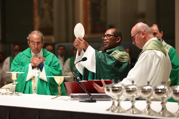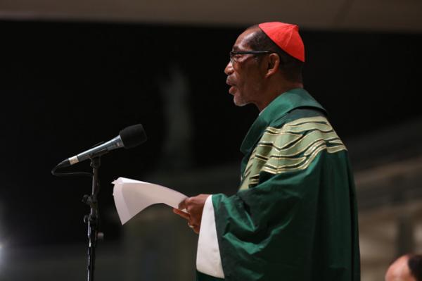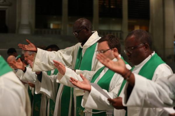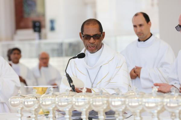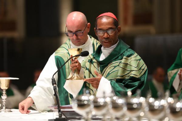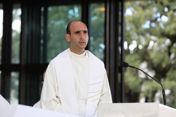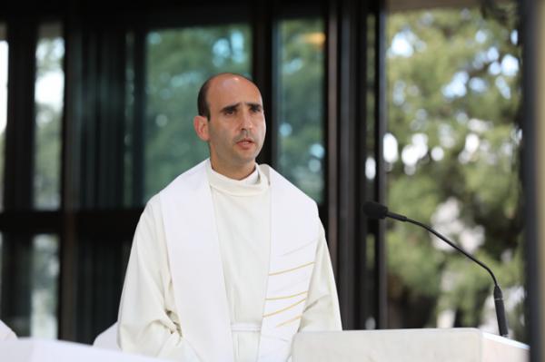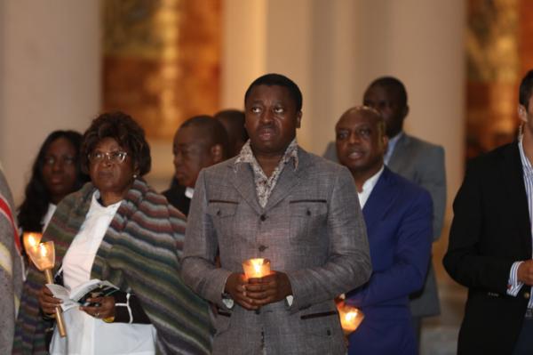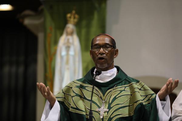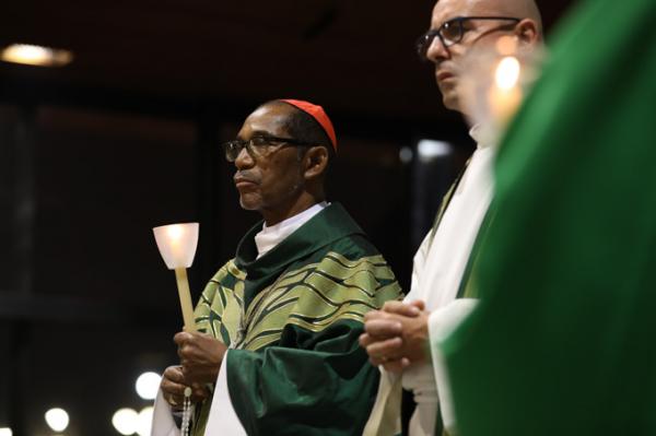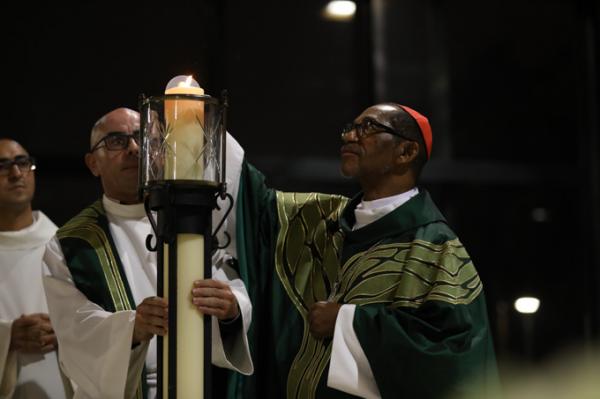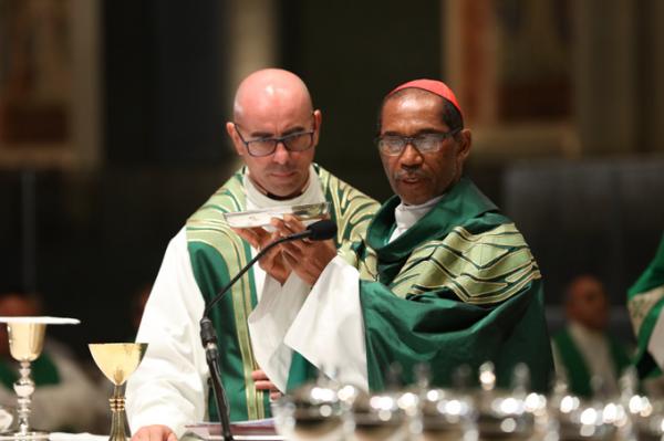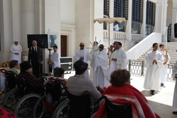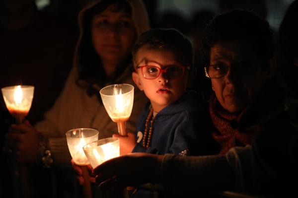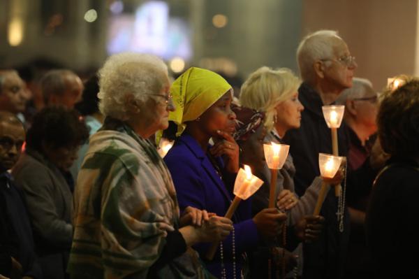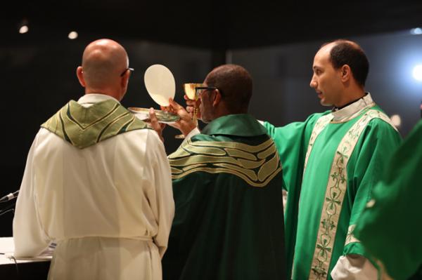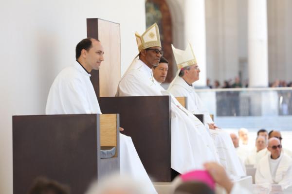 Misa, en portugués, en la Basílica de Nuestra Señora del Rosario de Fátima