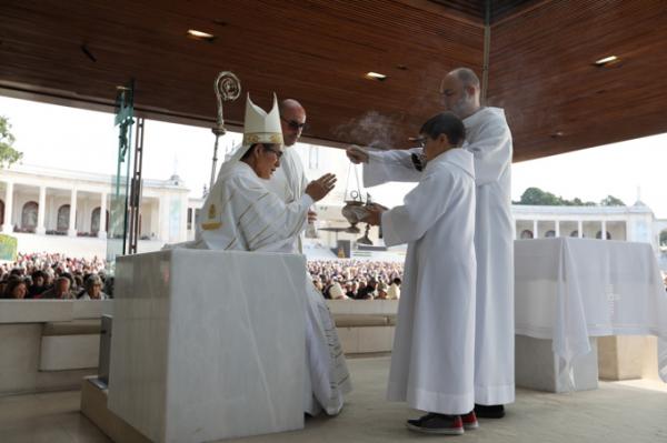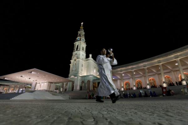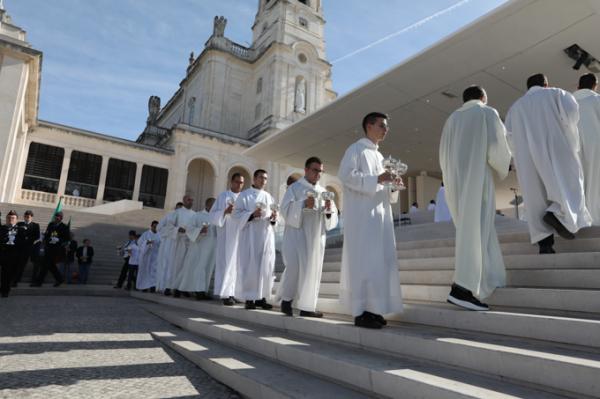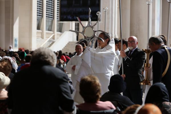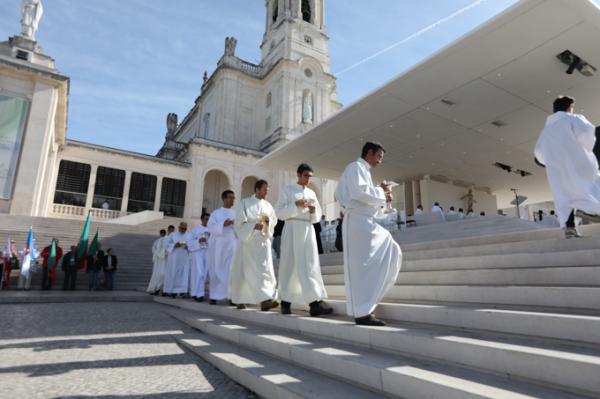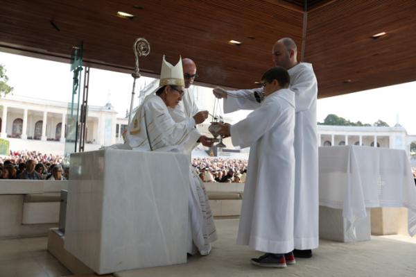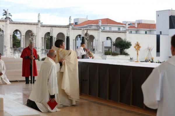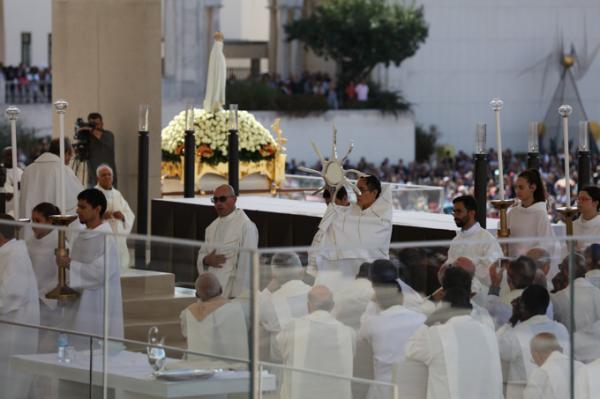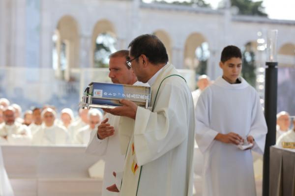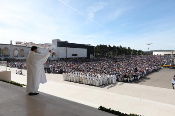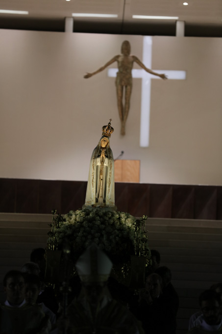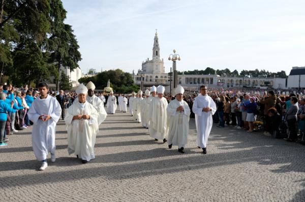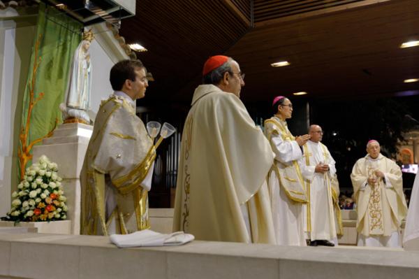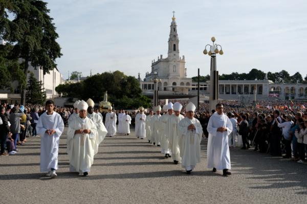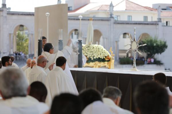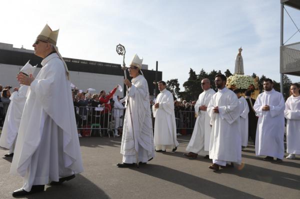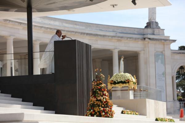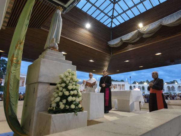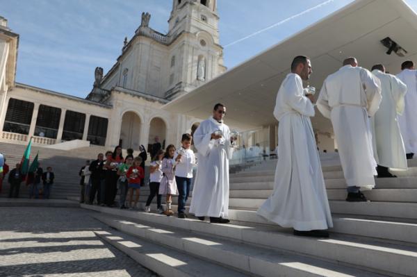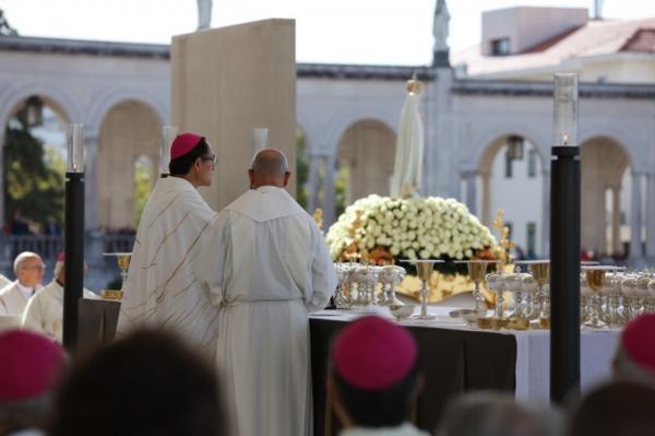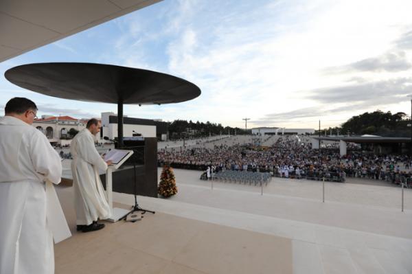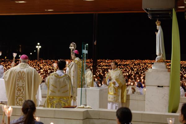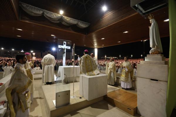 Misa, en portugués, en la Basílica de Nuestra Señora del Rosario de Fátima