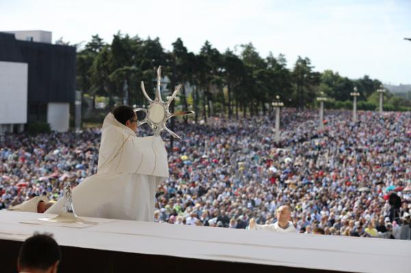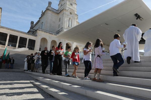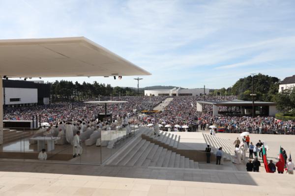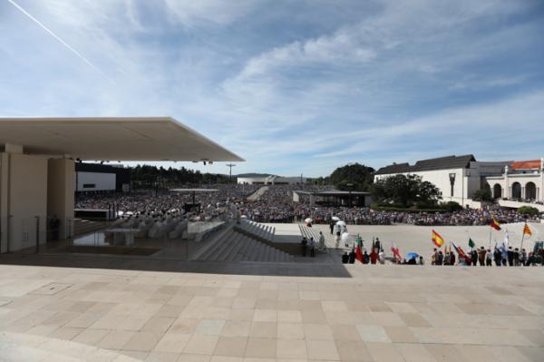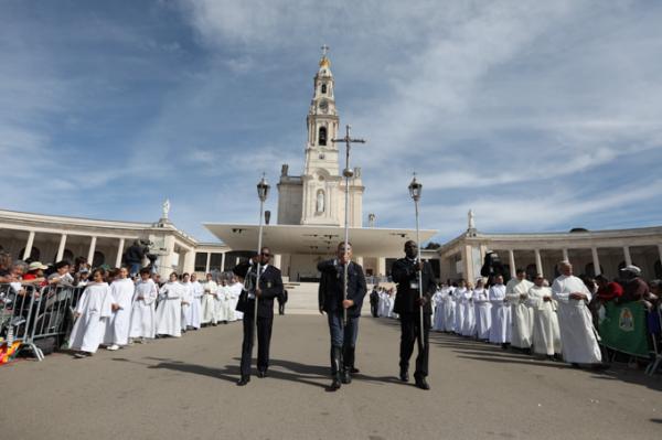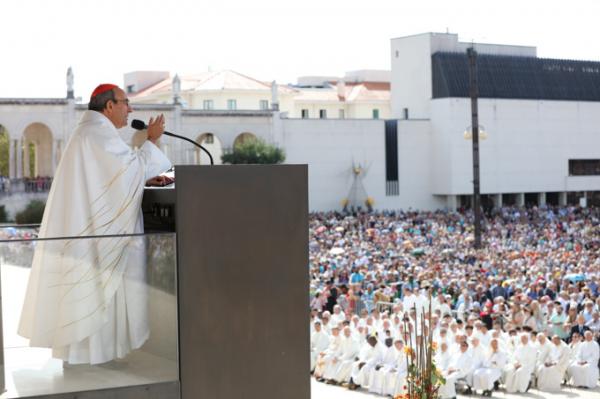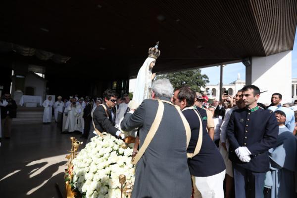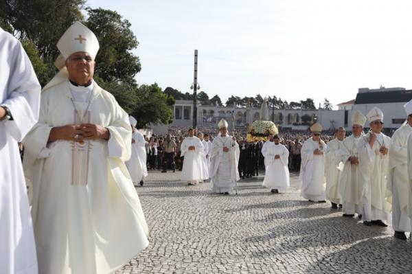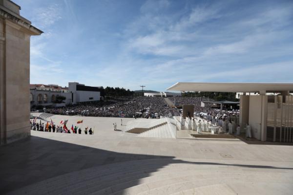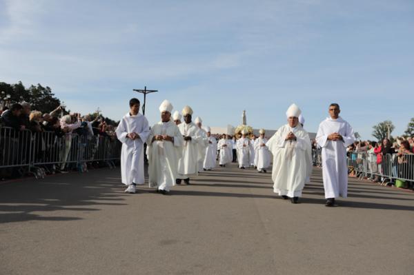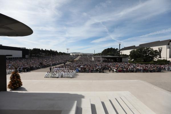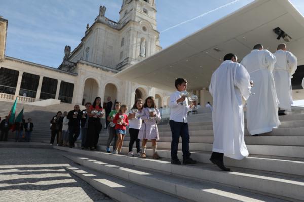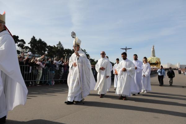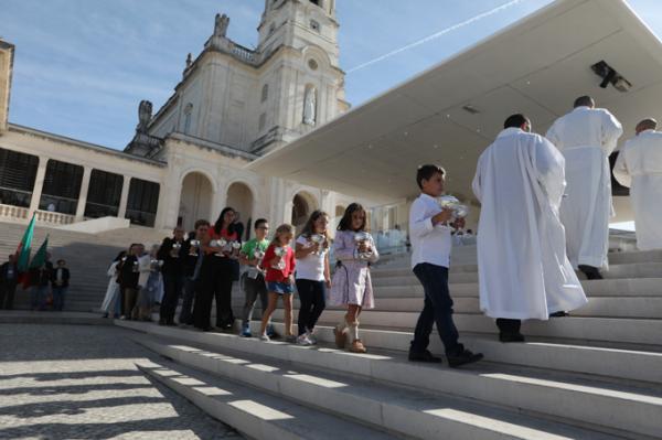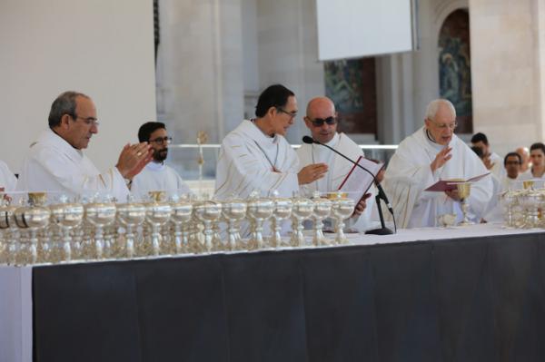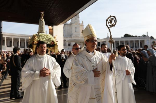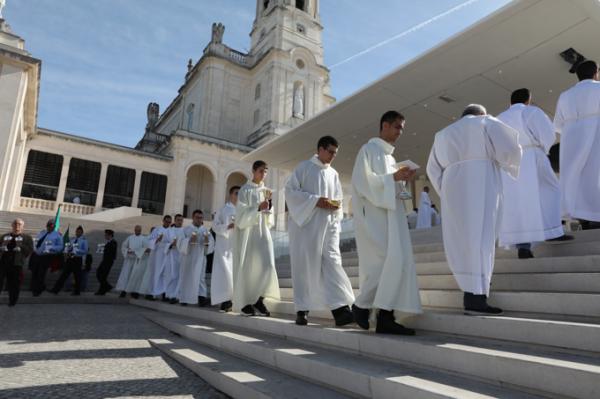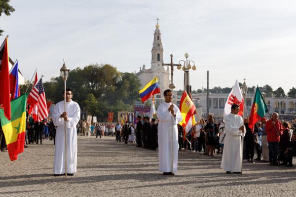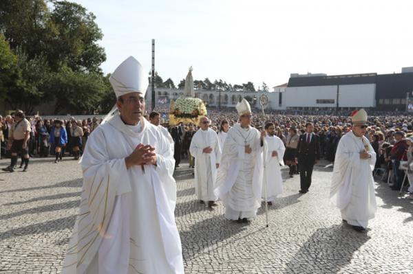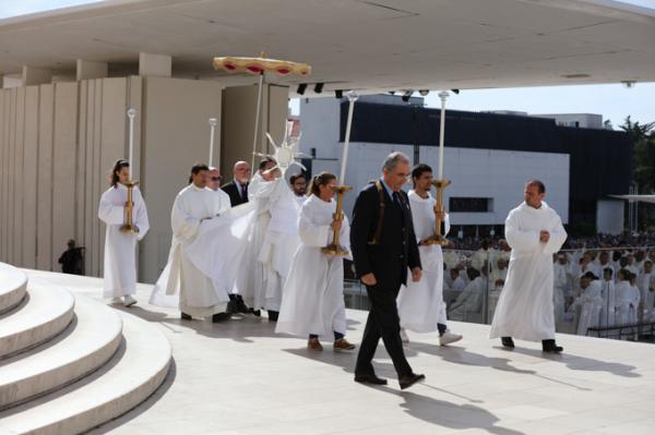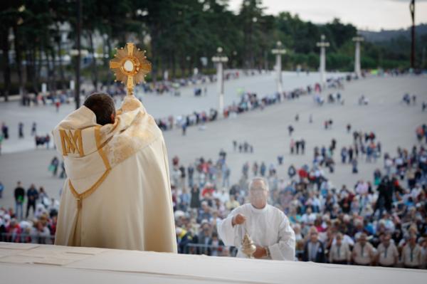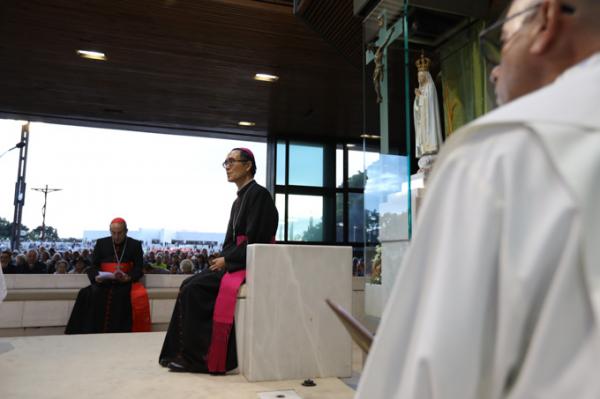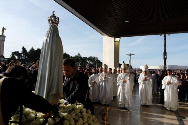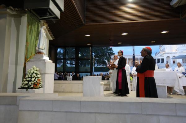 Misa, en portugués, en la Basílica de Nuestra Señora del Rosario de Fátima
