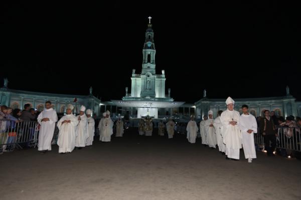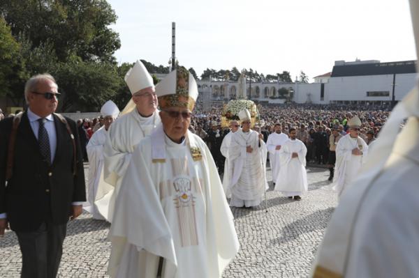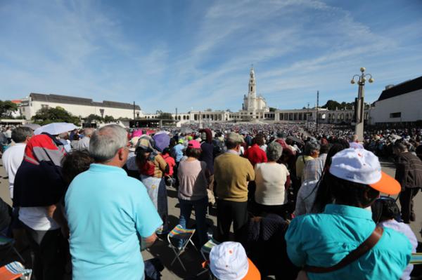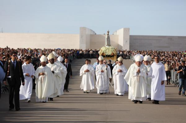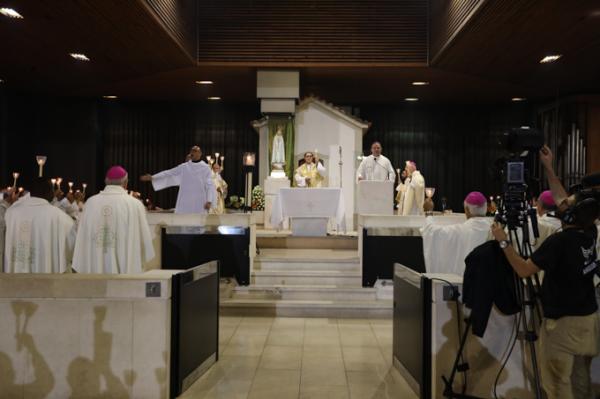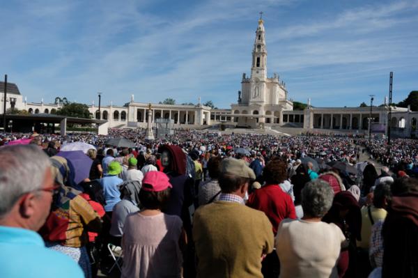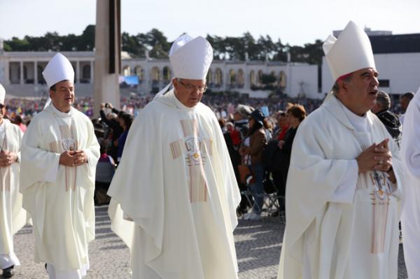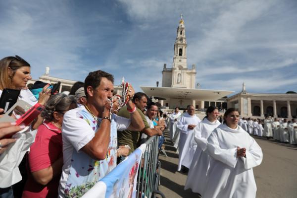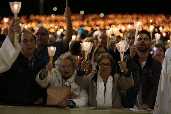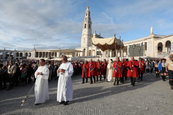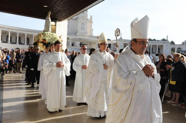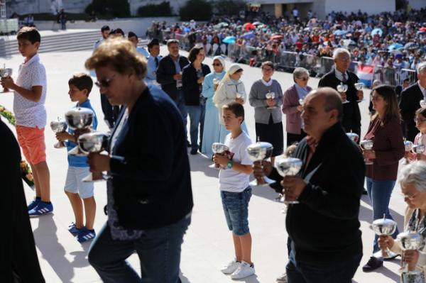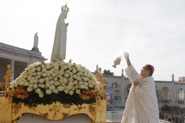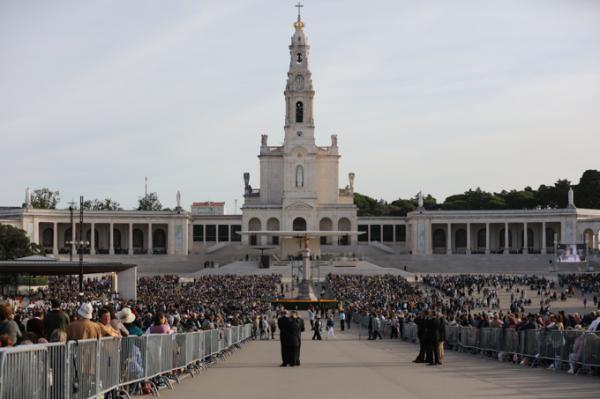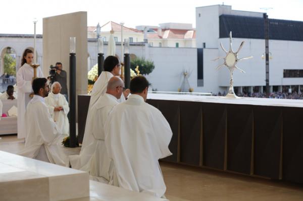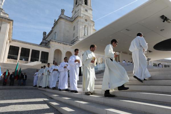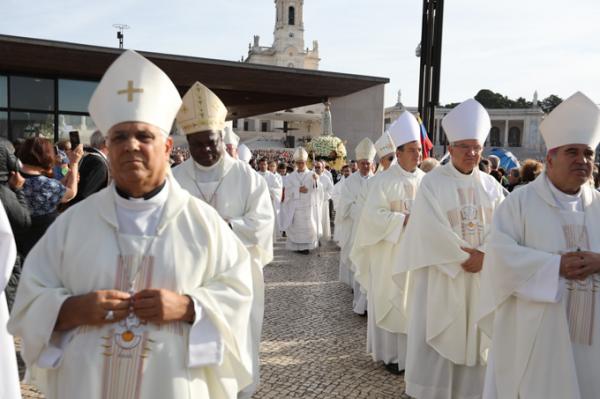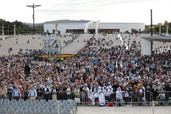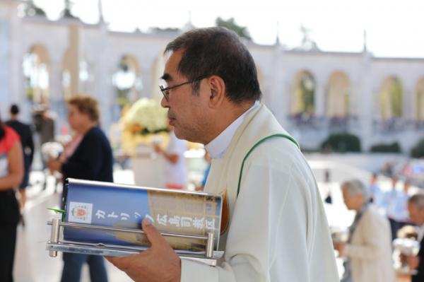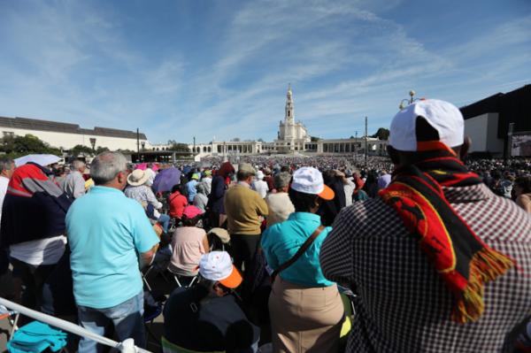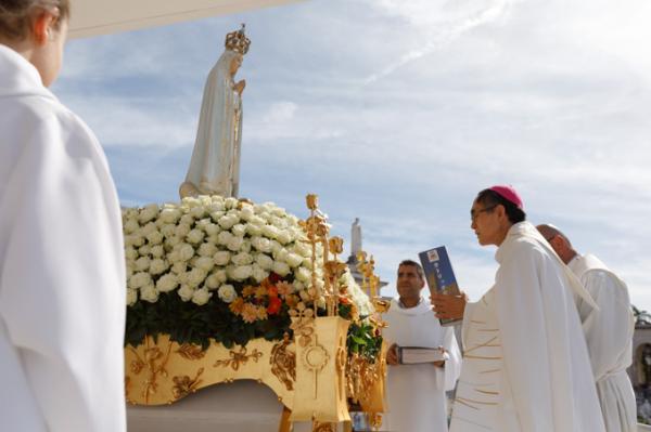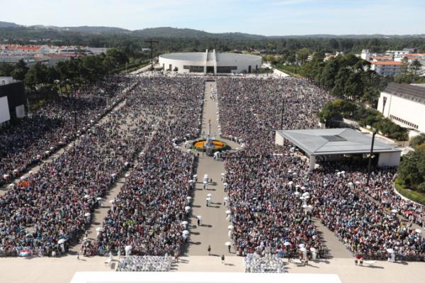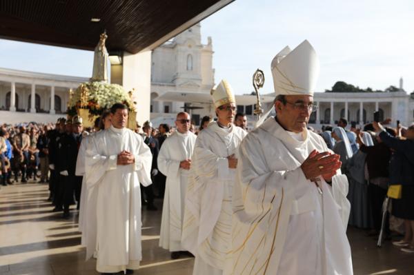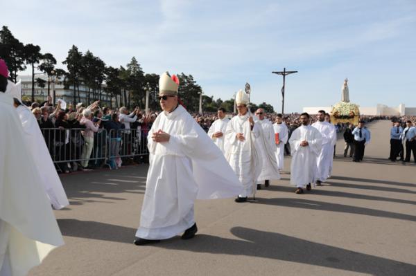Misa, en portugués, en la Basílica de Nuestra Señora del Rosario de Fátima