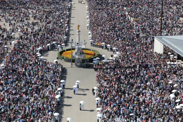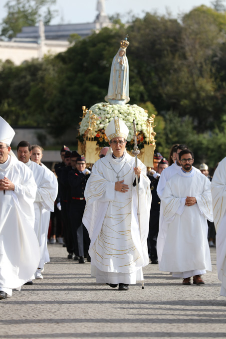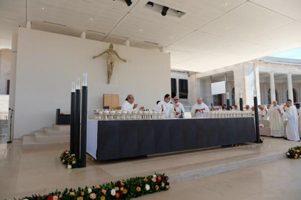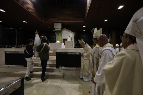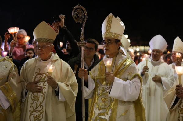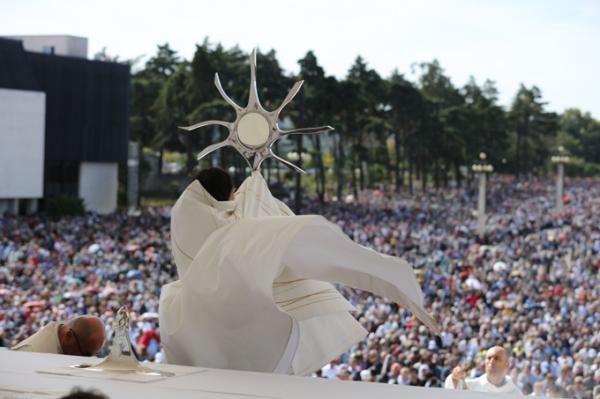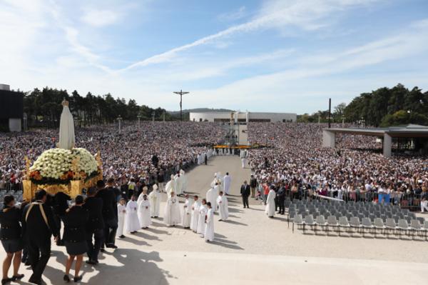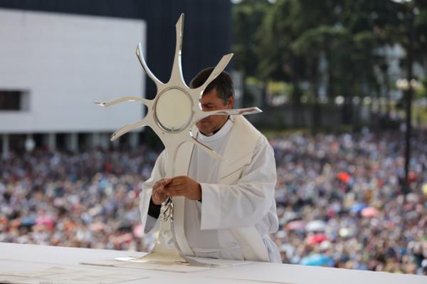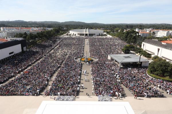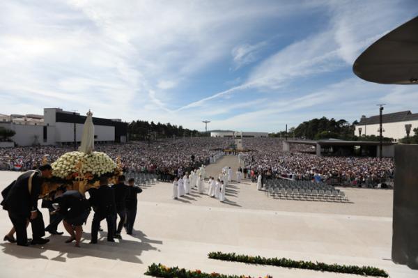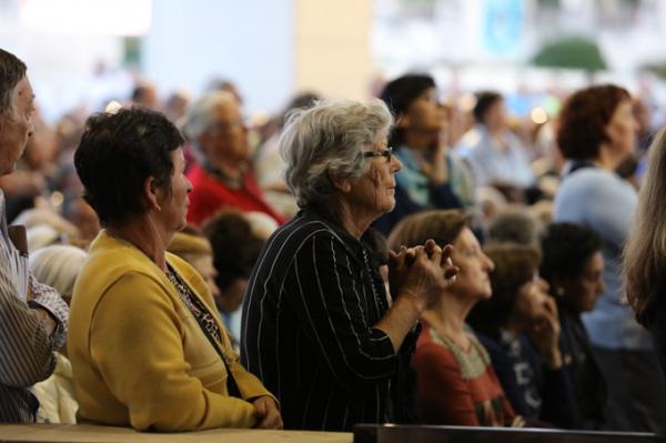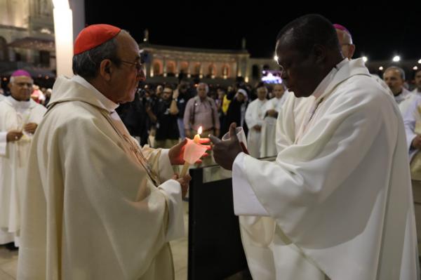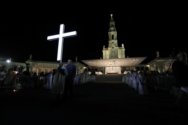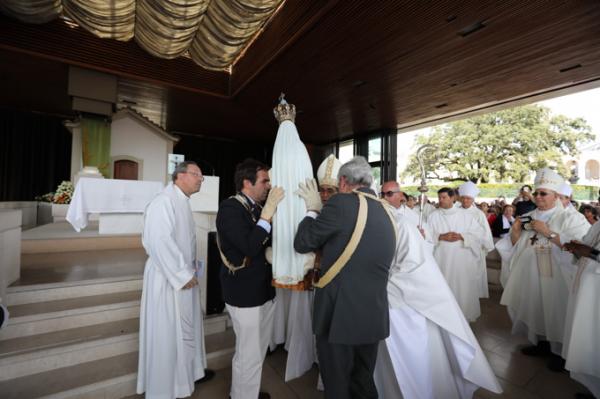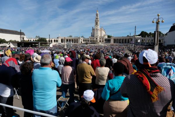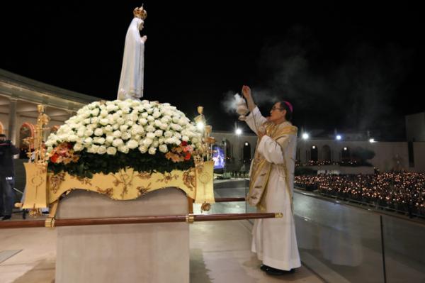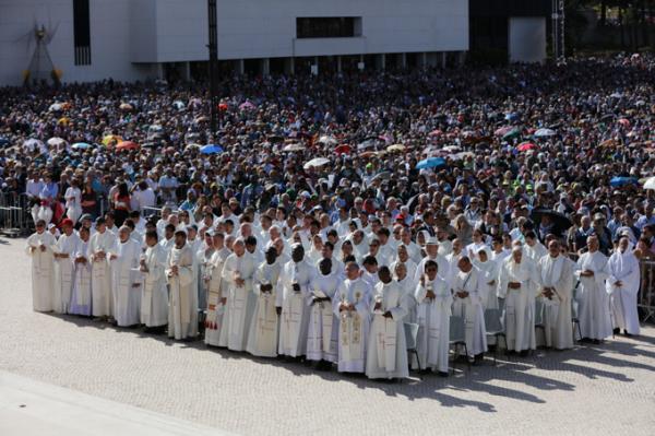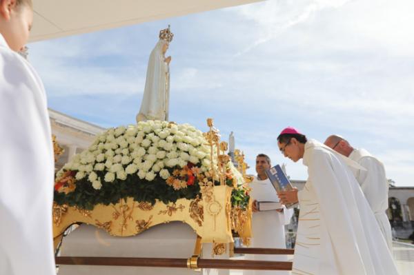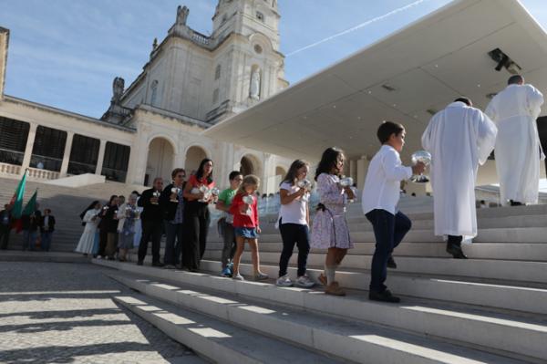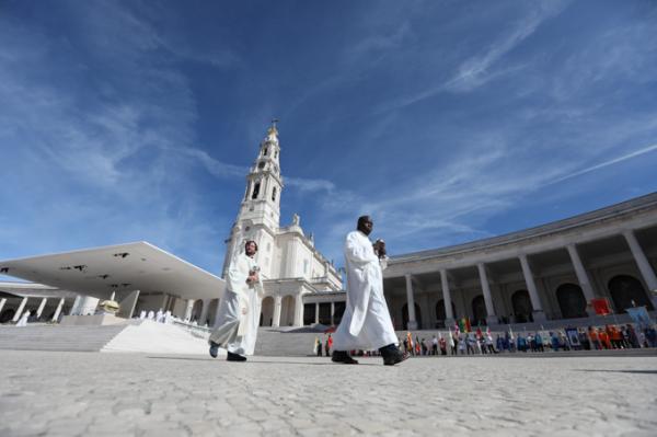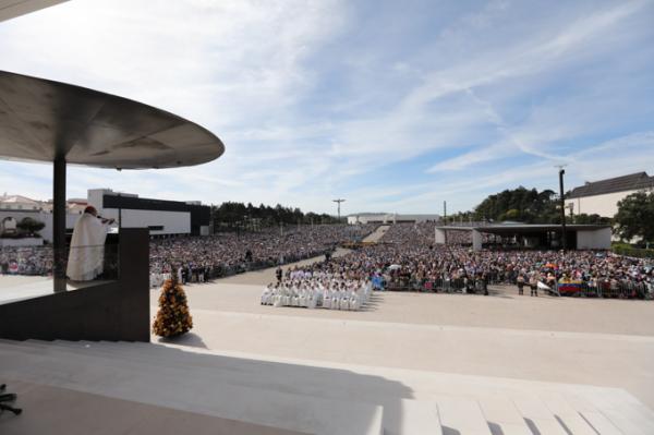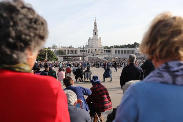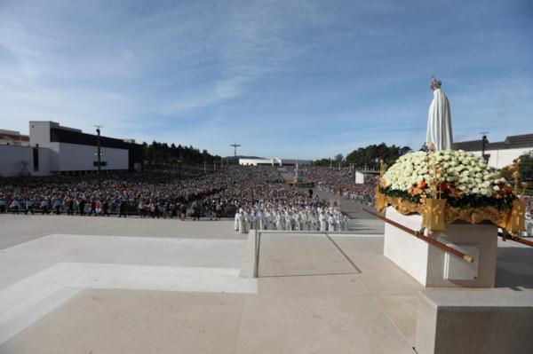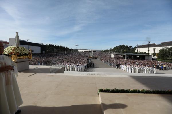 Misa, en portugués, en la Basílica de Nuestra Señora del Rosario de Fátima