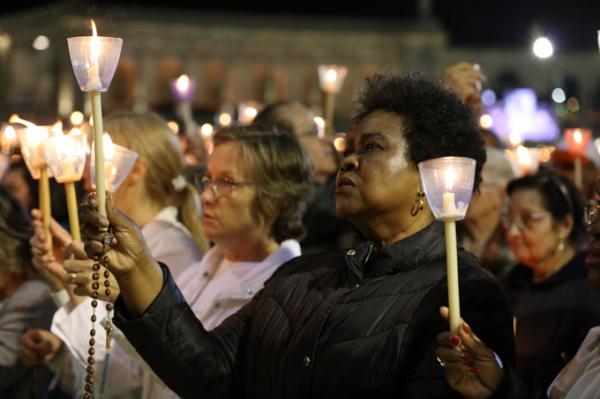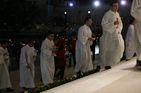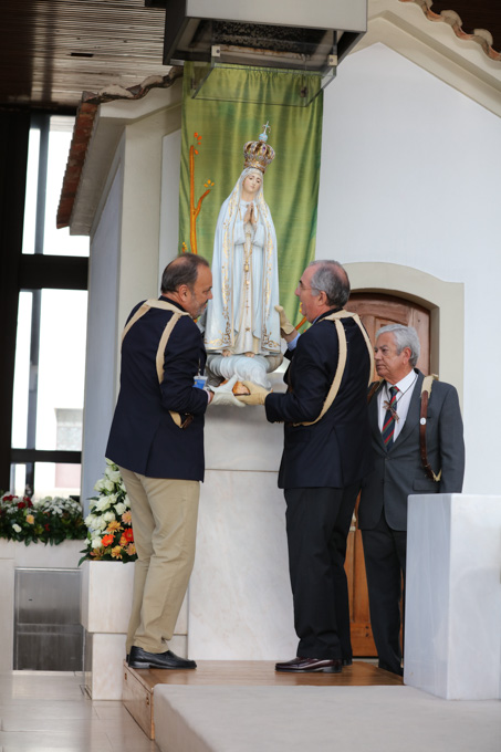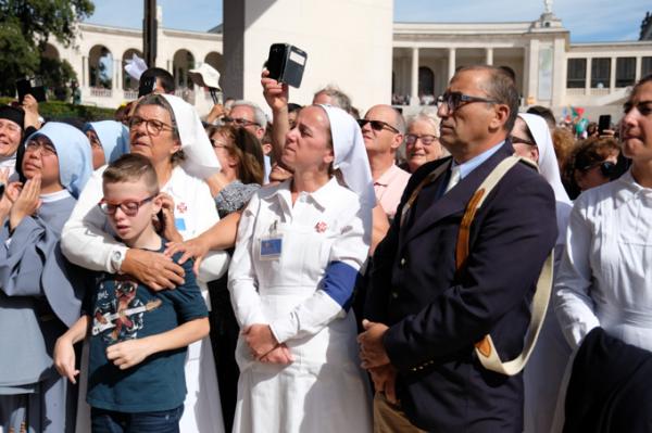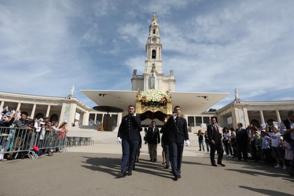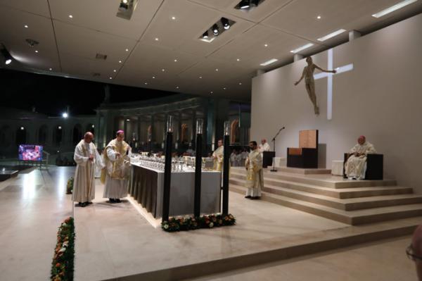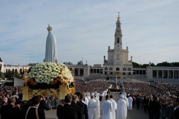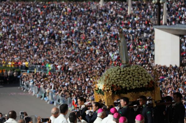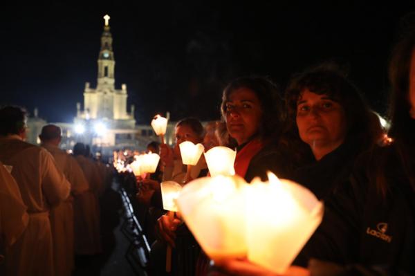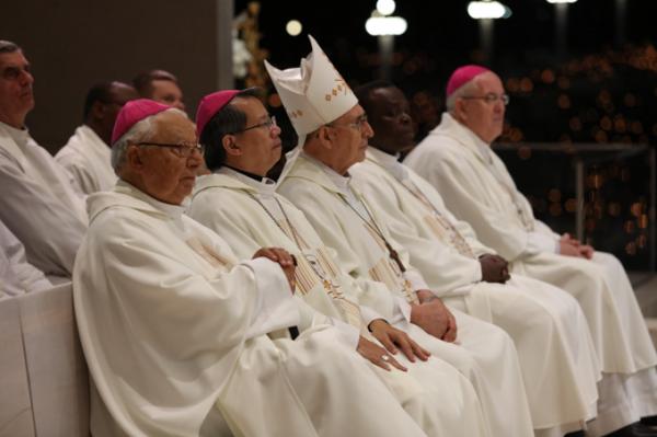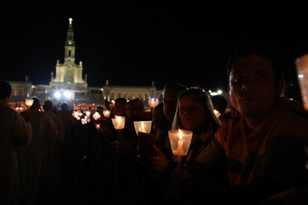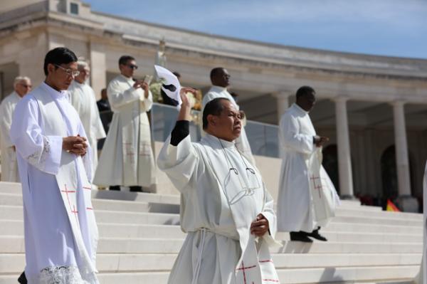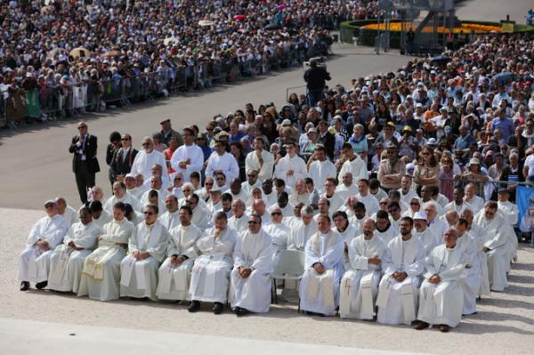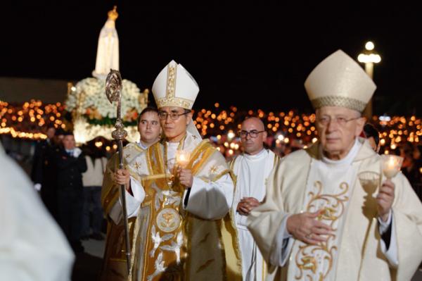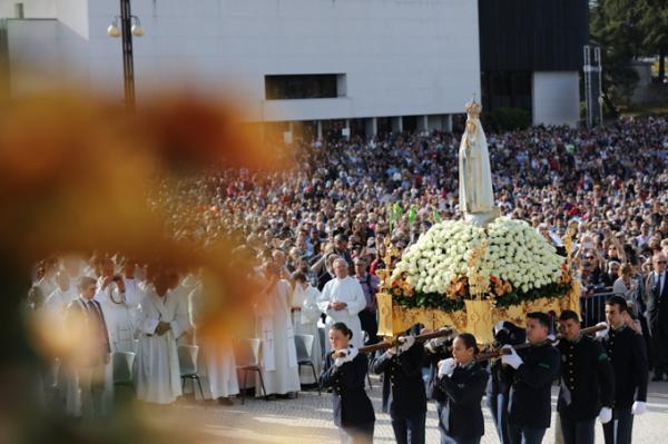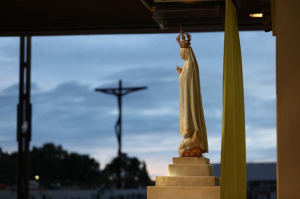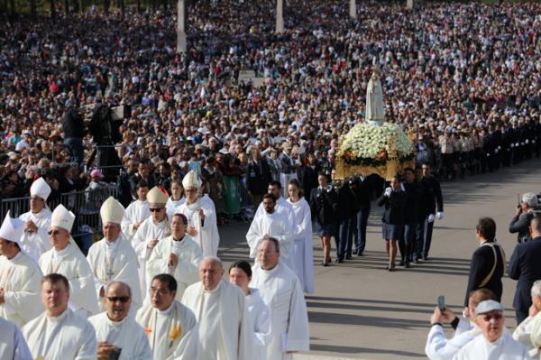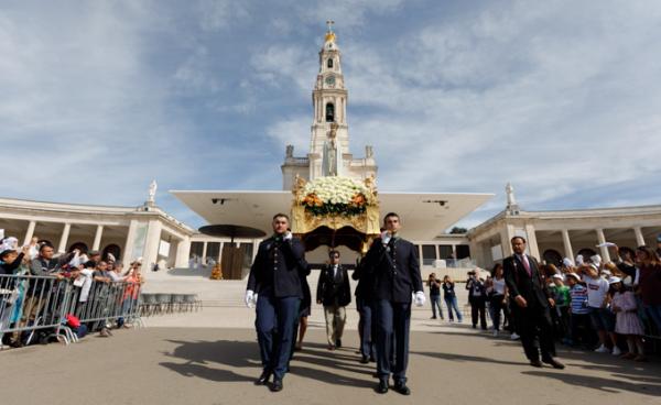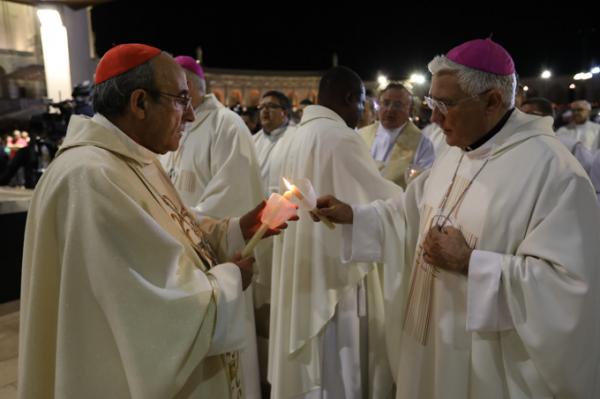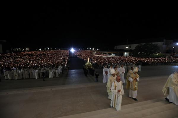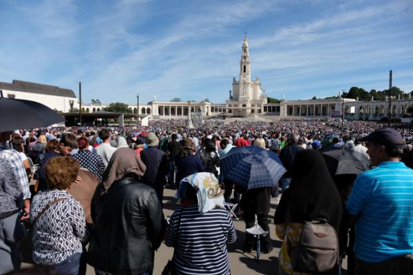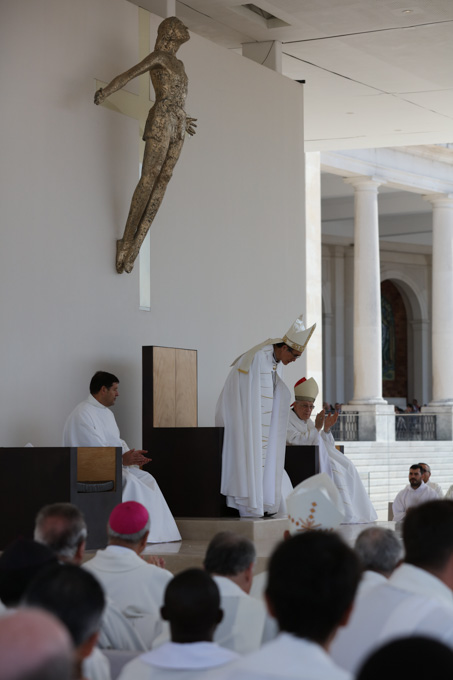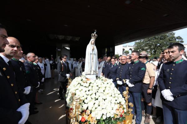 Misa, en portugués, en la Basílica de Nuestra Señora del Rosario de Fátima