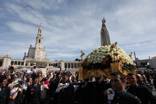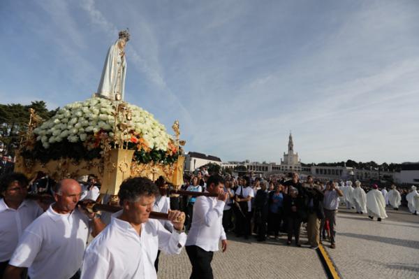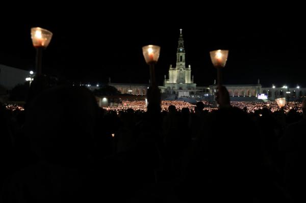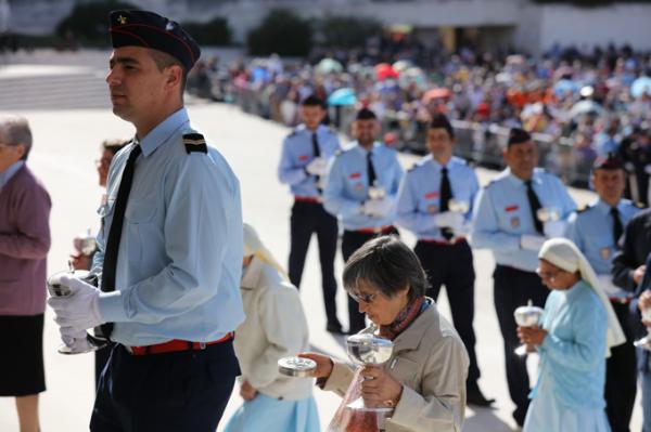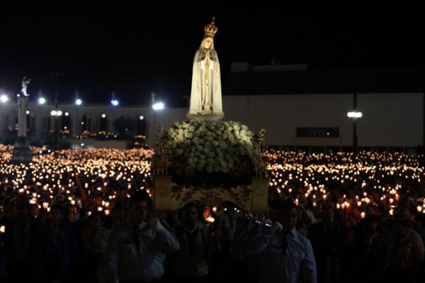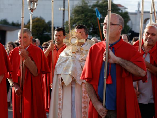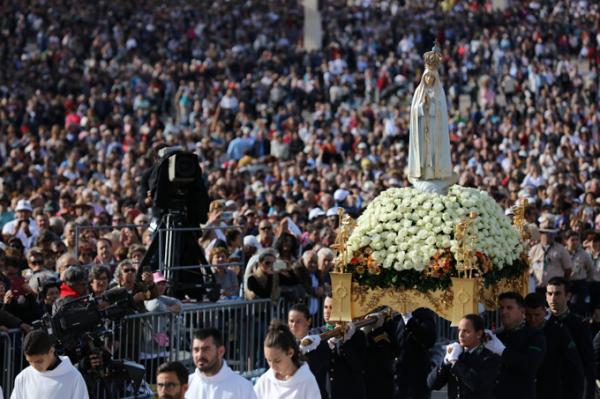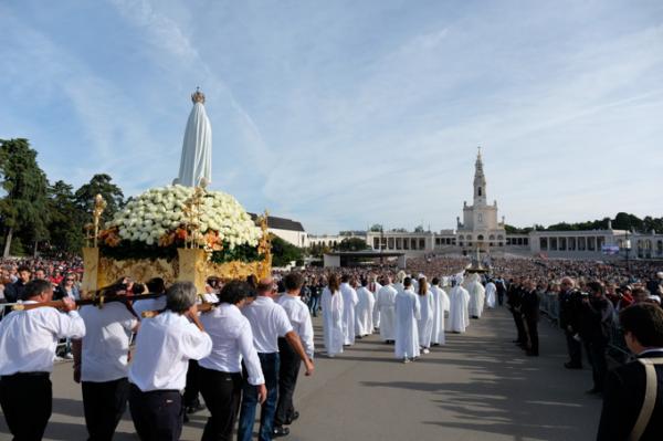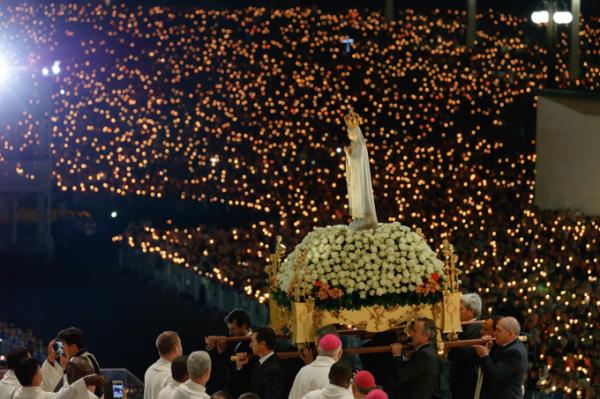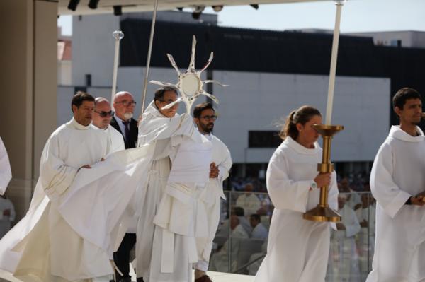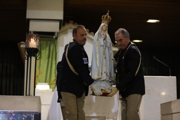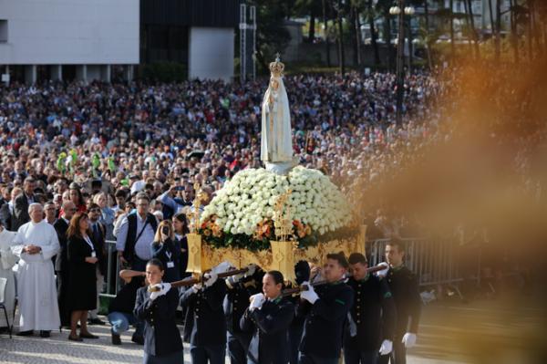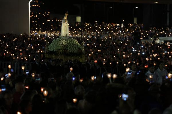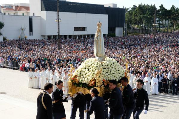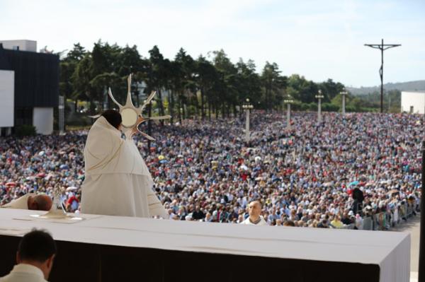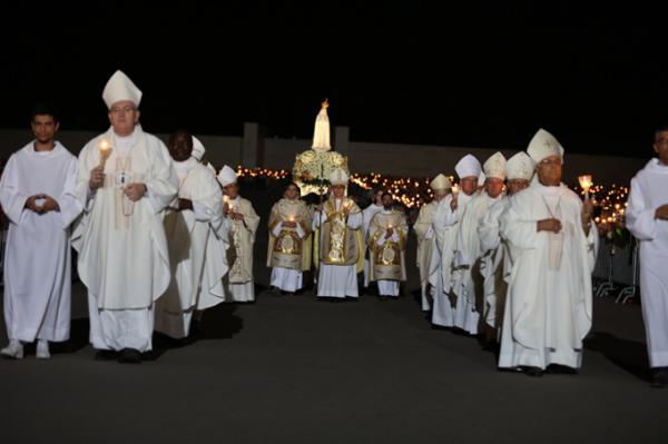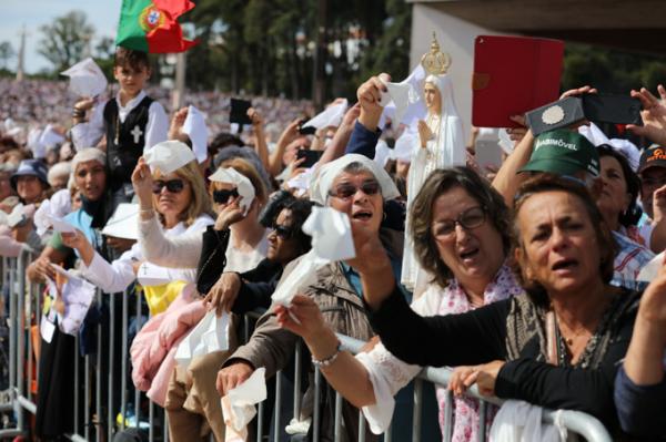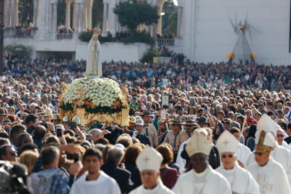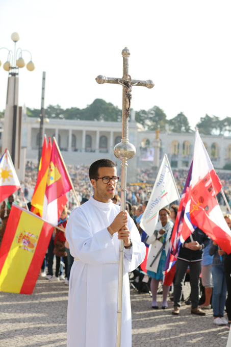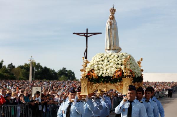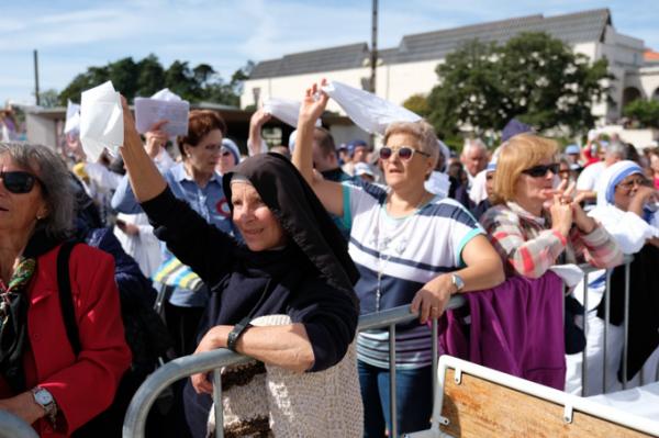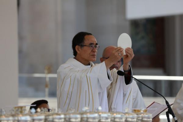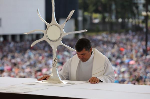 Misa, en portugués, en la Basílica de Nuestra Señora del Rosario de Fátima
