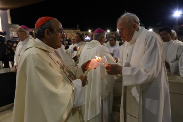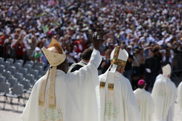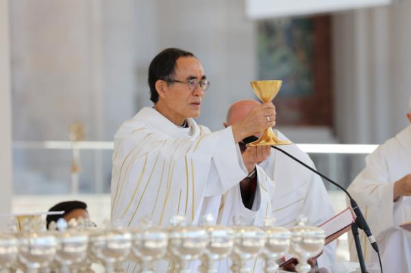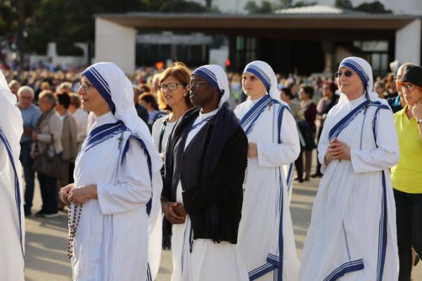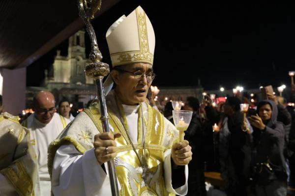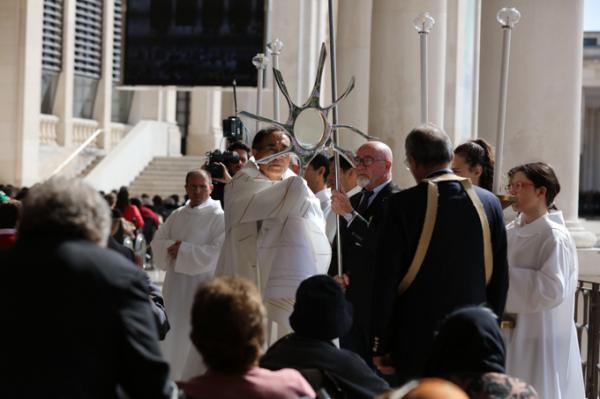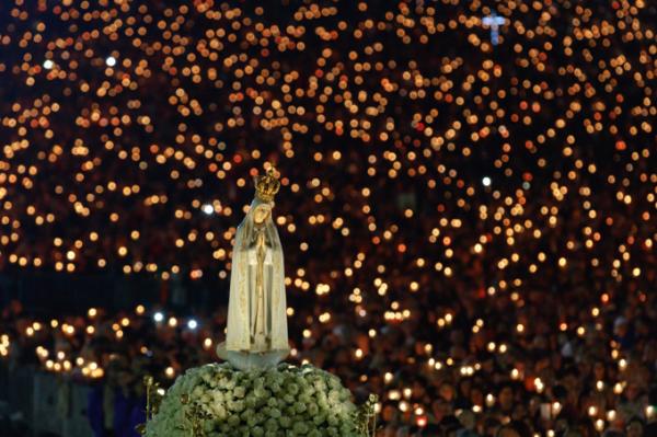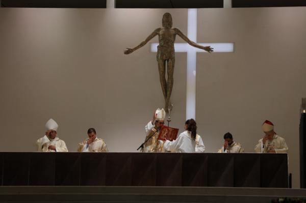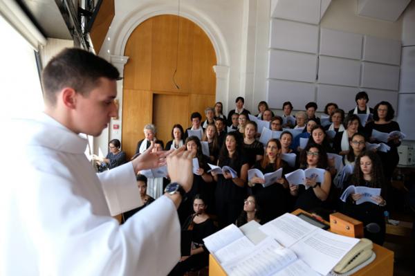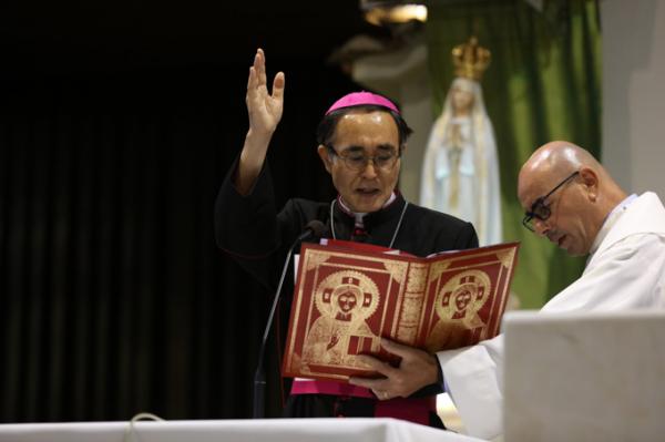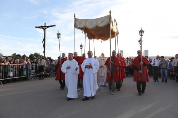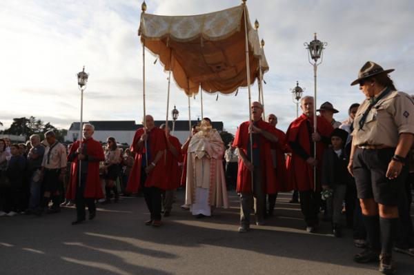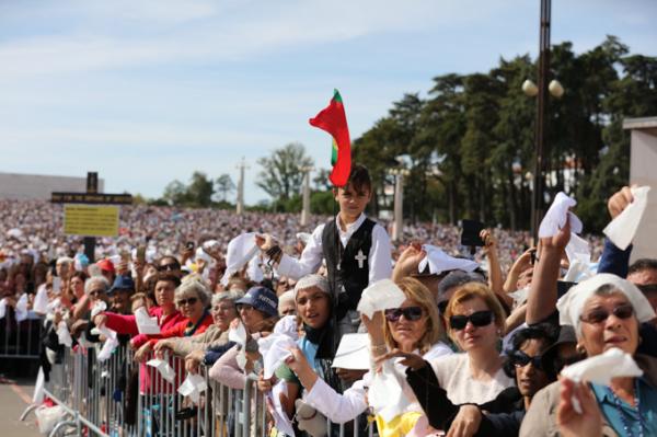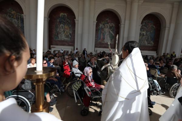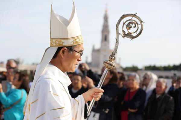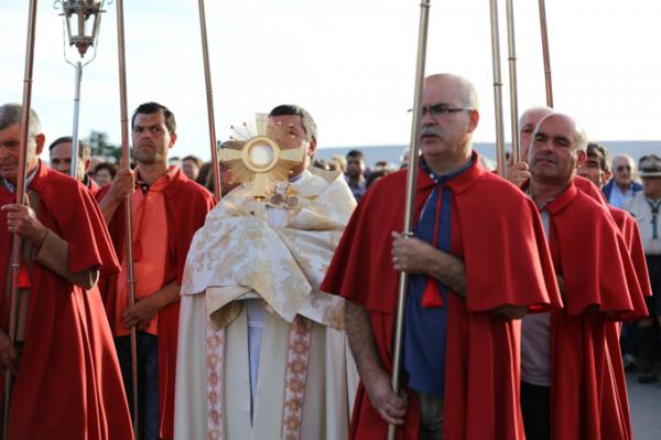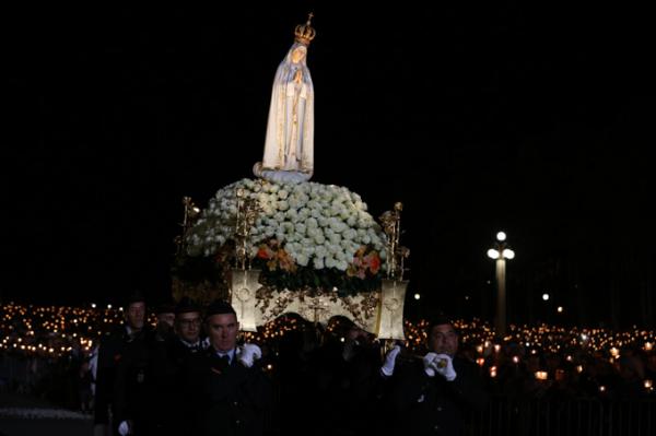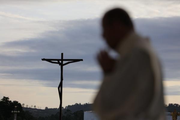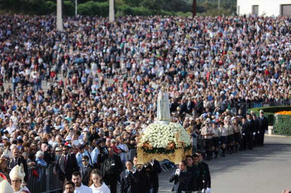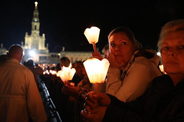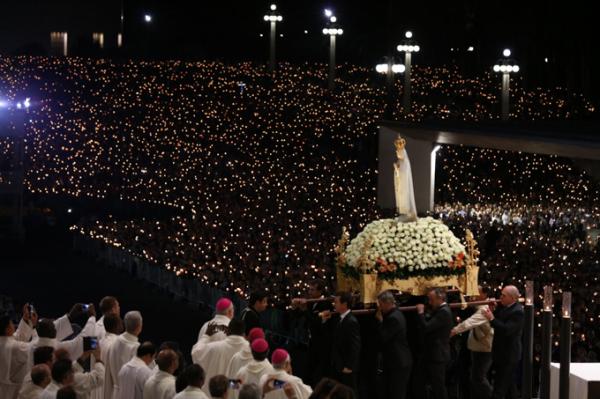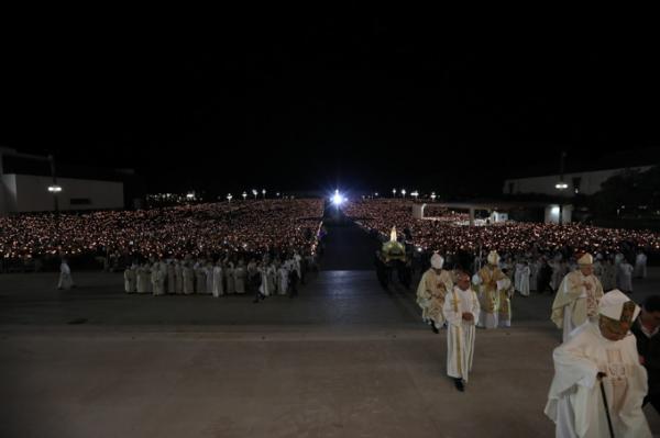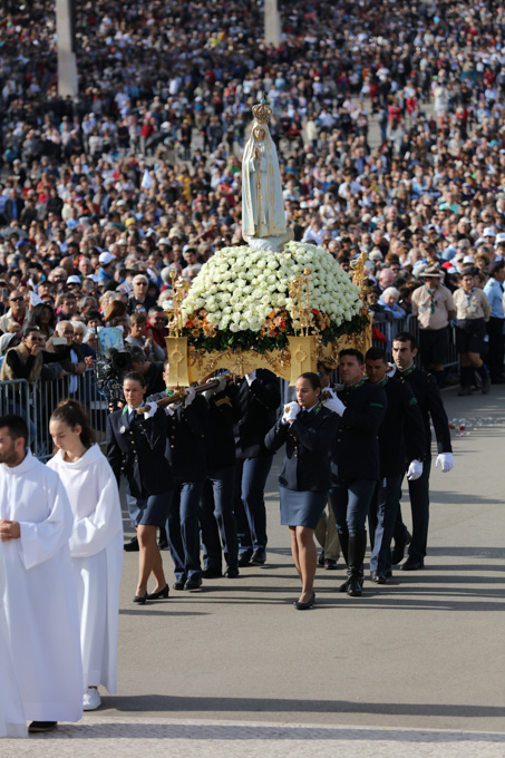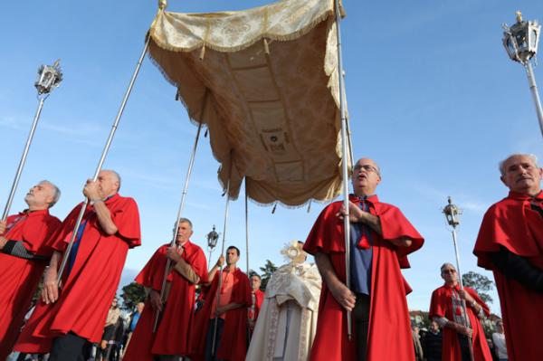 Misa, en portugués, en la Basílica de Nuestra Señora del Rosario de Fátima