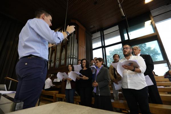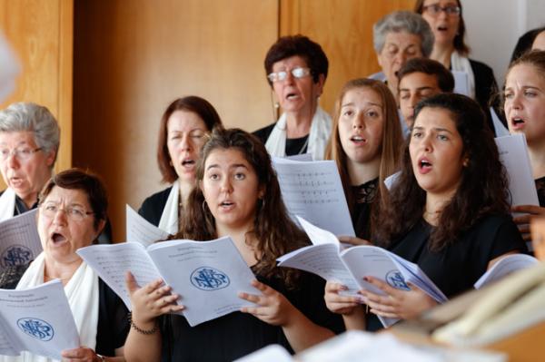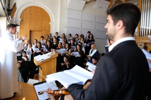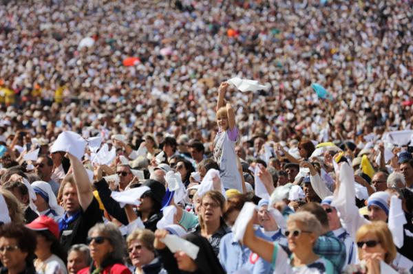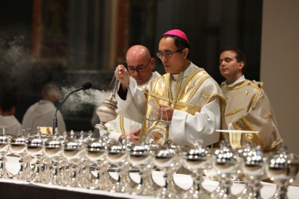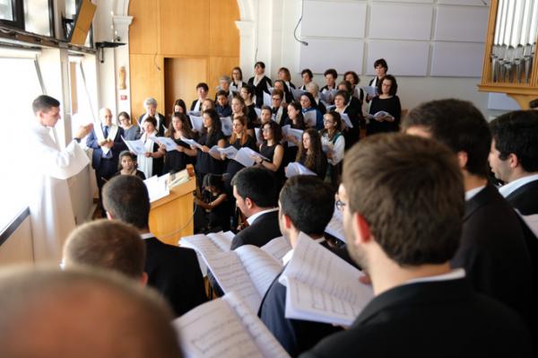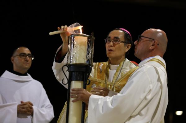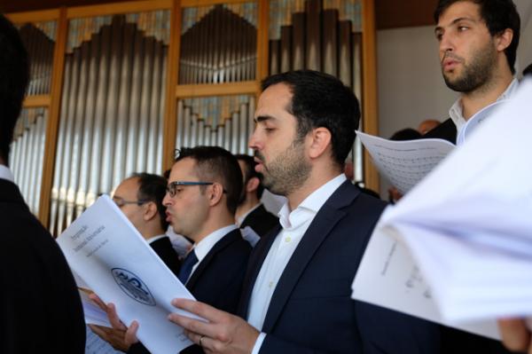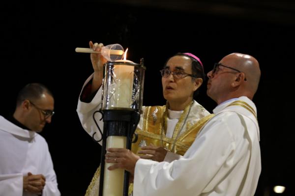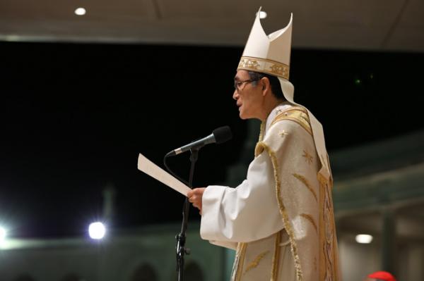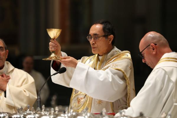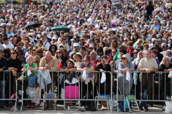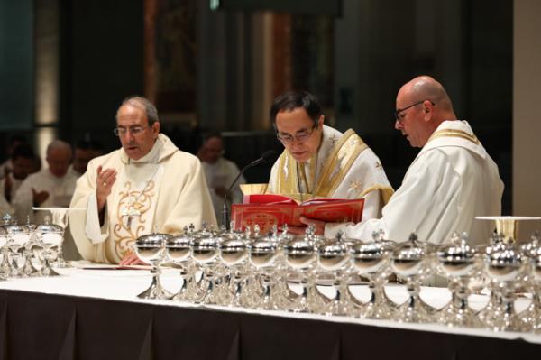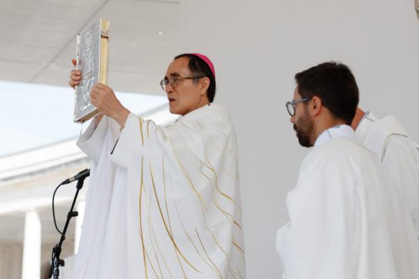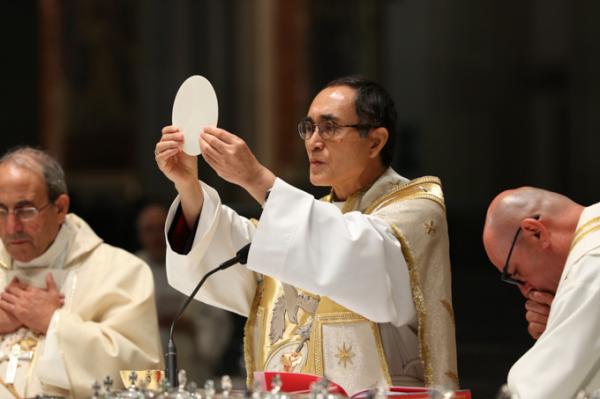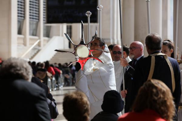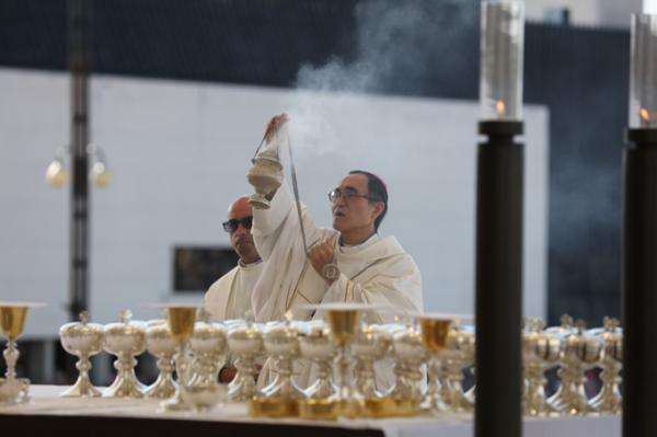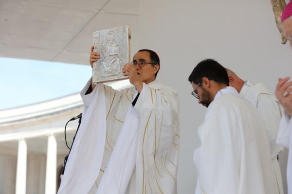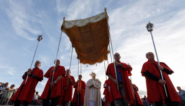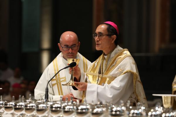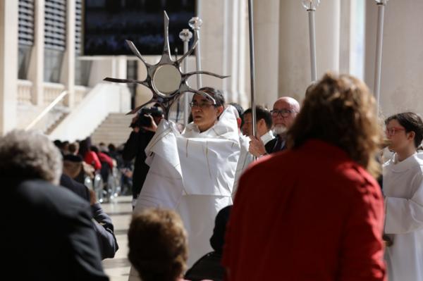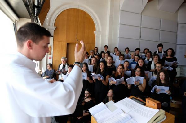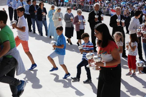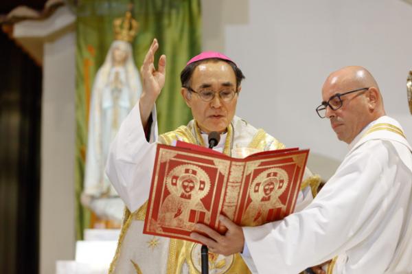 Misa, en portugués, en la Basílica de Nuestra Señora del Rosario de Fátima