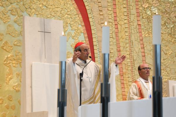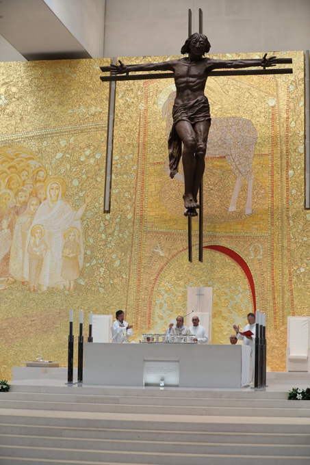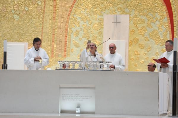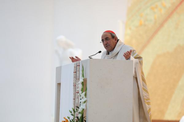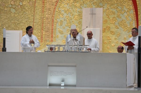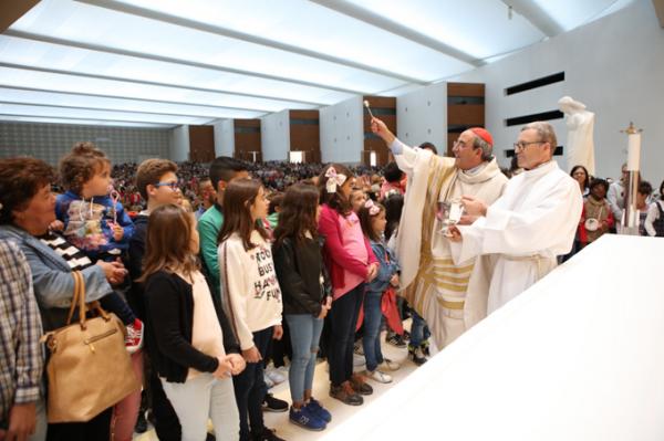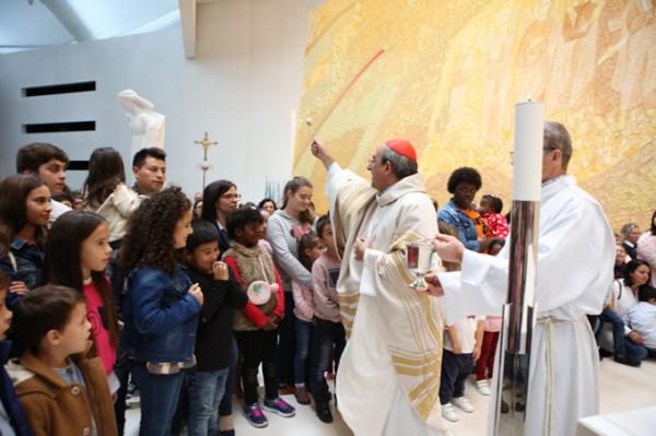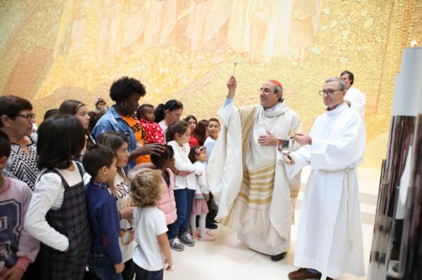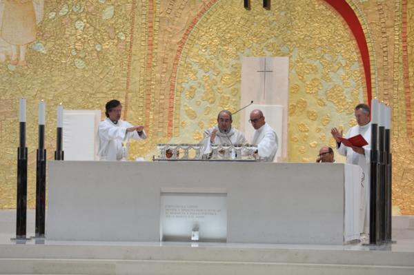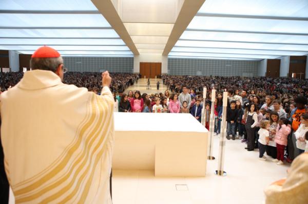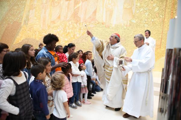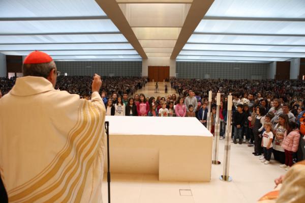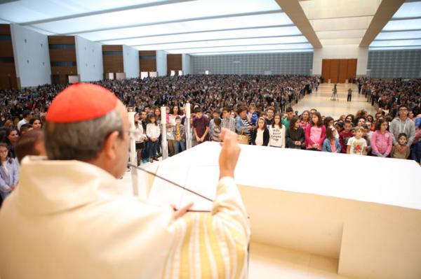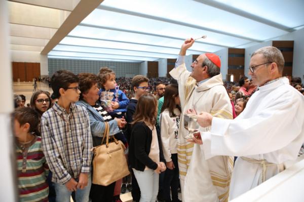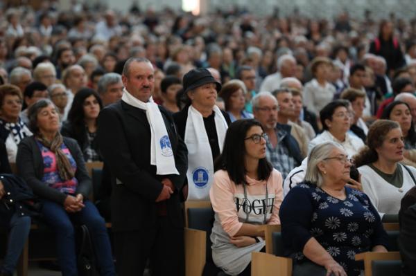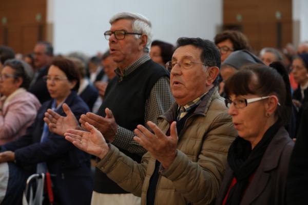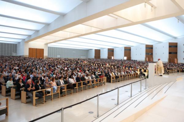 Misa, en portugués, en la Basílica de Nuestra Señora del Rosario de Fátima