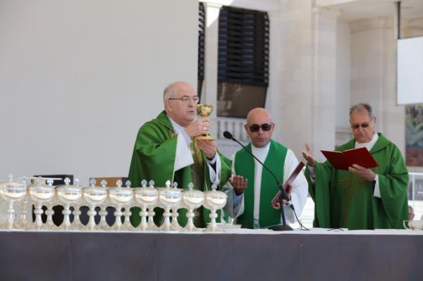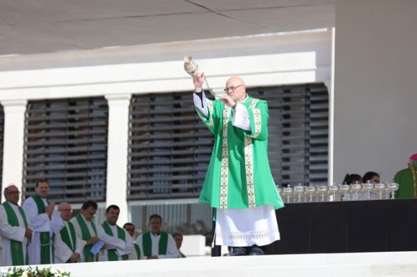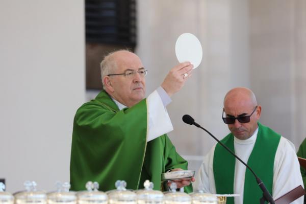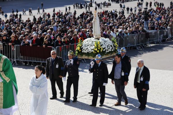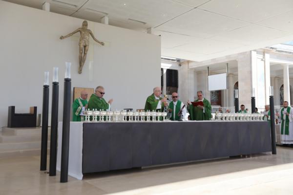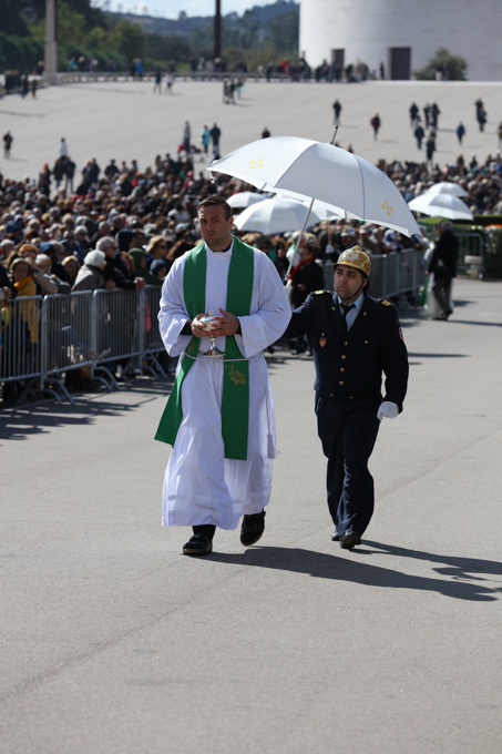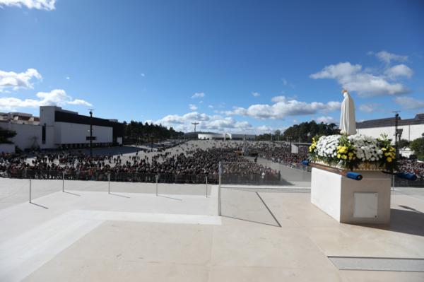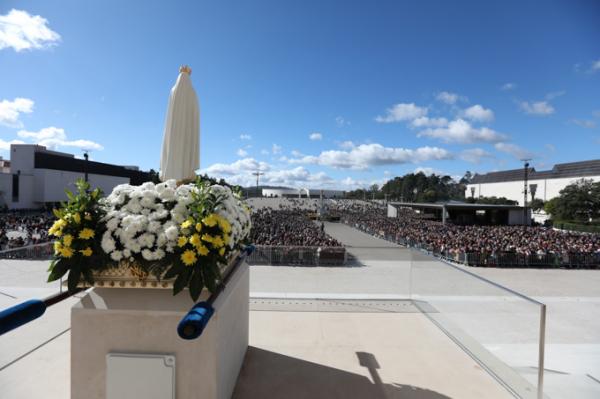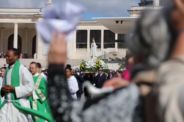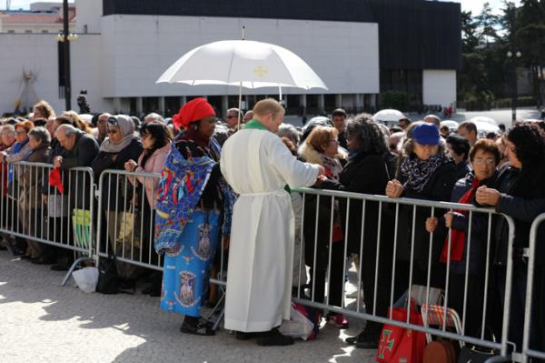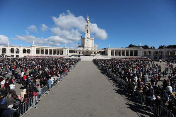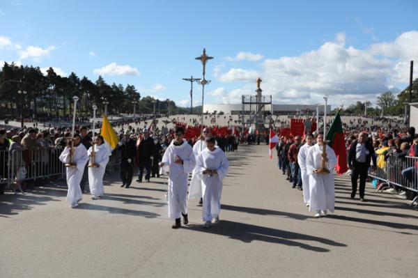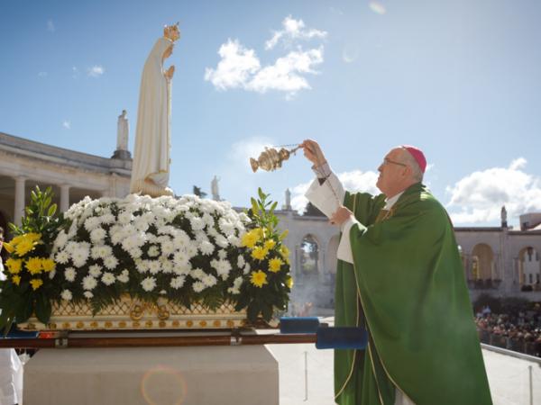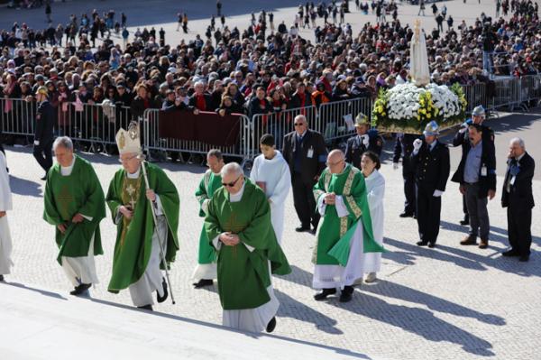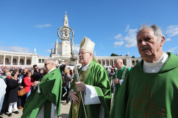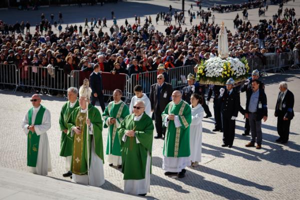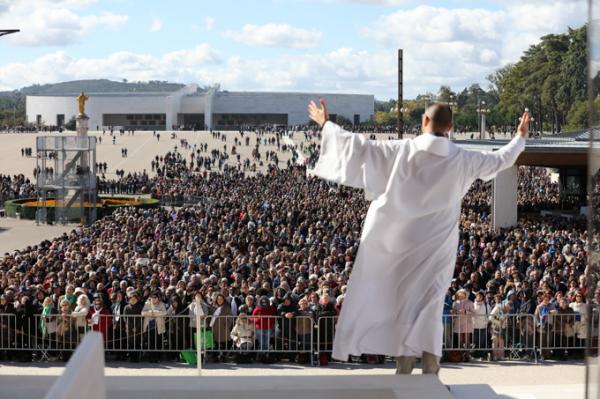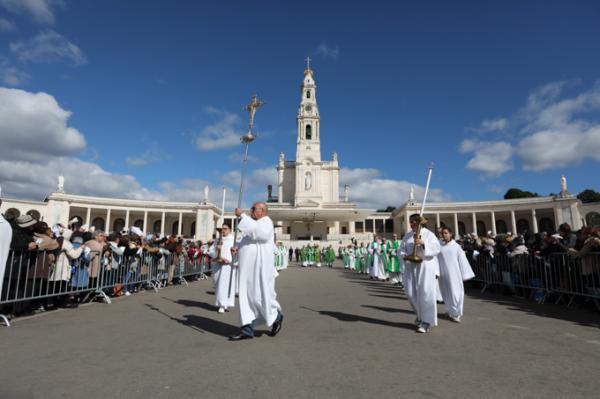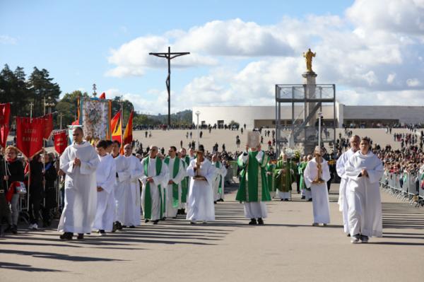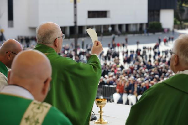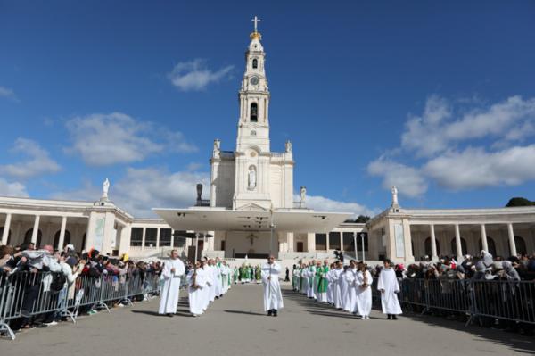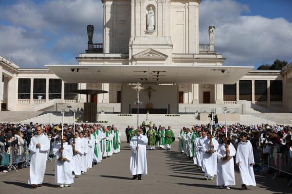 Misa, en portugués, en la Basílica de Nuestra Señora del Rosario de Fátima