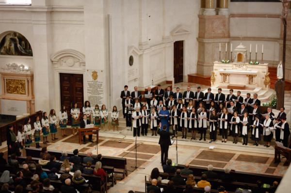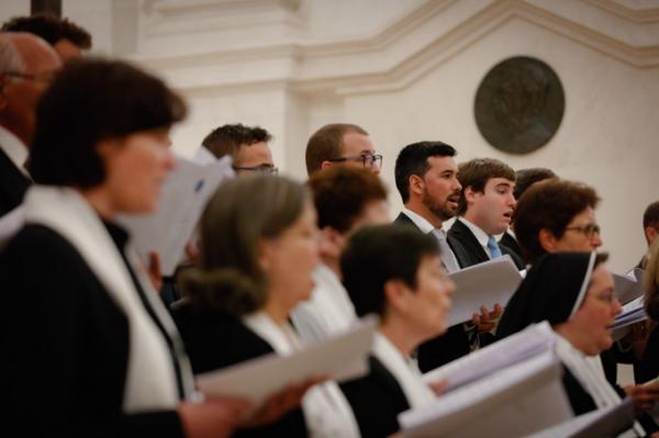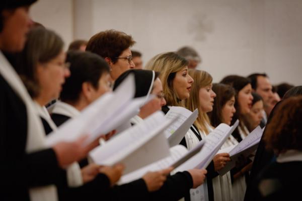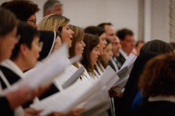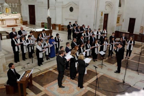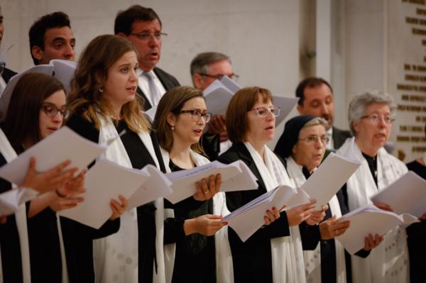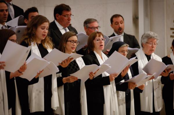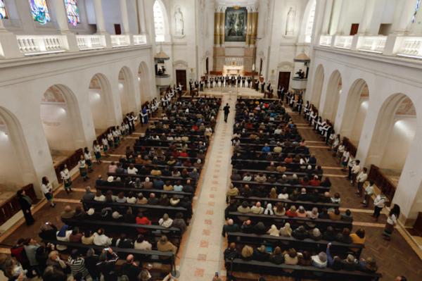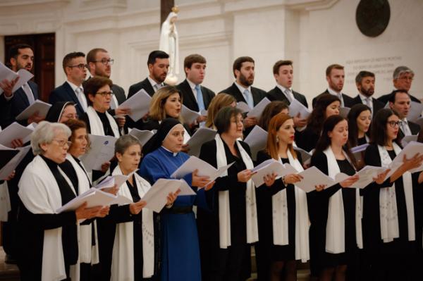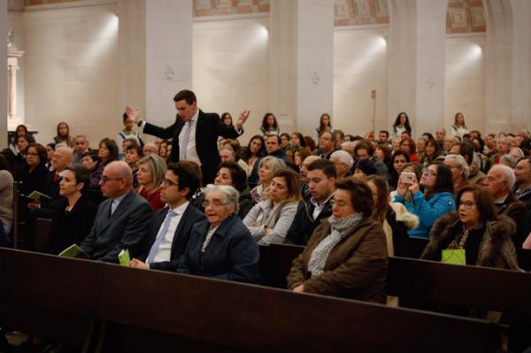 Misa, en portugués, en la Basílica de Nuestra Señora del Rosario de Fátima