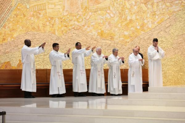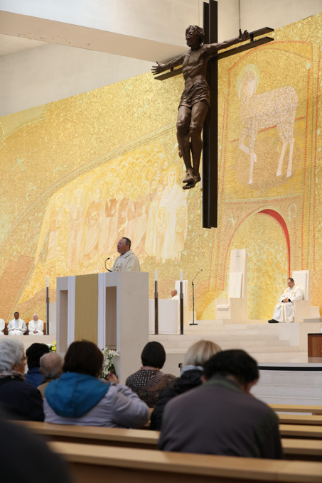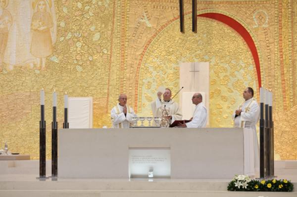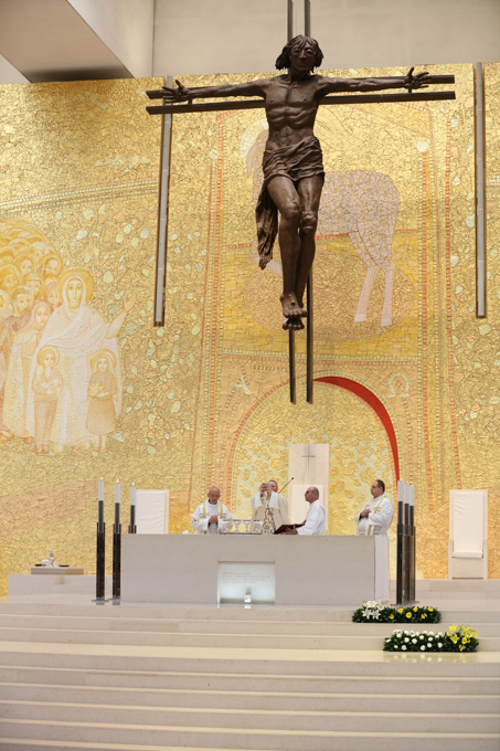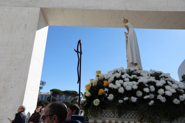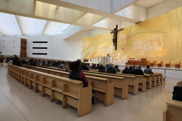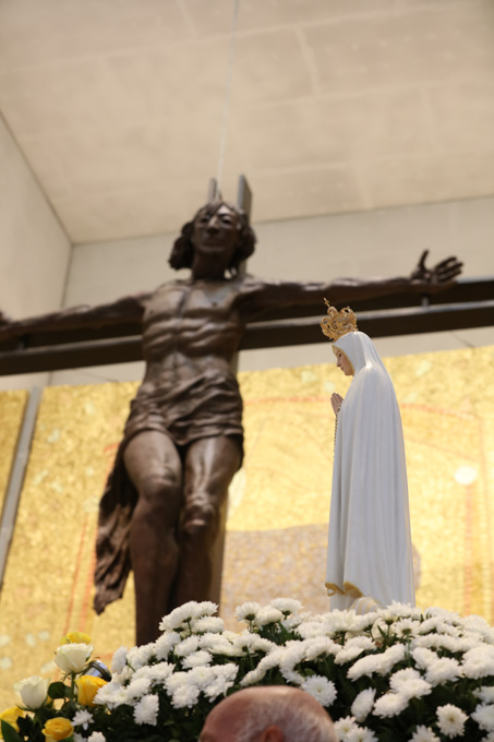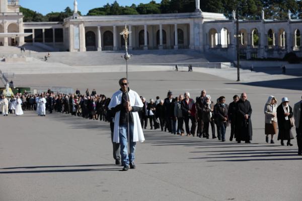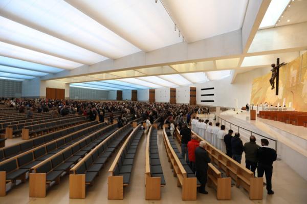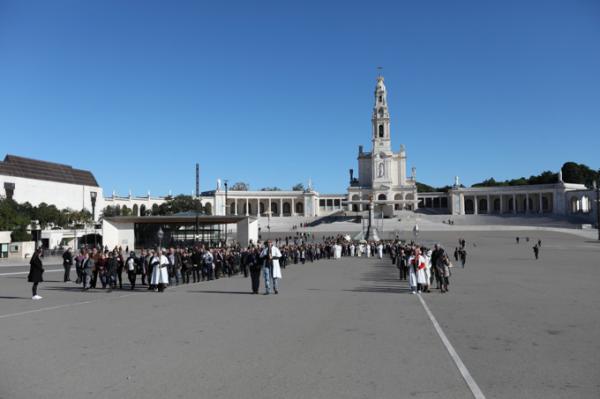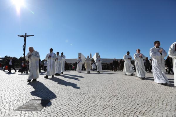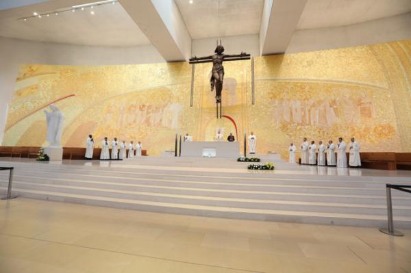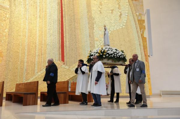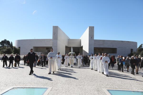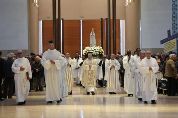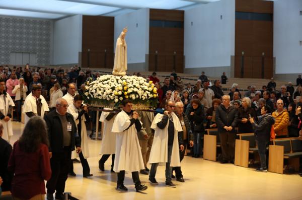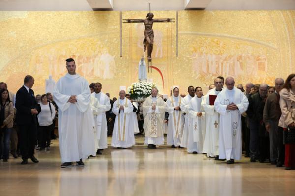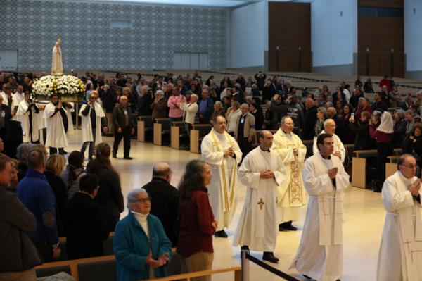 Misa, en portugués, en la Basílica de Nuestra Señora del Rosario de Fátima