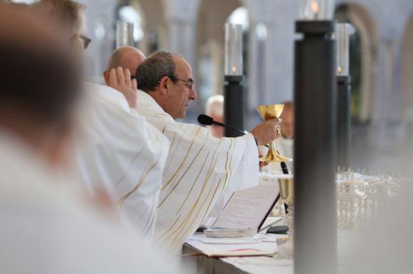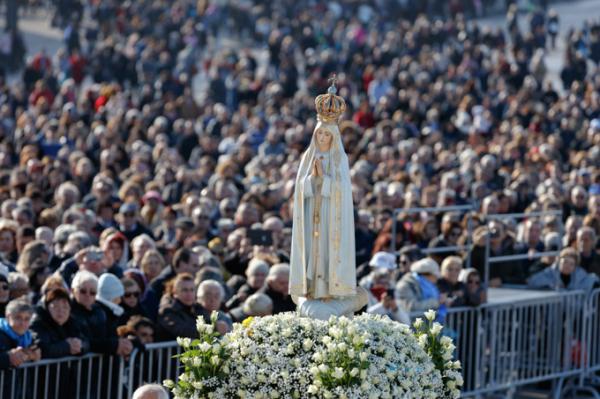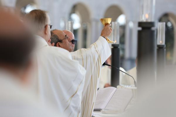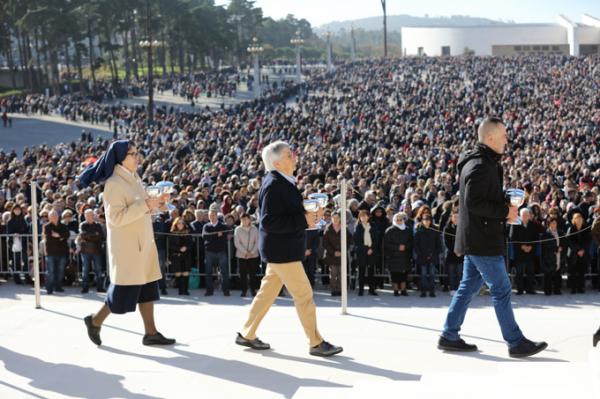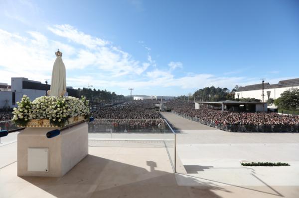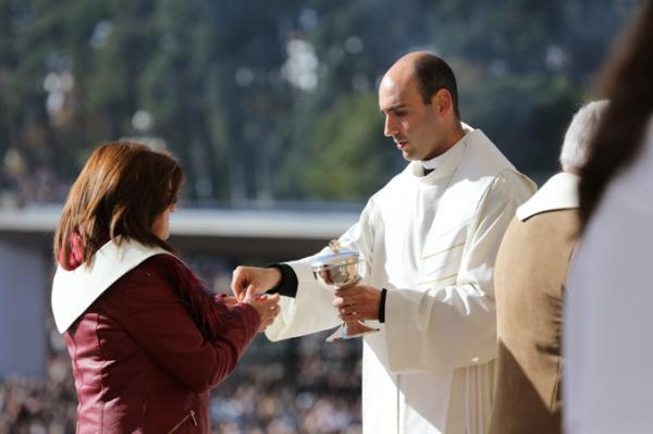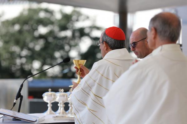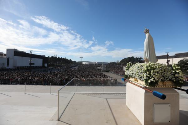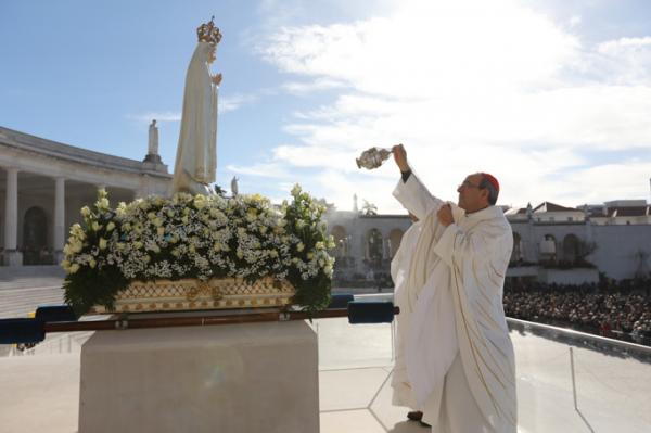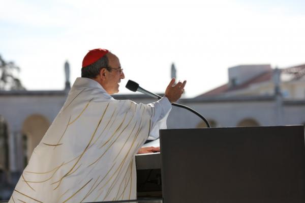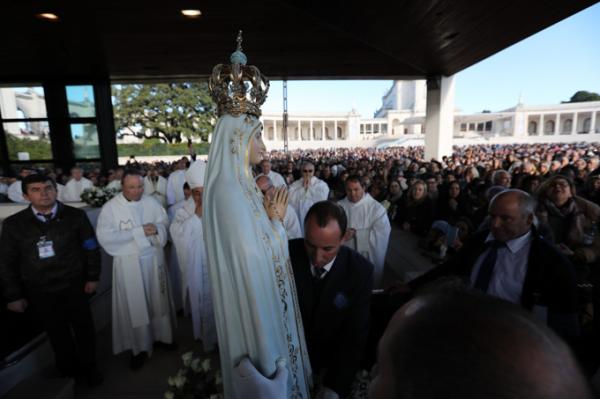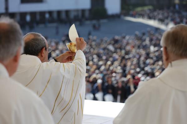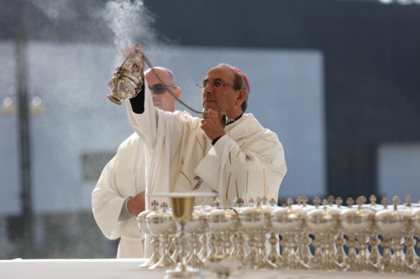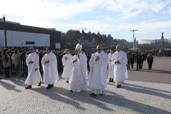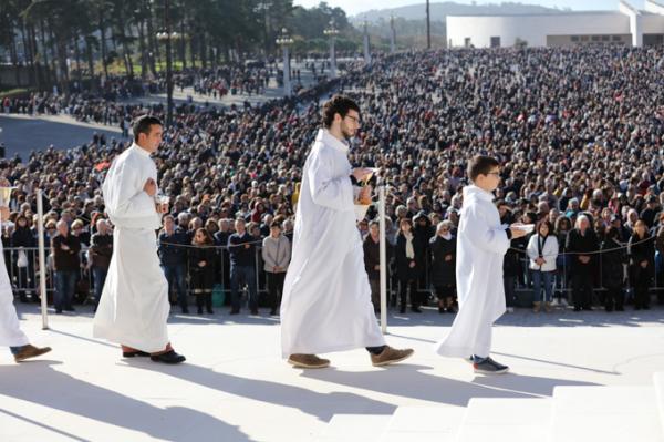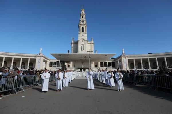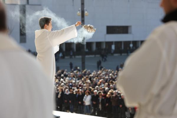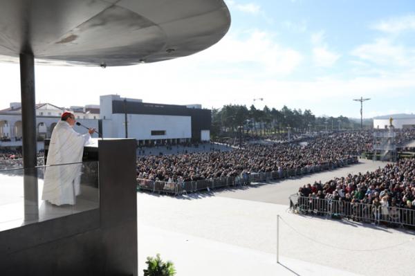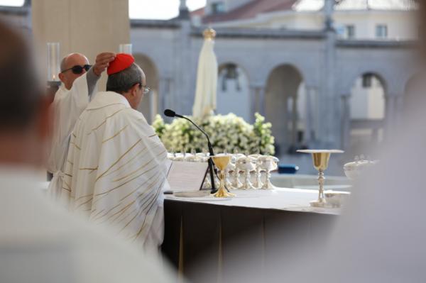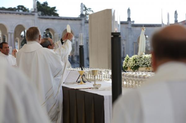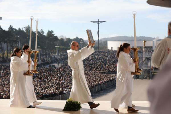 Misa, en portugués, en la Basílica de Nuestra Señora del Rosario de Fátima