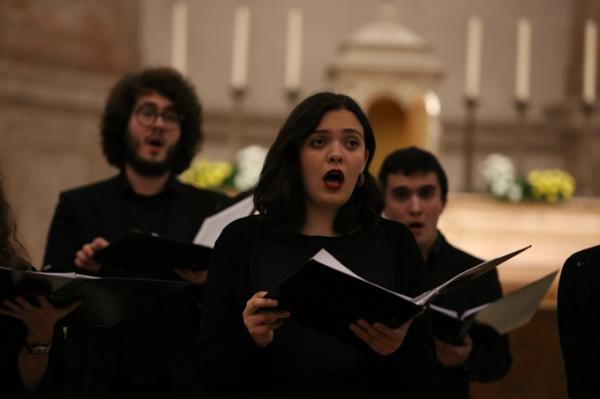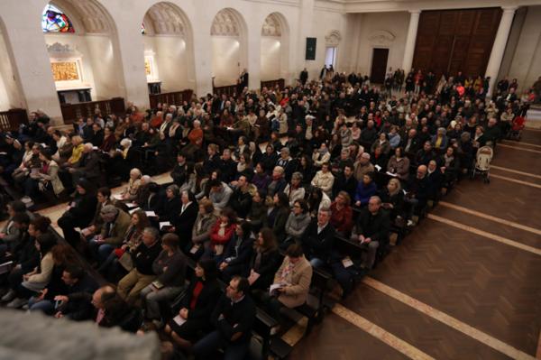 Misa, en portugués, en la Basílica de Nuestra Señora del Rosario de Fátima